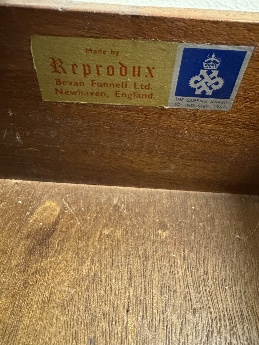 This great chest was made by the renowned Bevan Funnell furniture makers and is in excellent condition. The over sailing top sits above three banks of four graduated drawers, each drawer having a pair of brass drop handles. Recessed panelled sides and standing on four turned feet to the front.