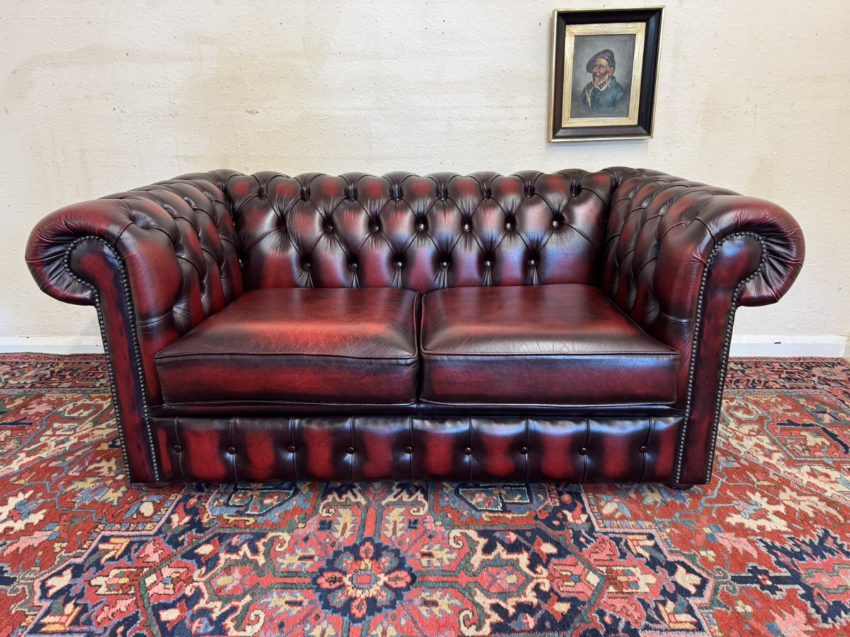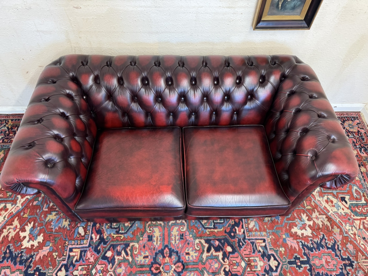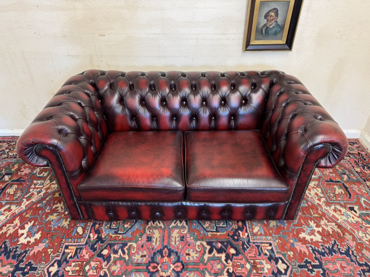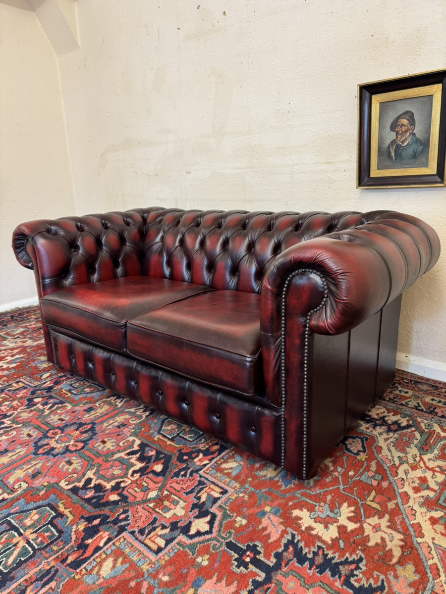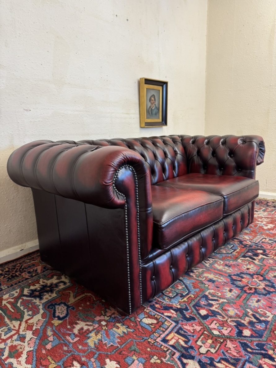 - FANTASTIC QUALITY OXBLOOD RED LEATHER TWO SEATER CHESTERFIELD SOFA/SETTEE
