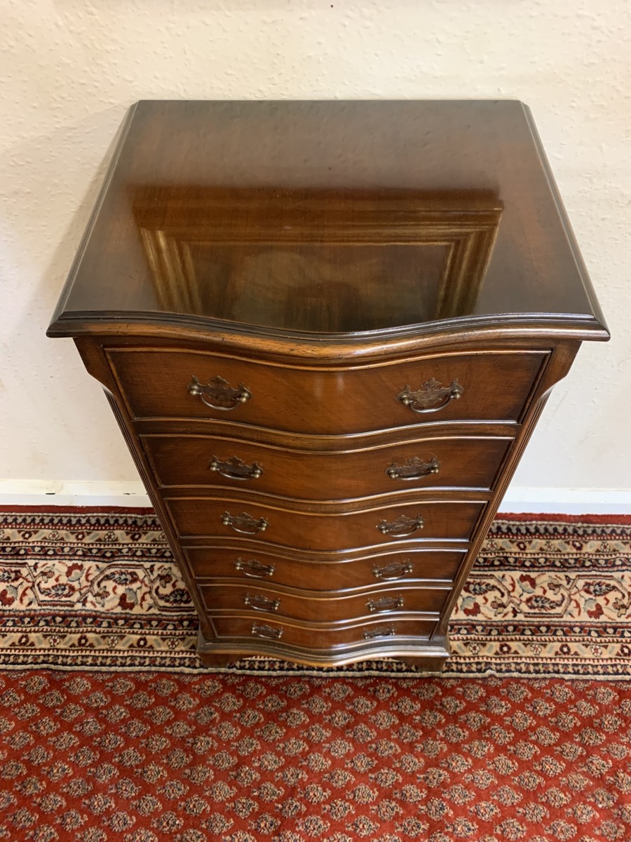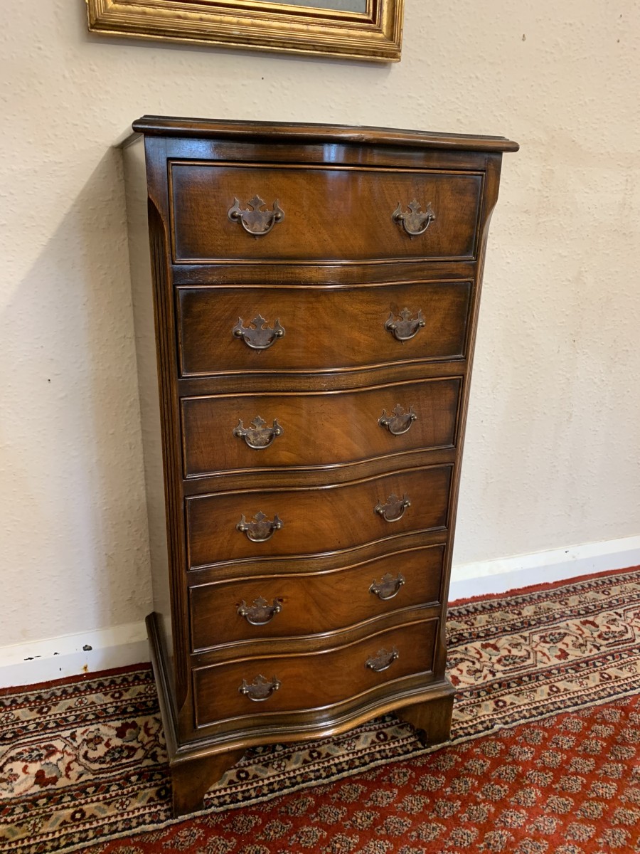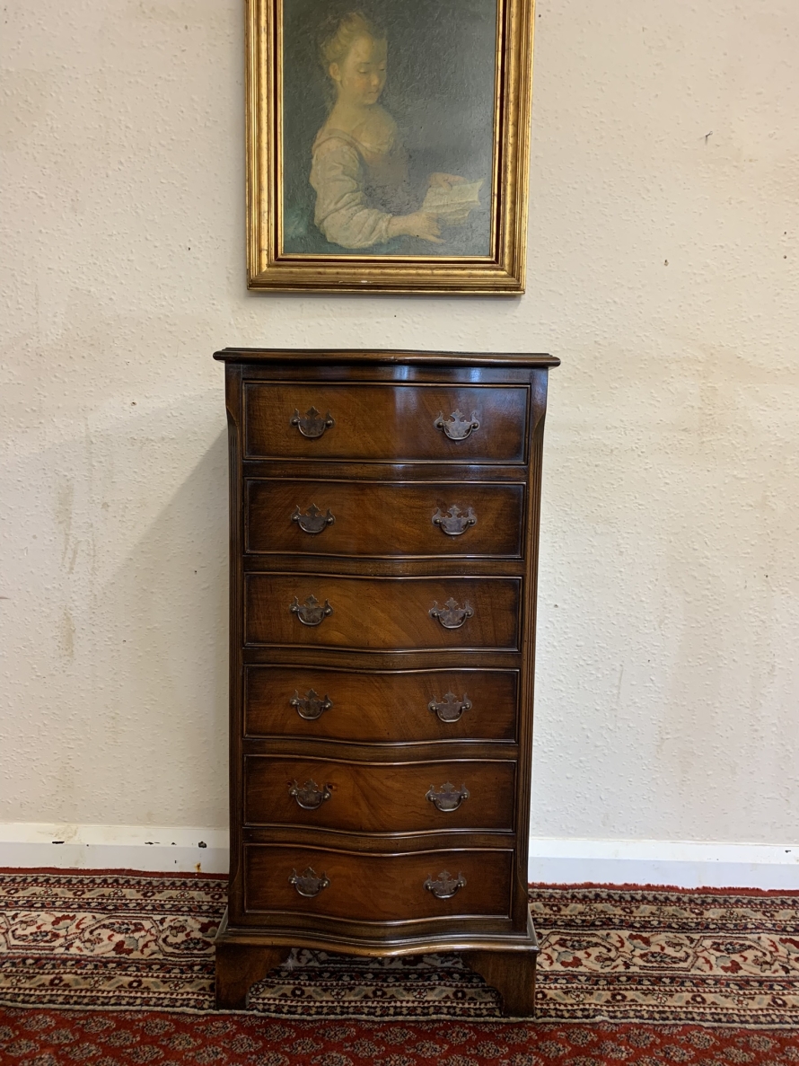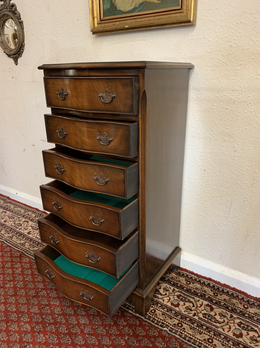 Fantastic Quality Shaped Mahogany Slim Chest Of Six Drawers