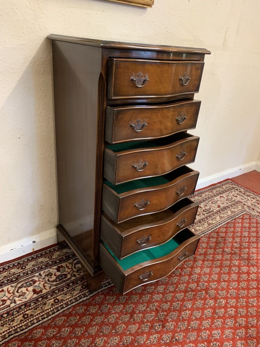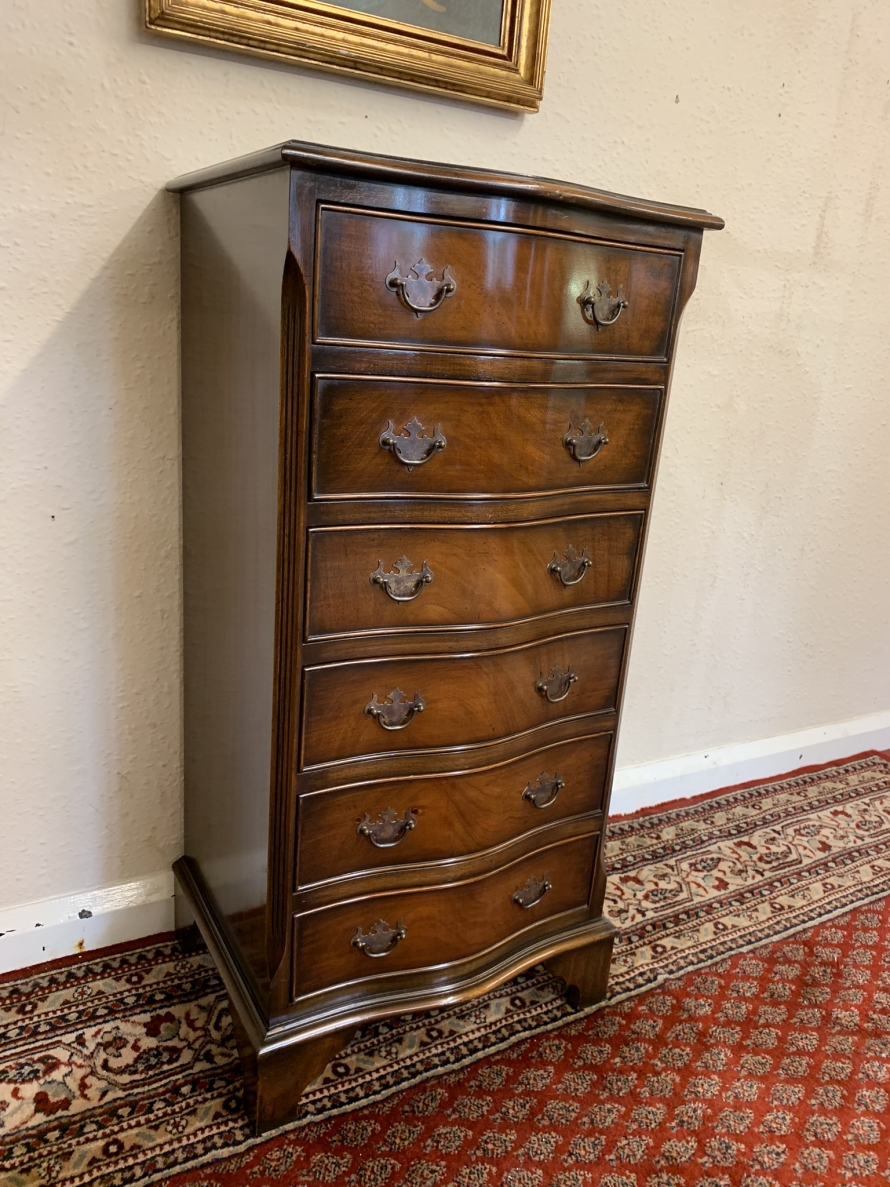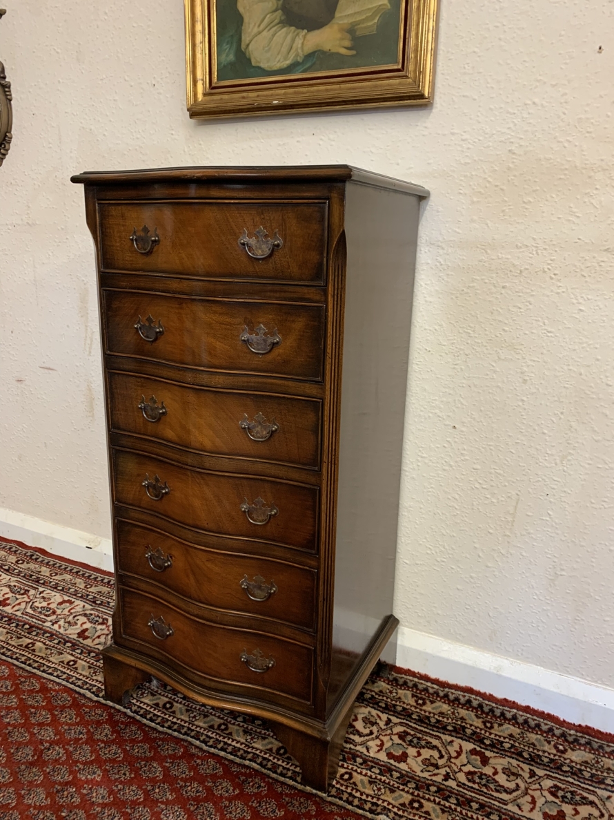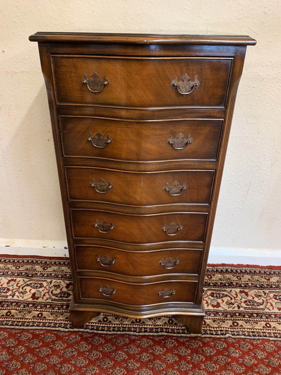Fantastic Quality Shaped Mahogany Slim Chest Of Six Drawers