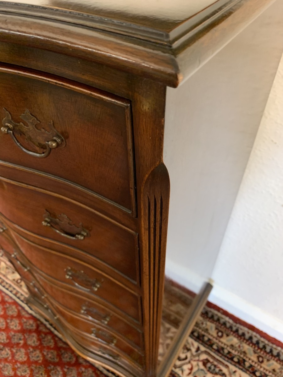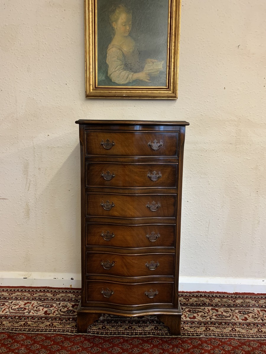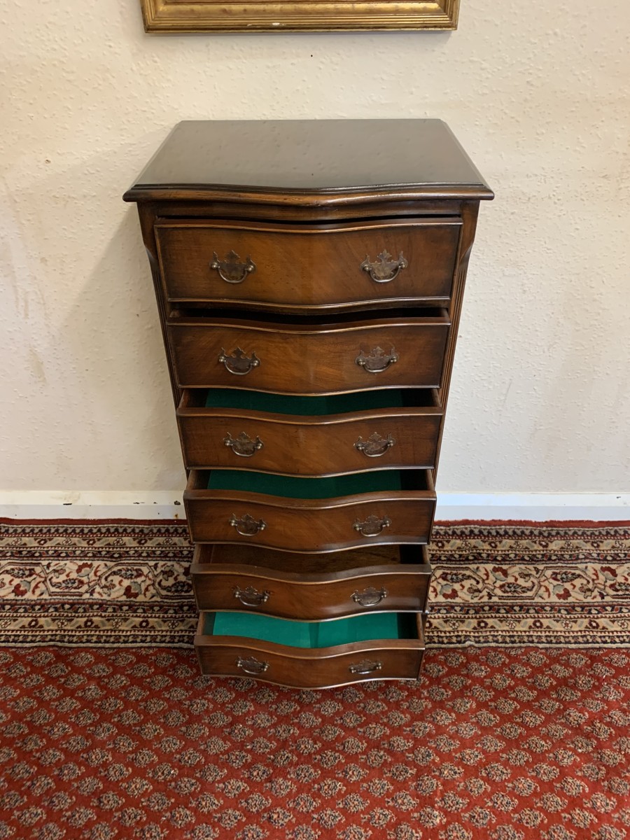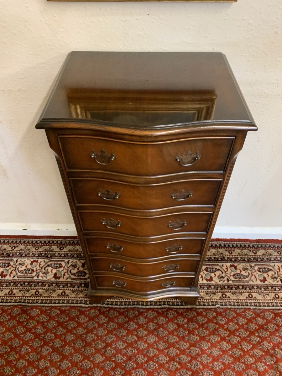 Fantastic Quality Shaped Mahogany Slim Chest Of Six Drawers