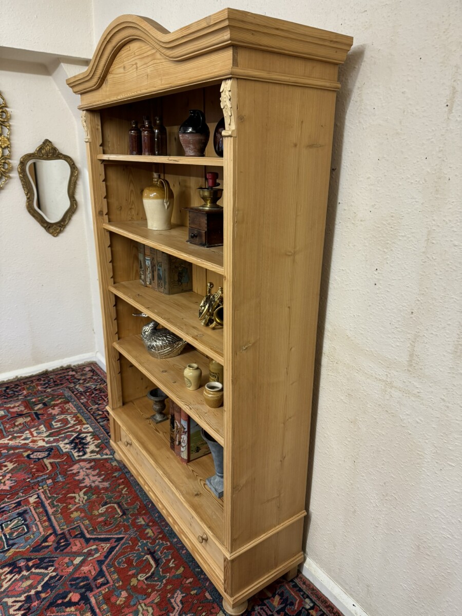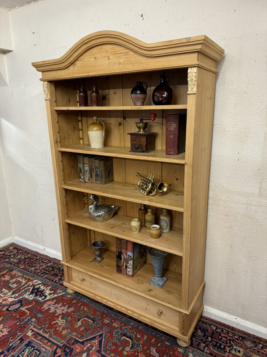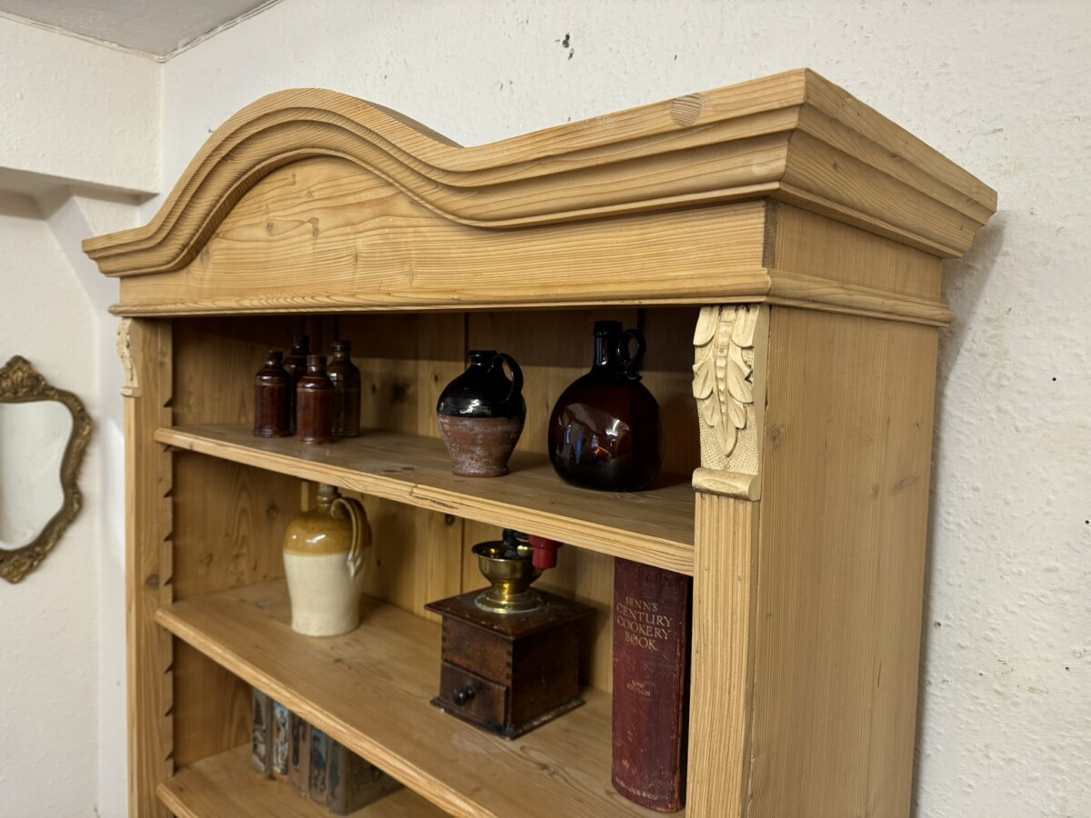 FANTASTIC QUALITY TALL ANTIQUE PINE OPEN BOOKCASE