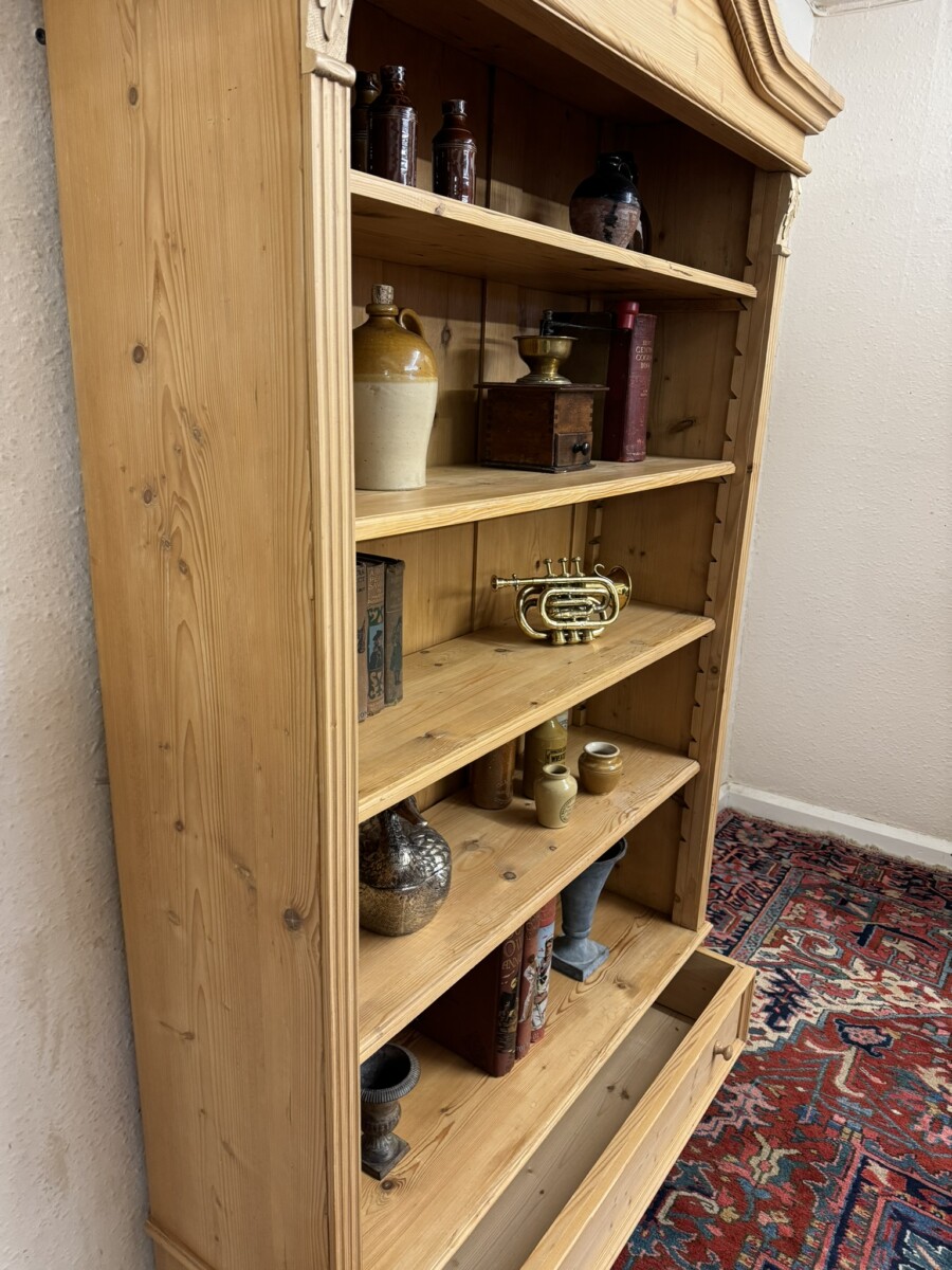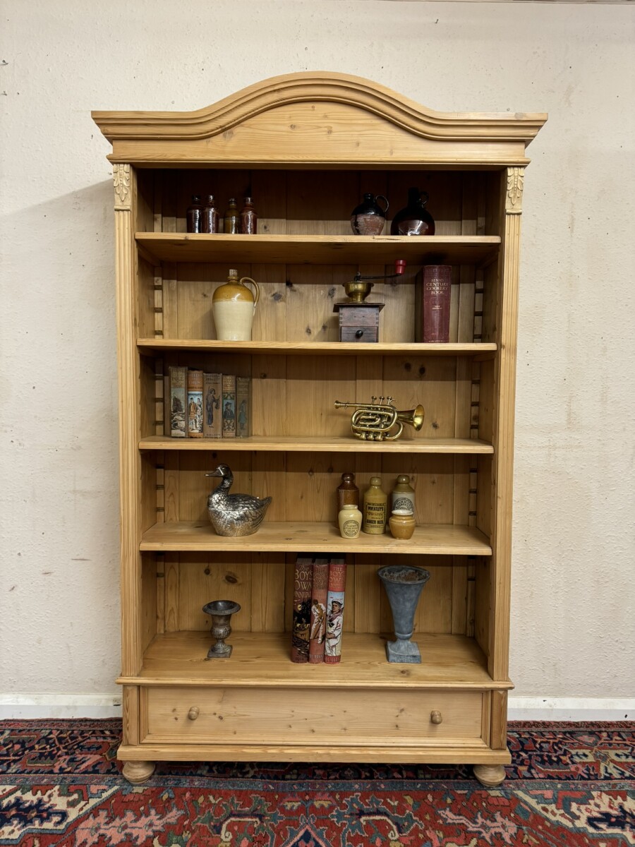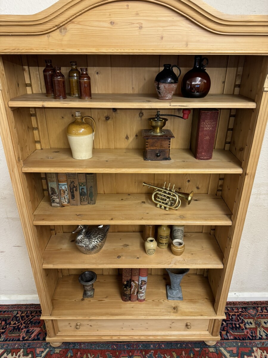 FANTASTIC QUALITY TALL ANTIQUE PINE OPEN BOOKCASE