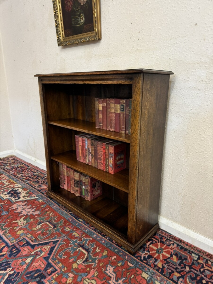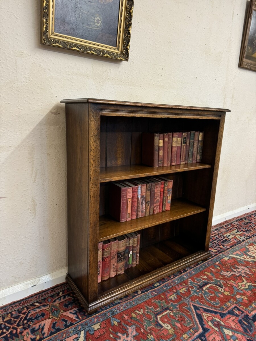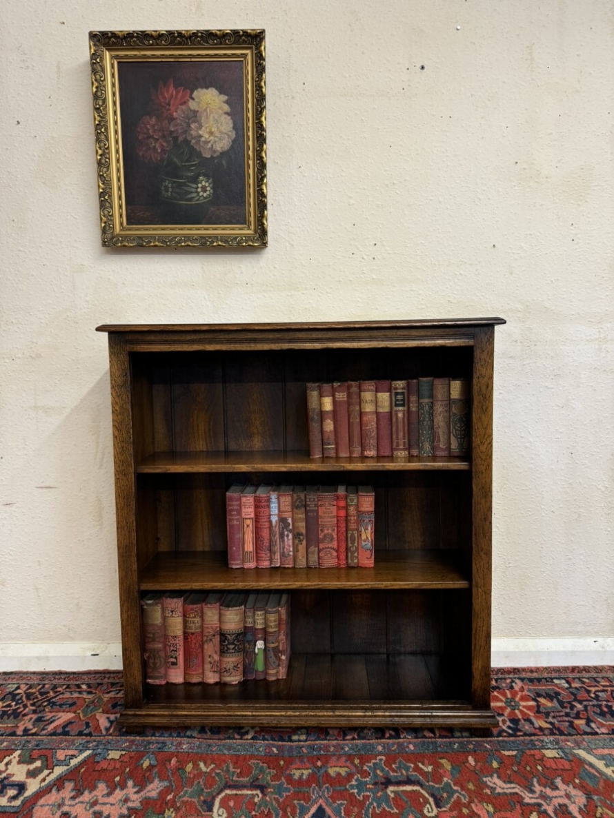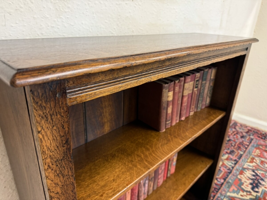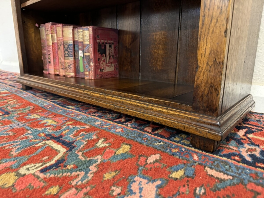 This super quality bookcase is made by the renowned Titchmarsh and Goodwin furniture makers. The oversailing top sits above two adjustable and removable shelves, with a boarded base and back and standing on traditional block feet.