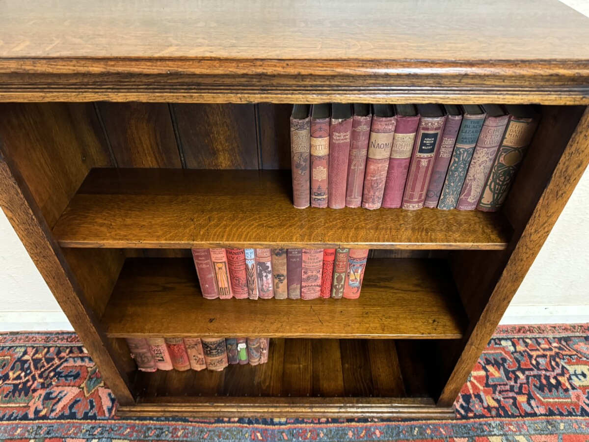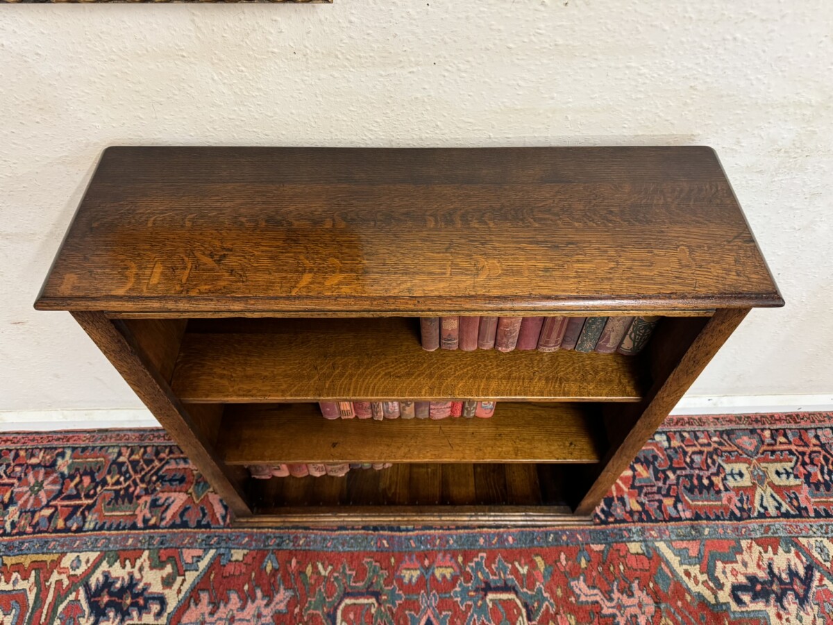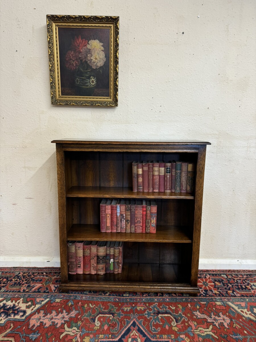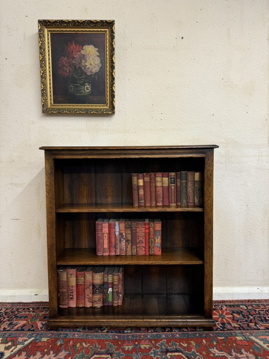 This super quality bookcase is made by the renowned Titchmarsh and Goodwin furniture makers. The oversailing top sits above two adjustable and removable shelves, with a boarded base and back and standing on traditional block feet.