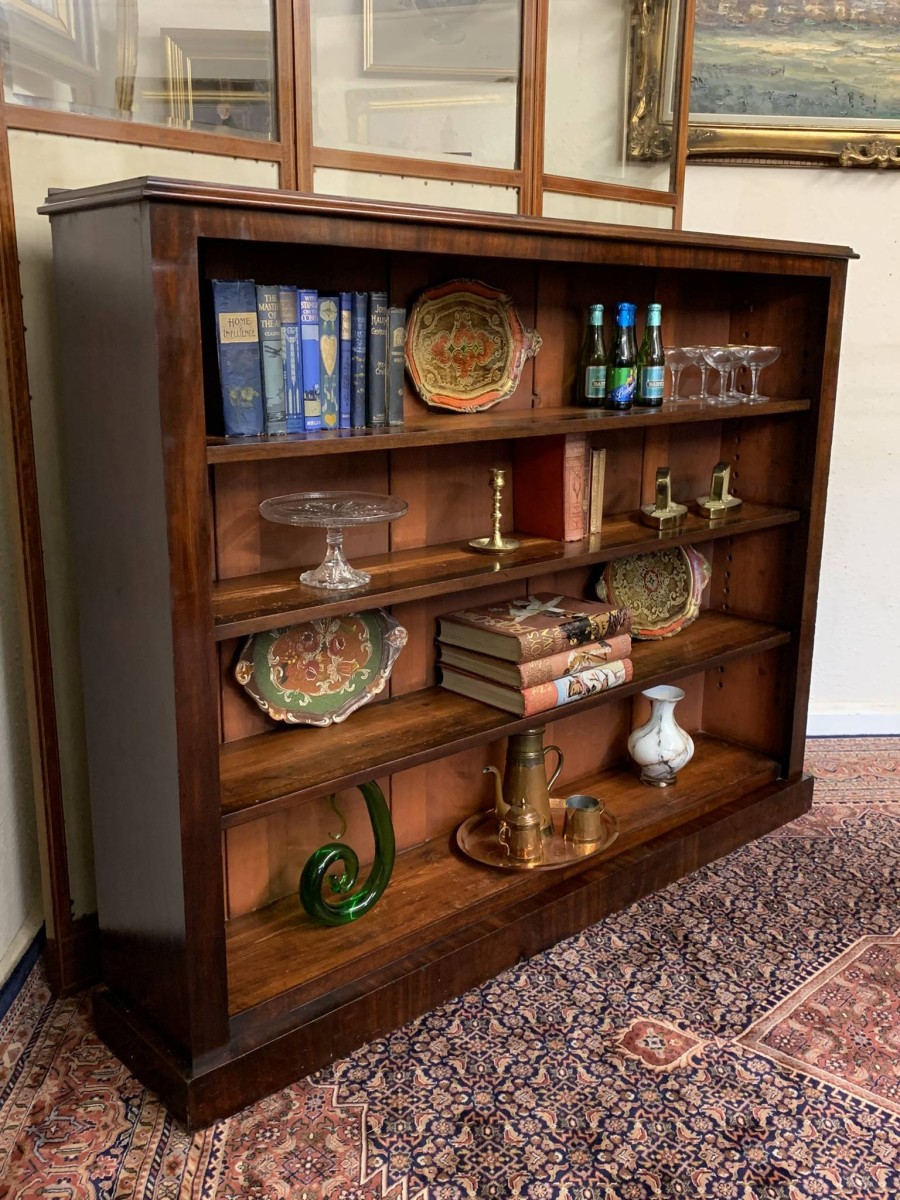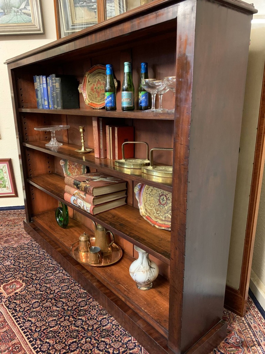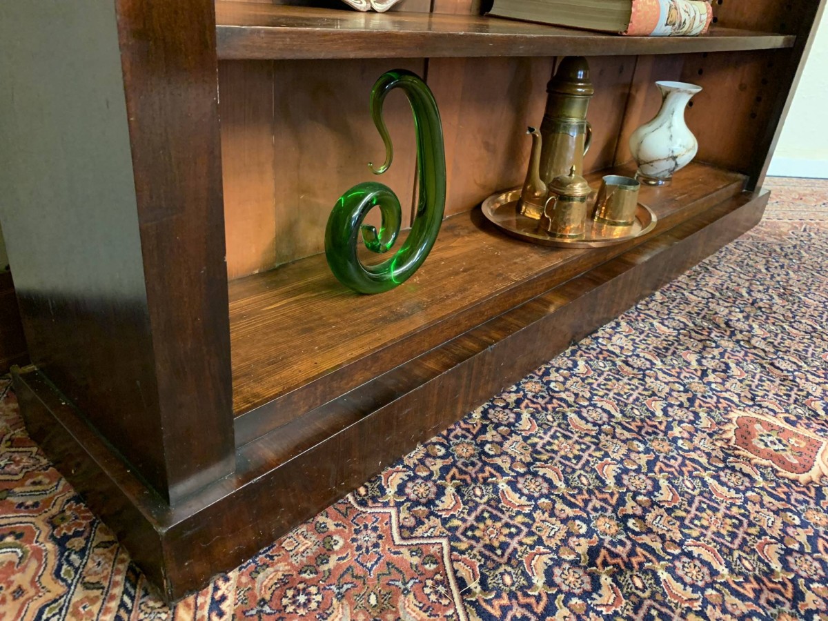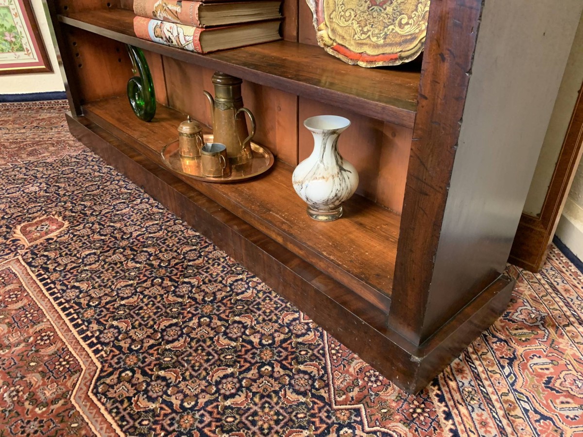 The bookcase dates circa 1880. Made in beautiful mahogany, having three adjustable and removable shelves and standing on a plinth base.
