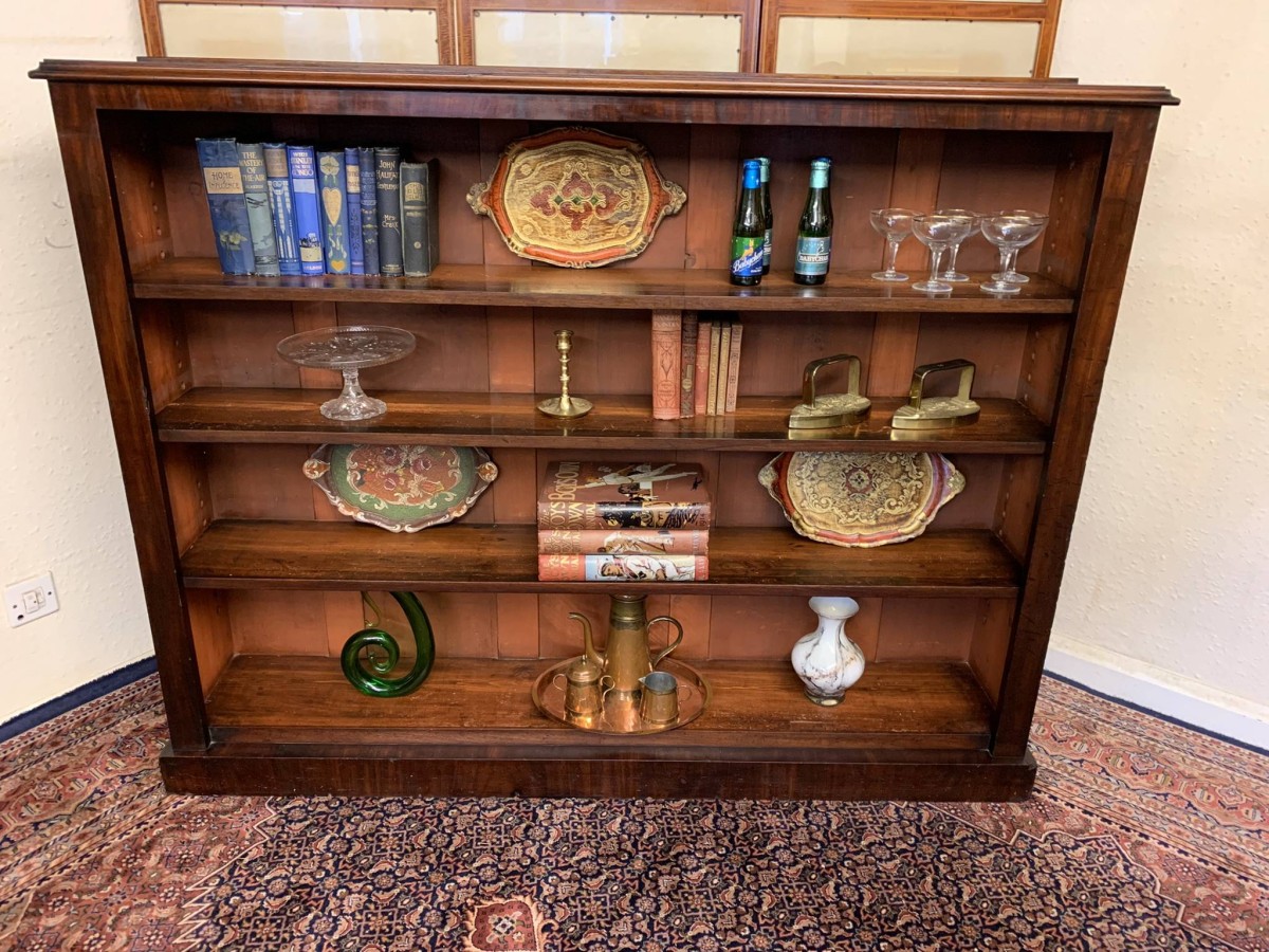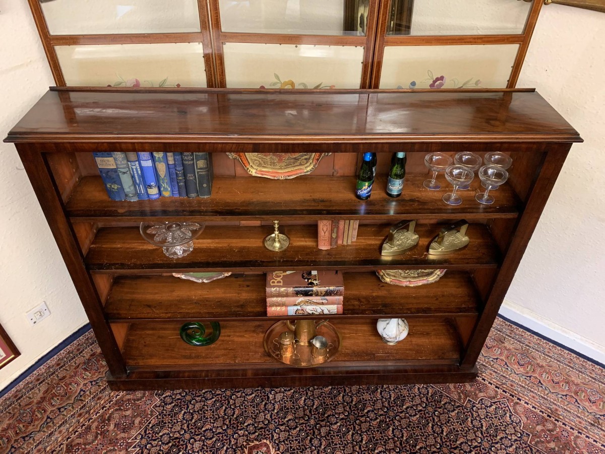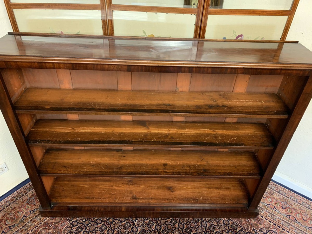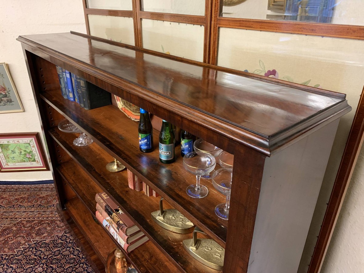 The bookcase dates circa 1880. Made in beautiful mahogany, having three adjustable and removable shelves and standing on a plinth base.