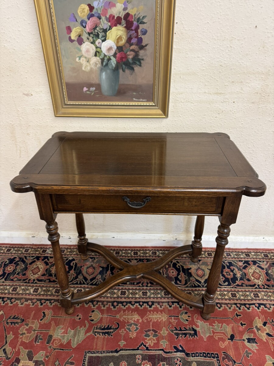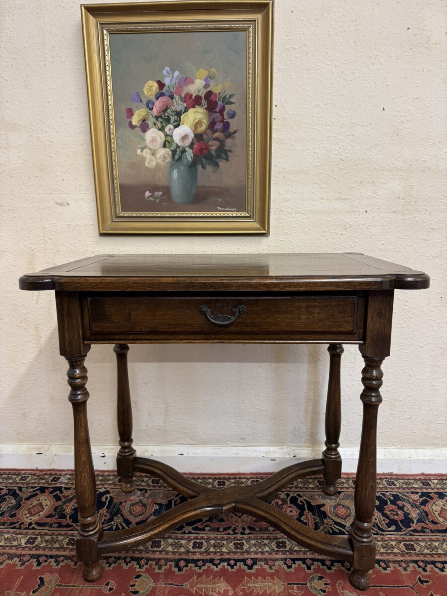 - FANTASTIC SHAPED OAK SINGLE DRAWER ACCENT TABLE/HALL TABLE