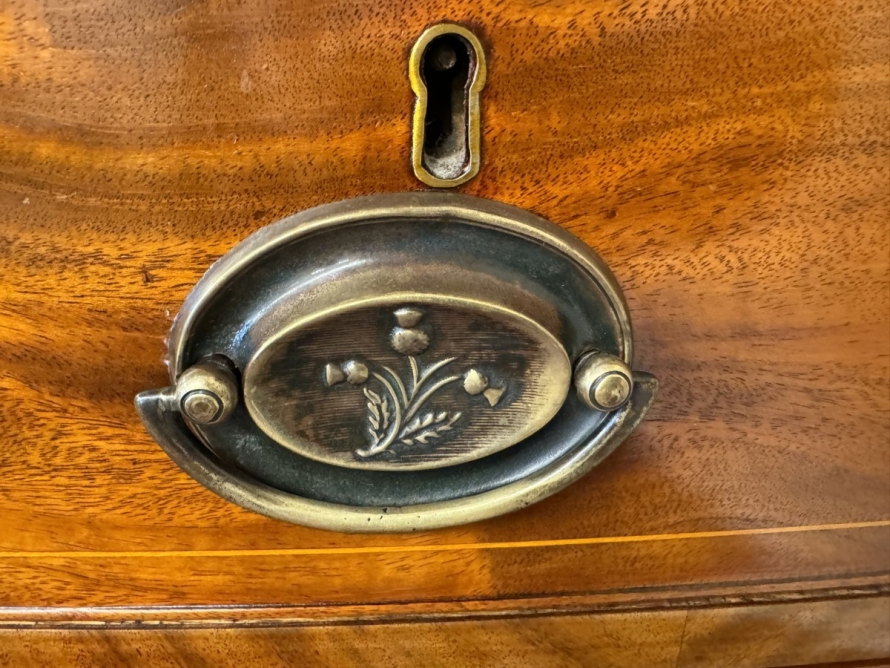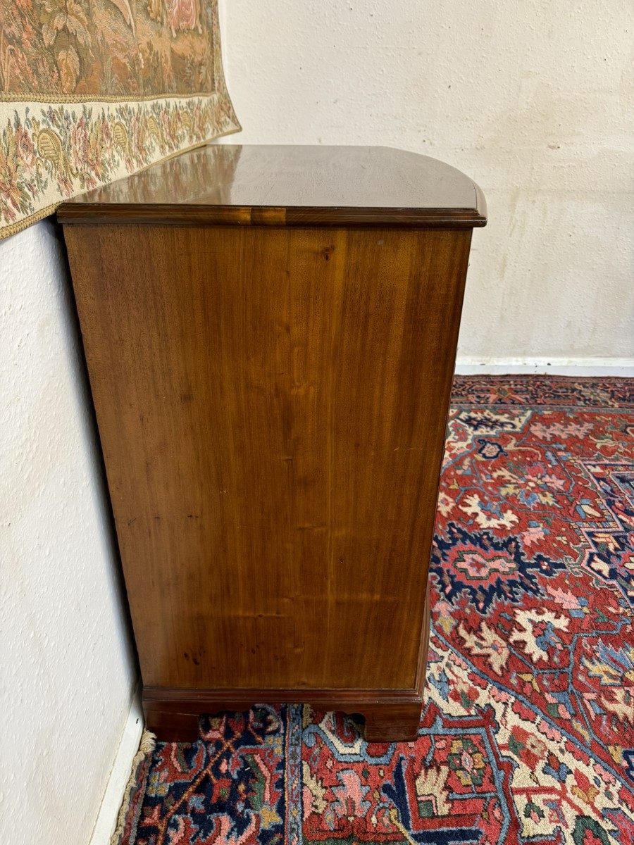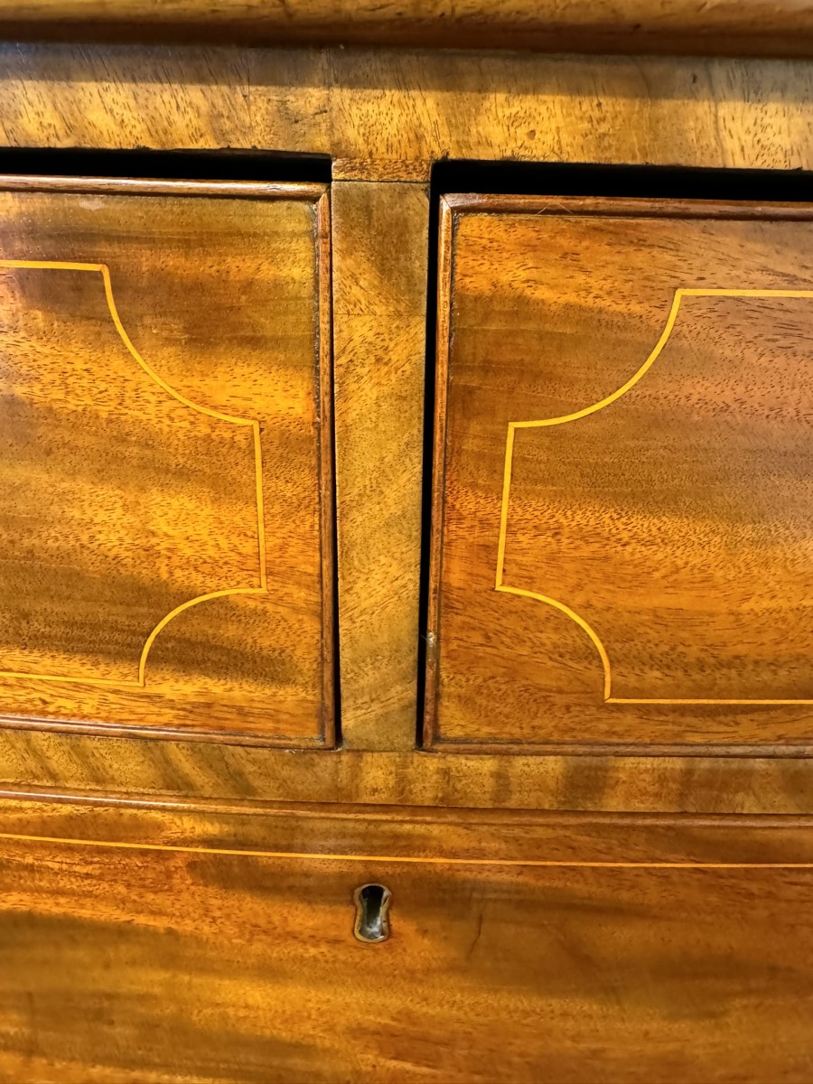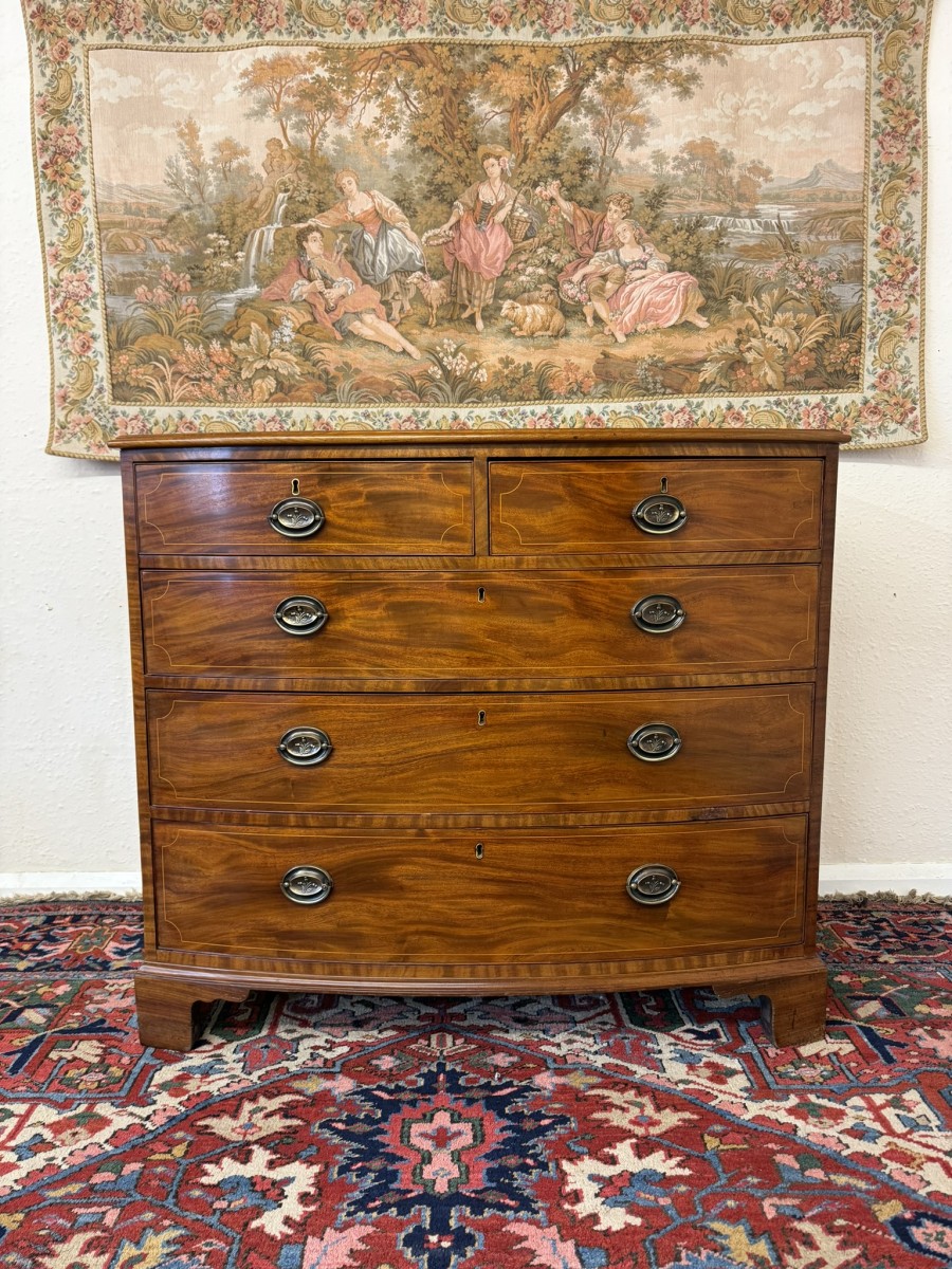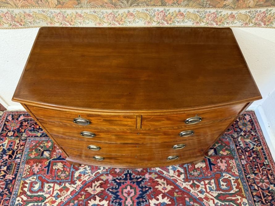 - GEORGIAN ANTIQUE INLAID MAHOGANY BOW FRONT CHEST OF DRAWERS CIRCA 1830