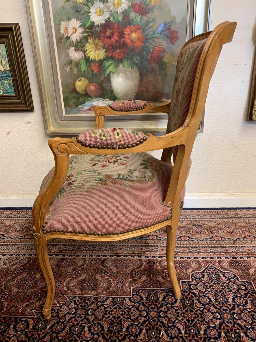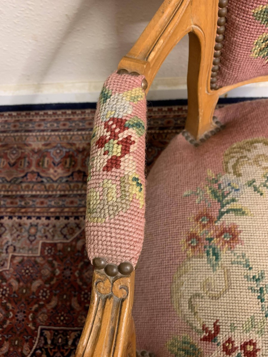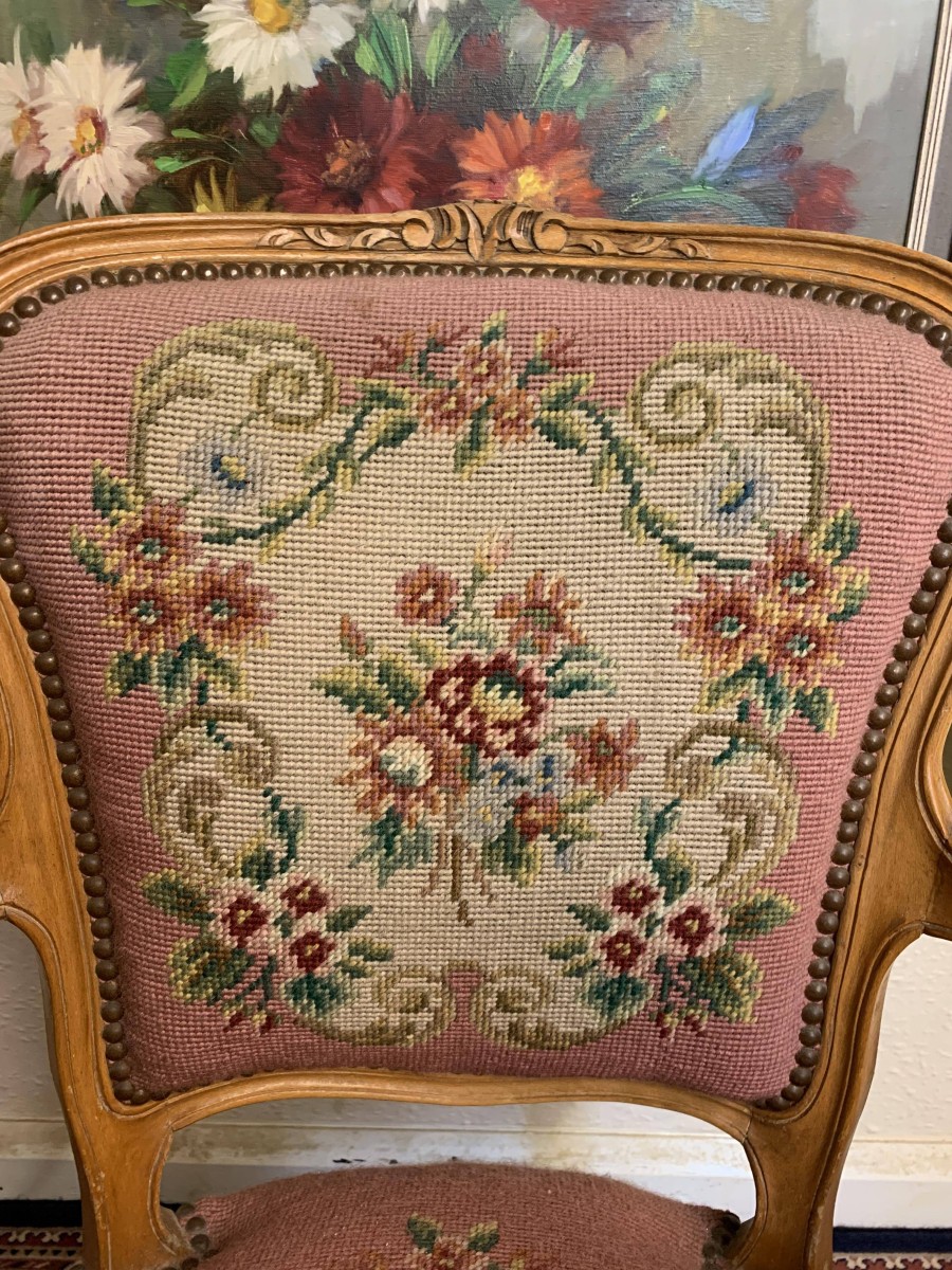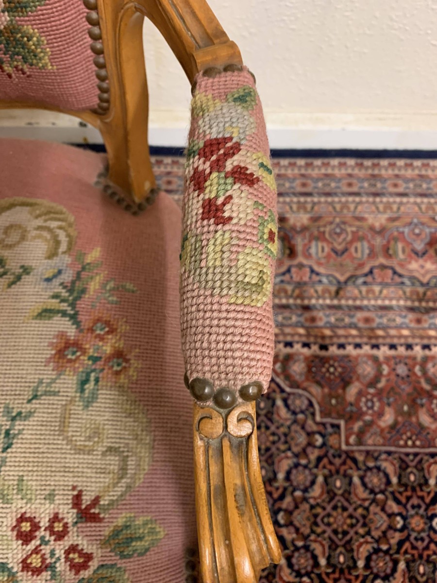 - Gorgeous Antique French Needlepoint Salon Chair – Now Sold