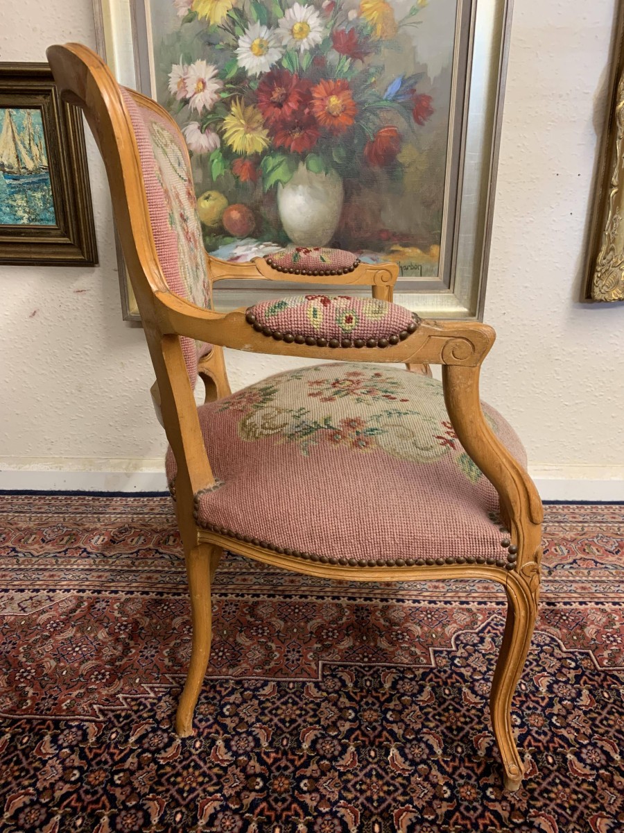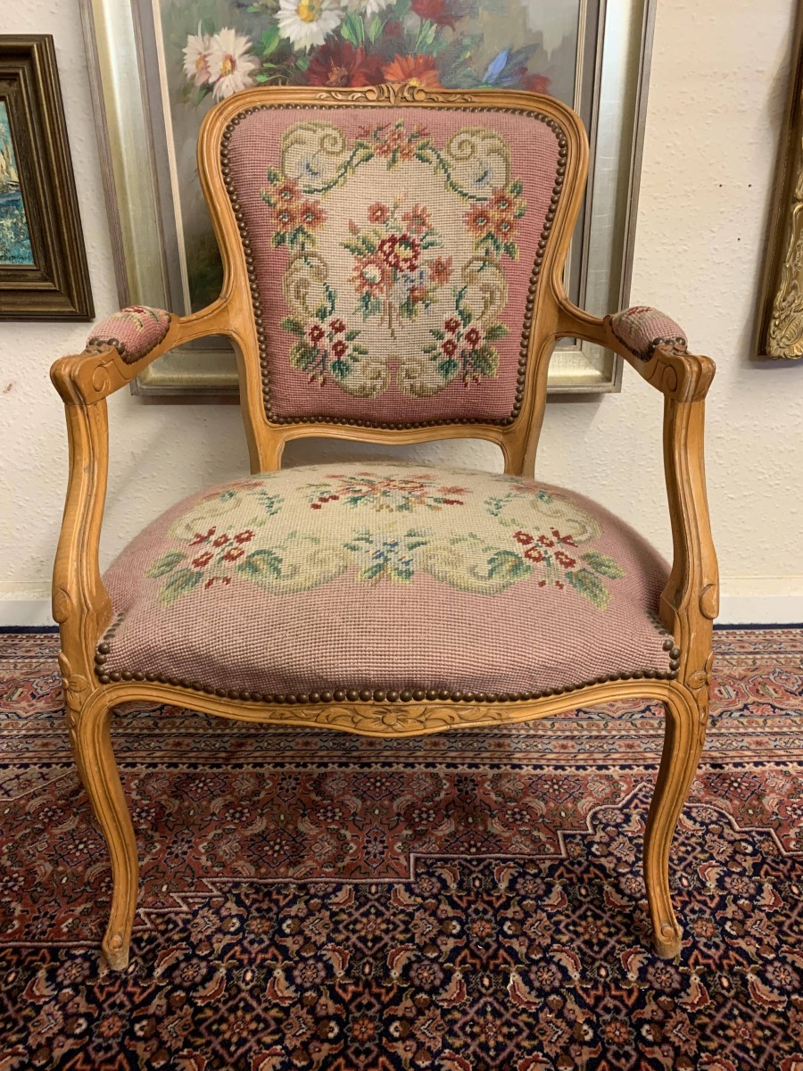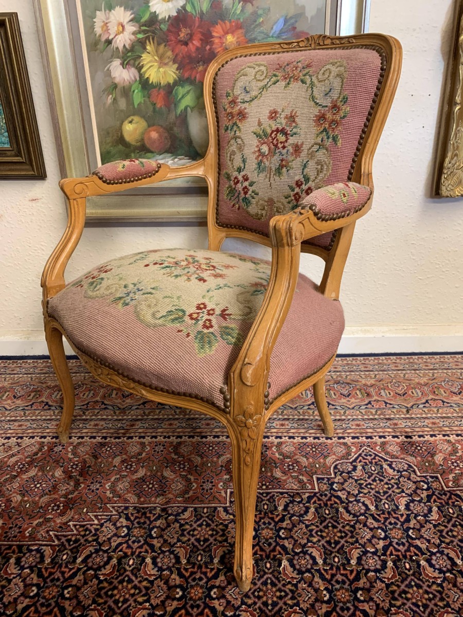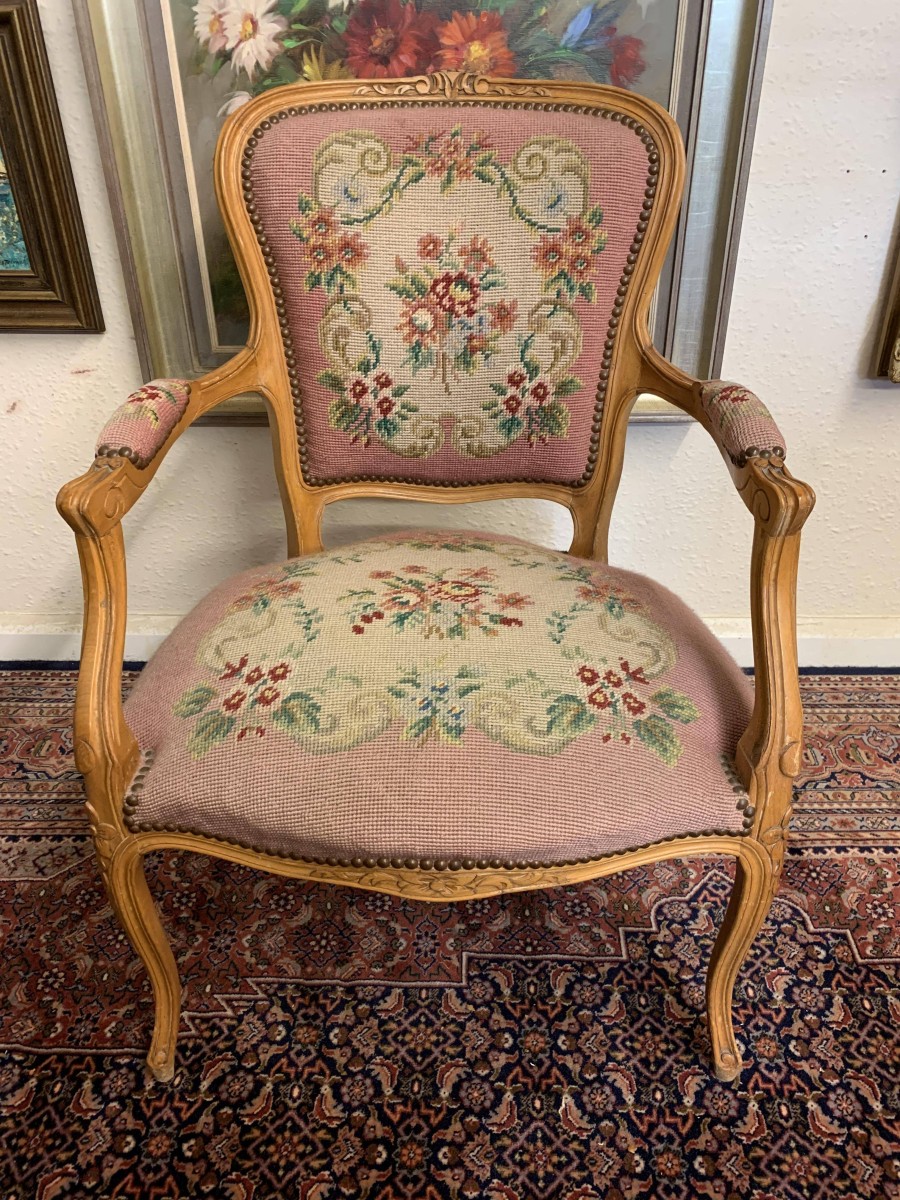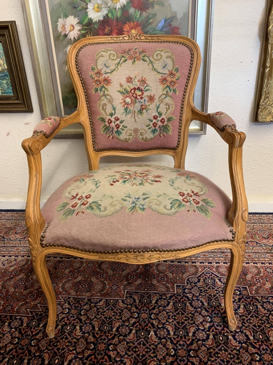 - Gorgeous Antique French Needlepoint Salon Chair – Now Sold