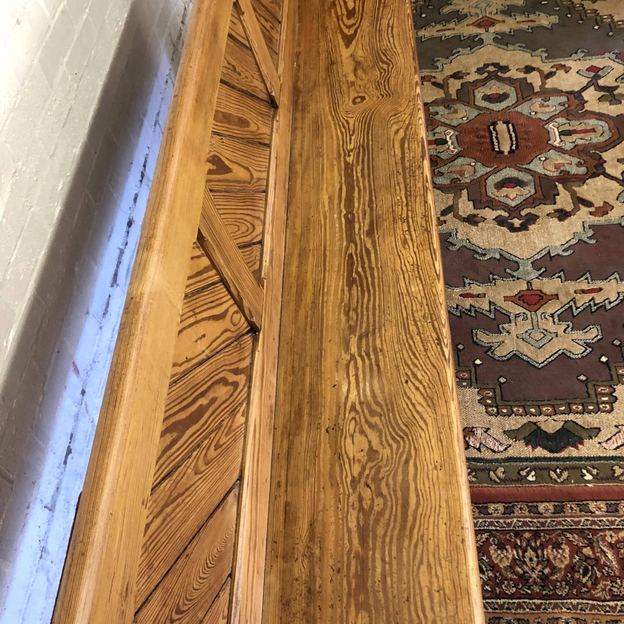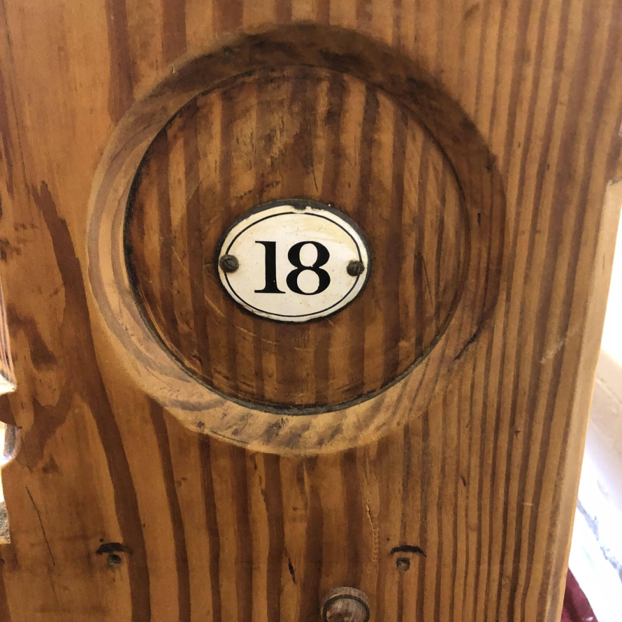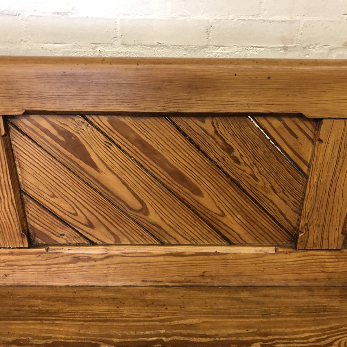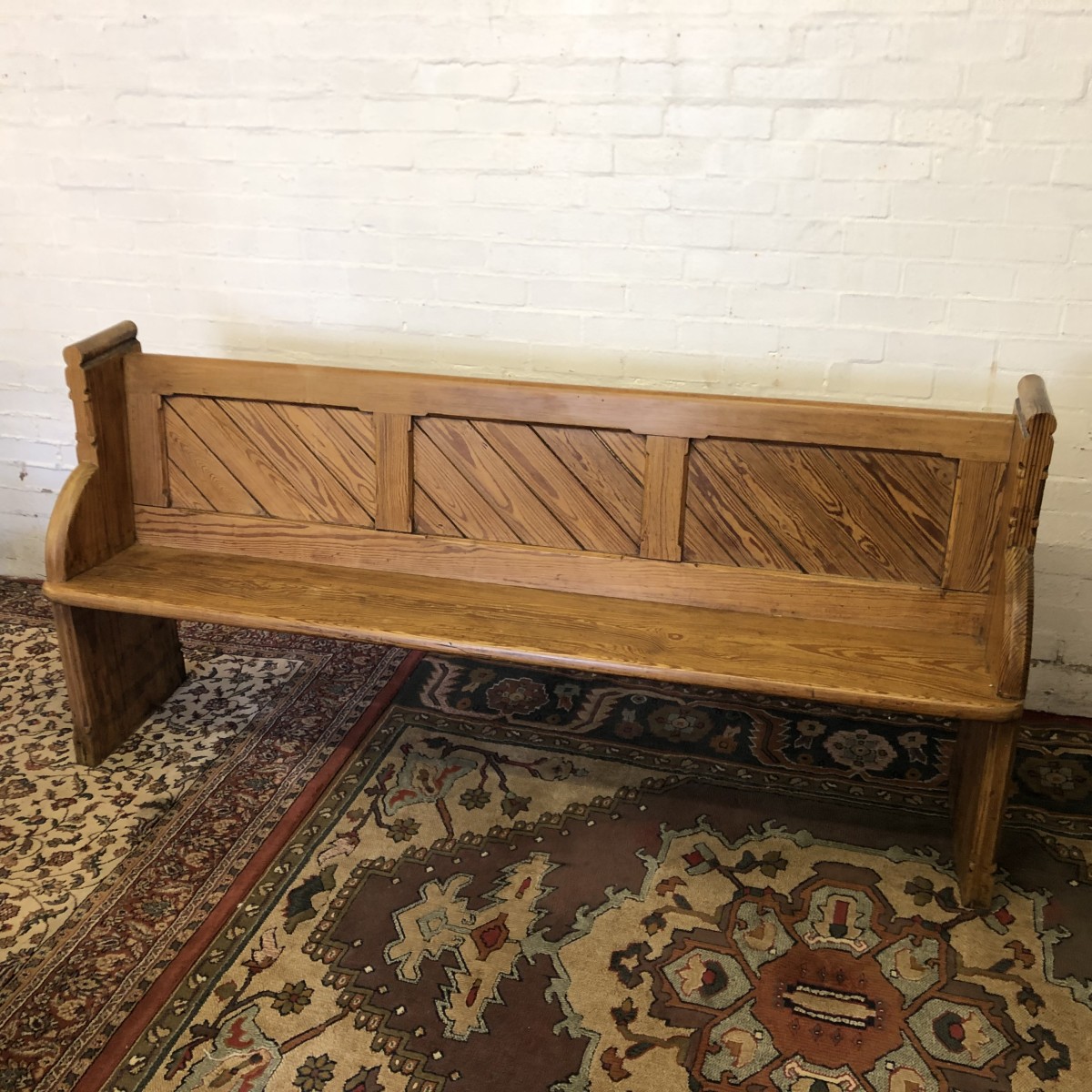 This gorgeous Victorian pew is made entirely from vibrant pitch pine. Having shaped ends, original number 18 plaque, recessed panelled back and with a shelf to the back. Offering good seating space.