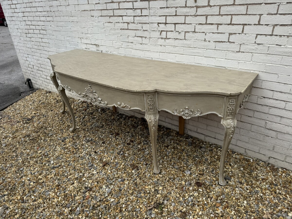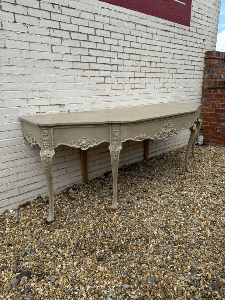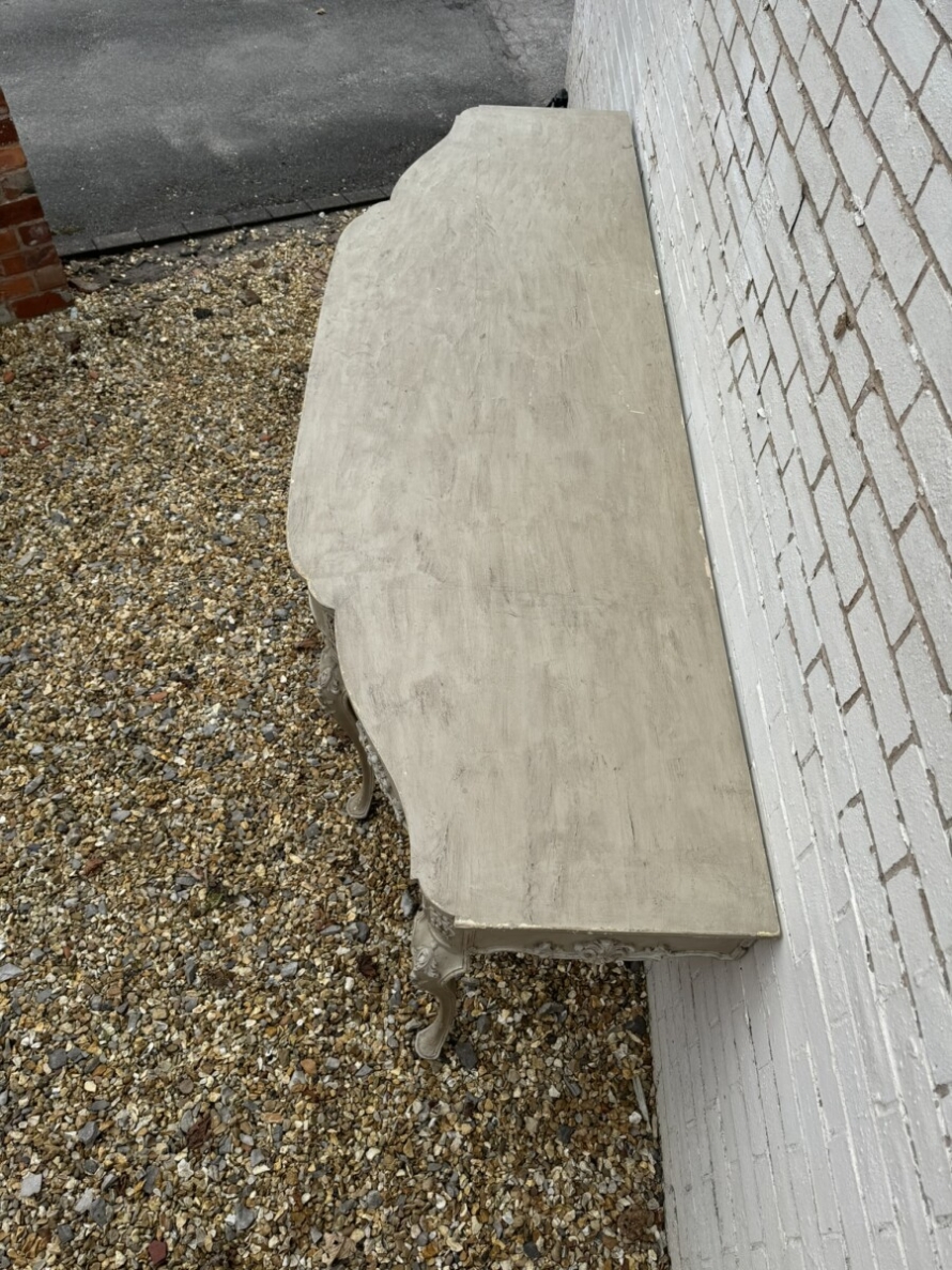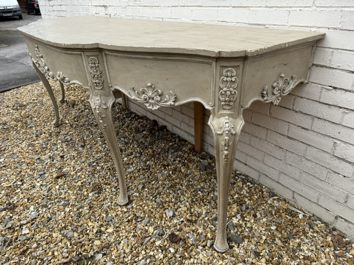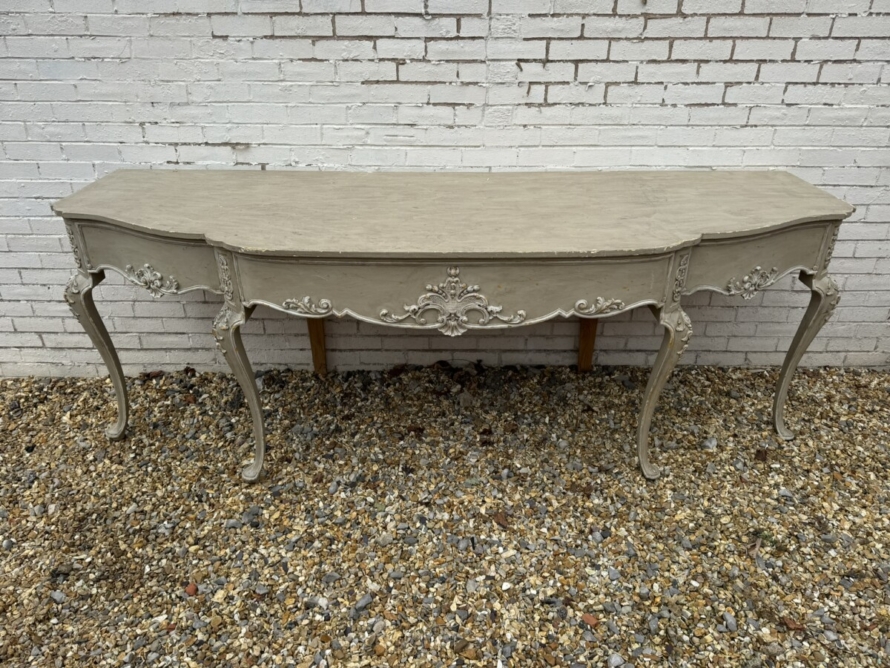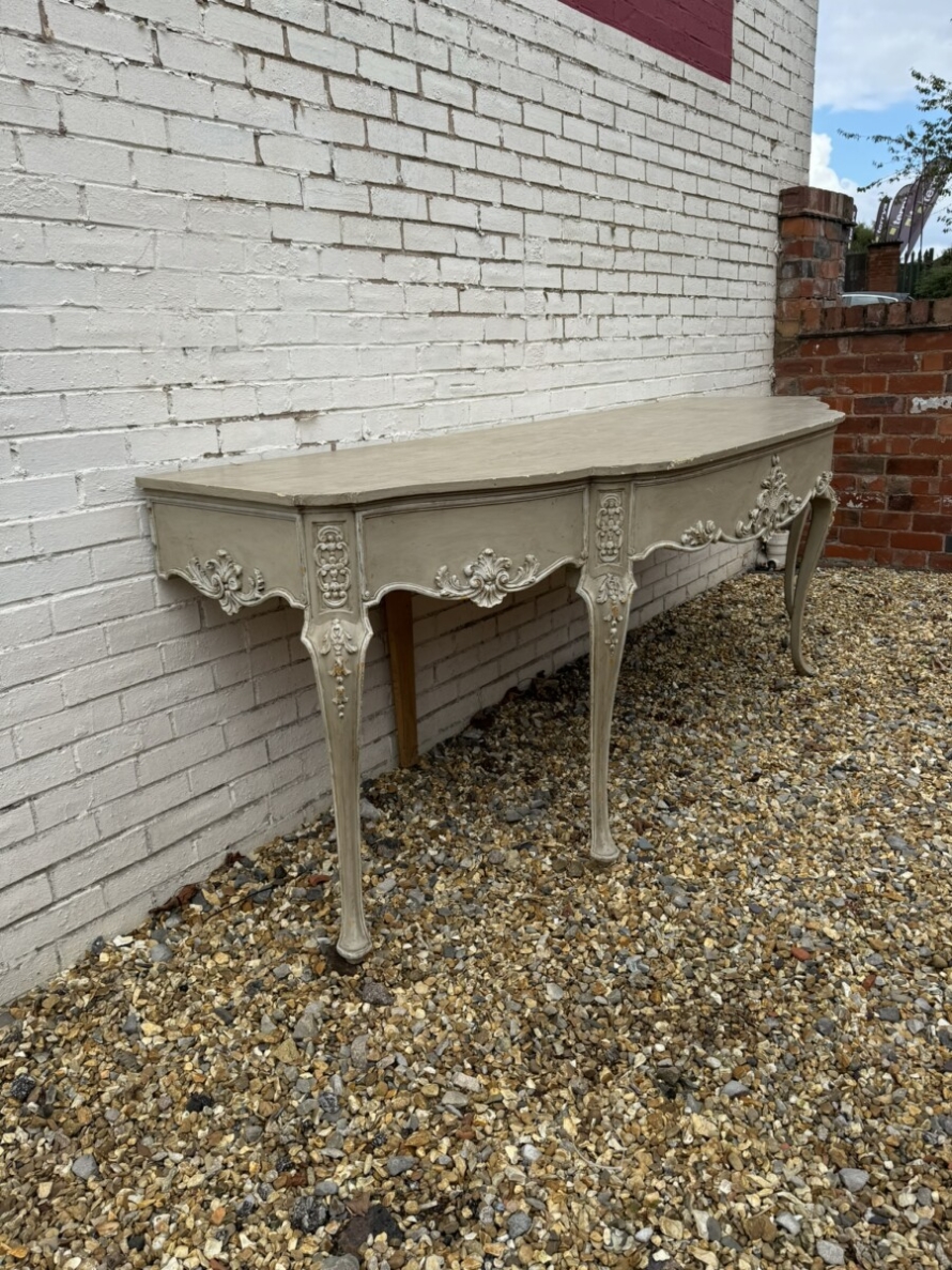 This grand console has a shaped oversailing top, fabulous carvings to the front and sides and standing on four elegant carved cabriole shaped legs.
