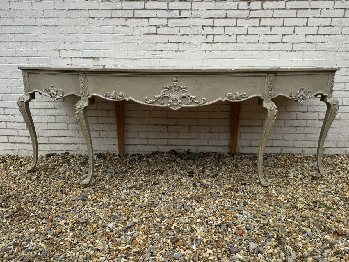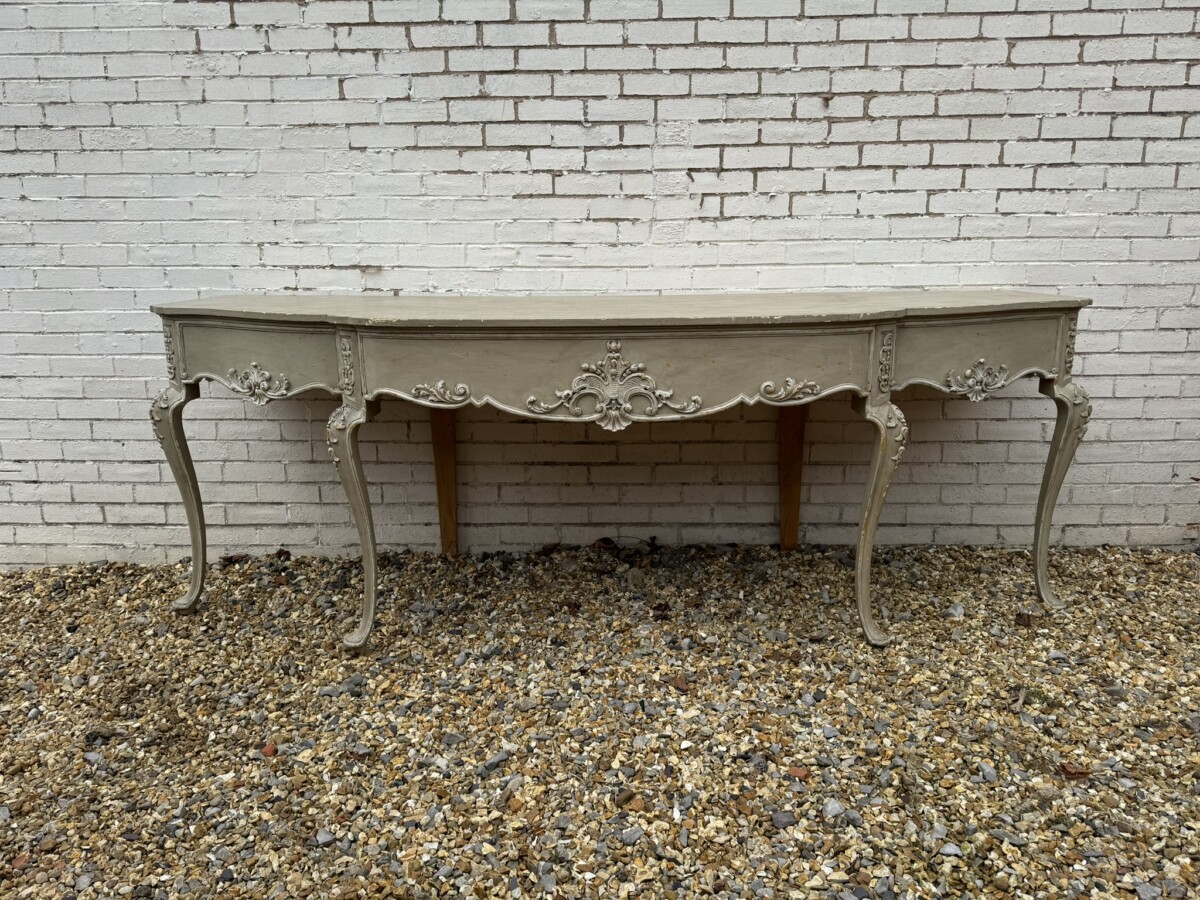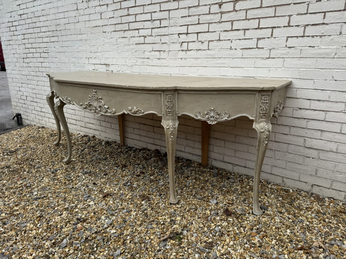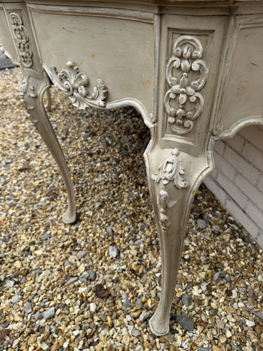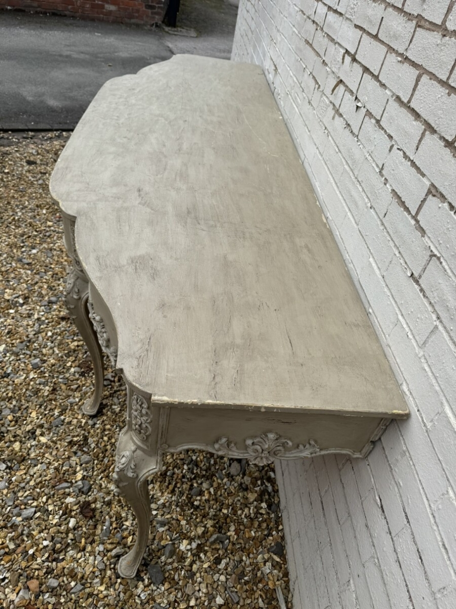 This grand console has a shaped oversailing top, fabulous carvings to the front and sides and standing on four elegant carved cabriole shaped legs.