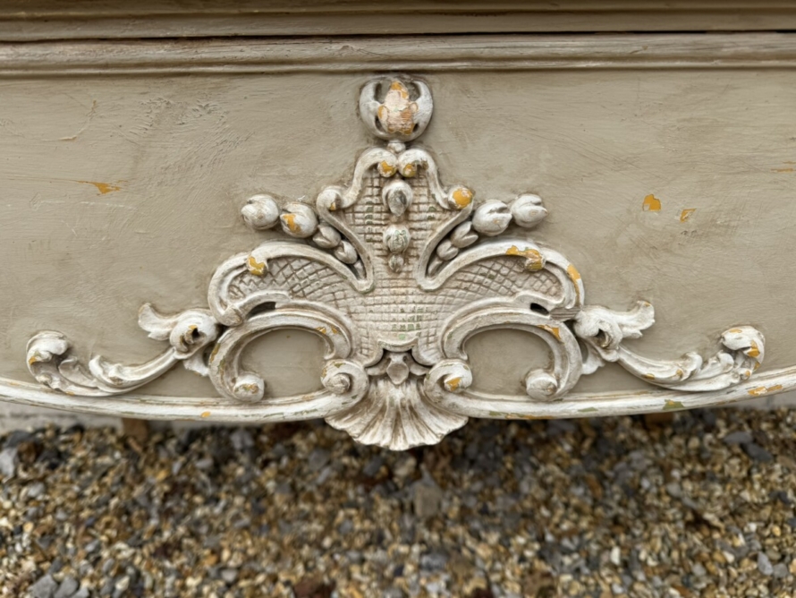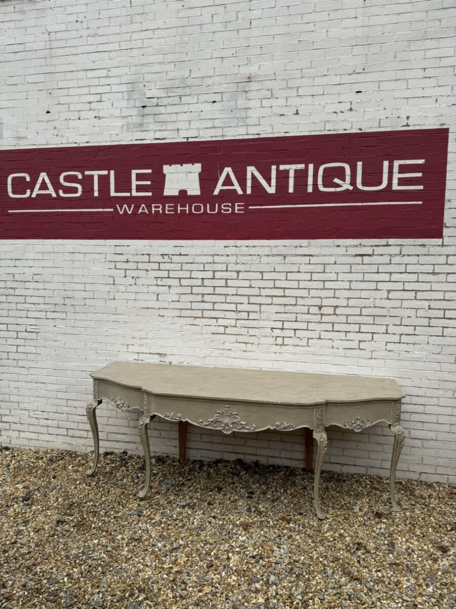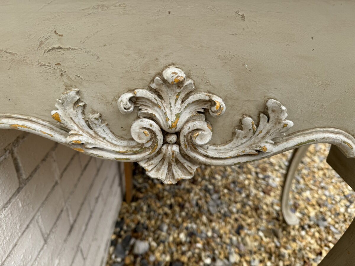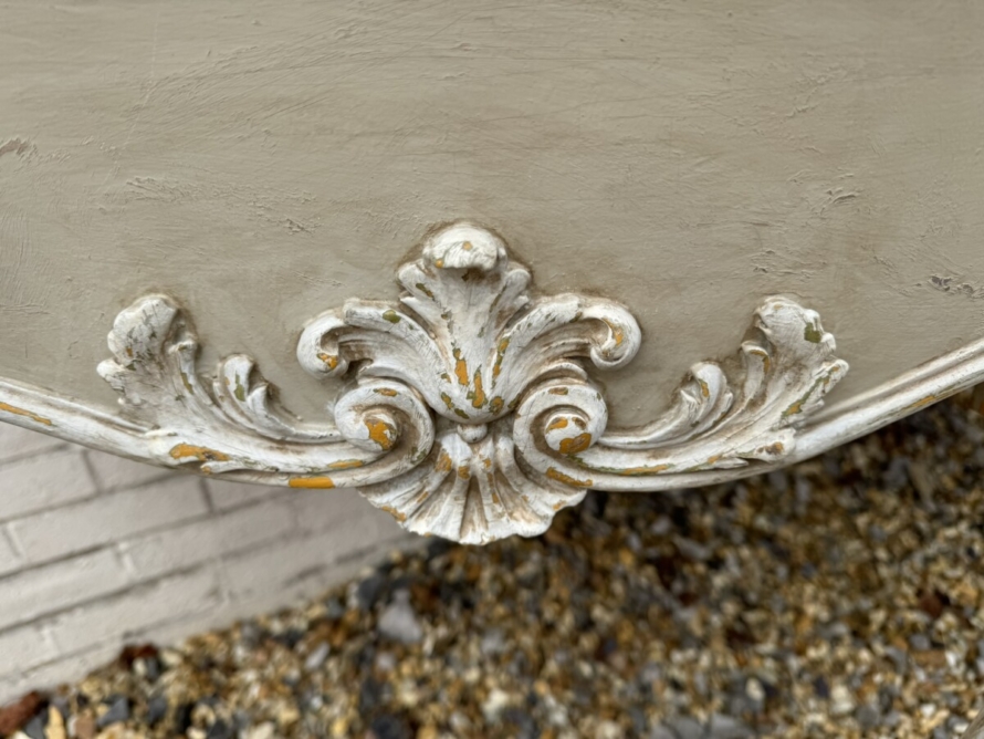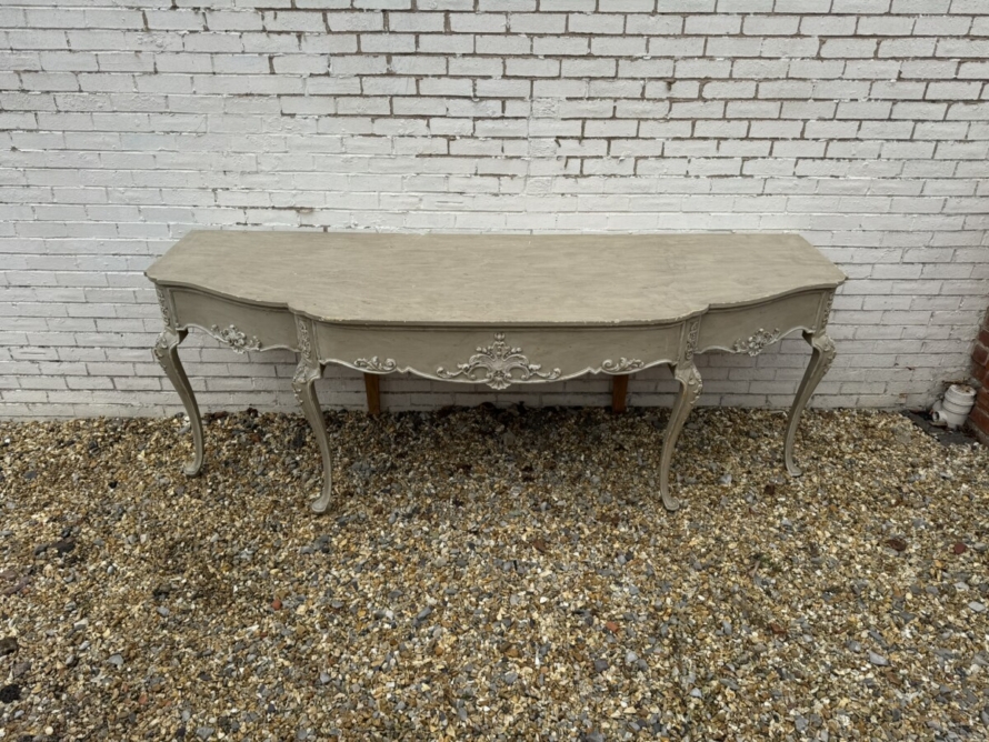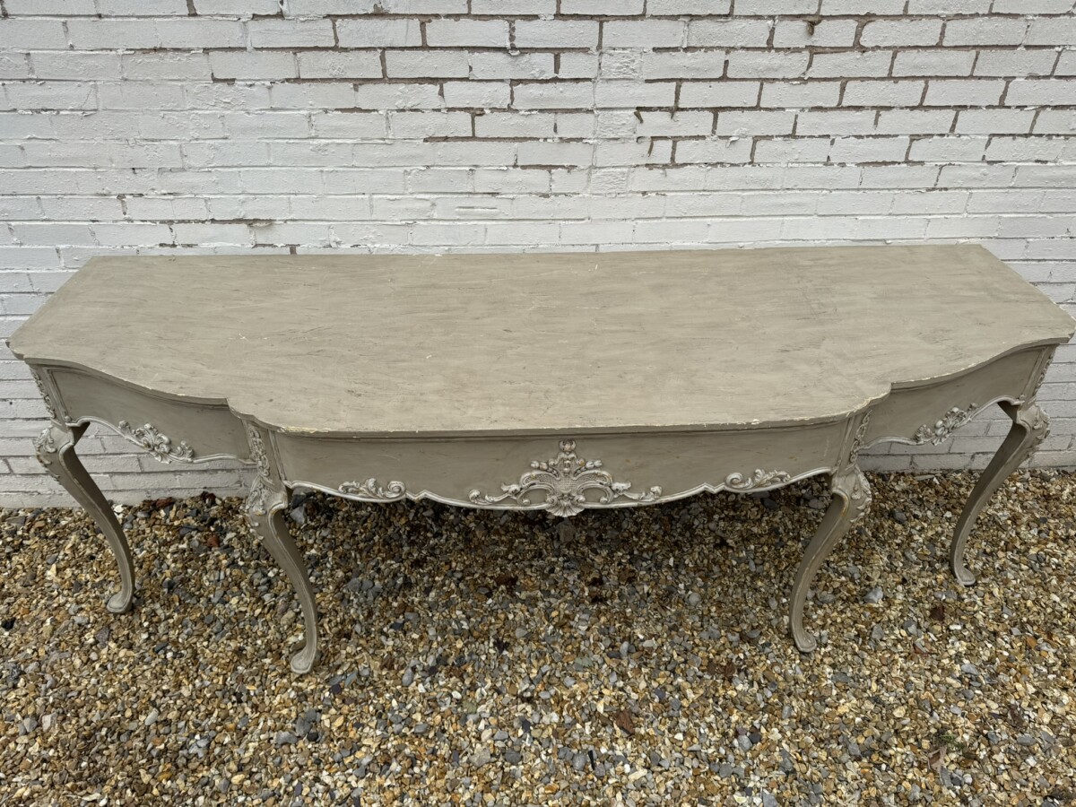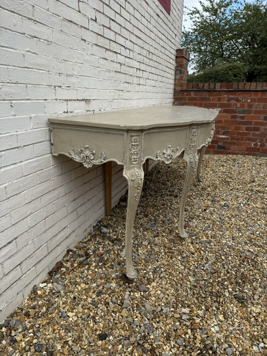 This grand console has a shaped oversailing top, fabulous carvings to the front and sides and standing on four elegant carved cabriole shaped legs.
