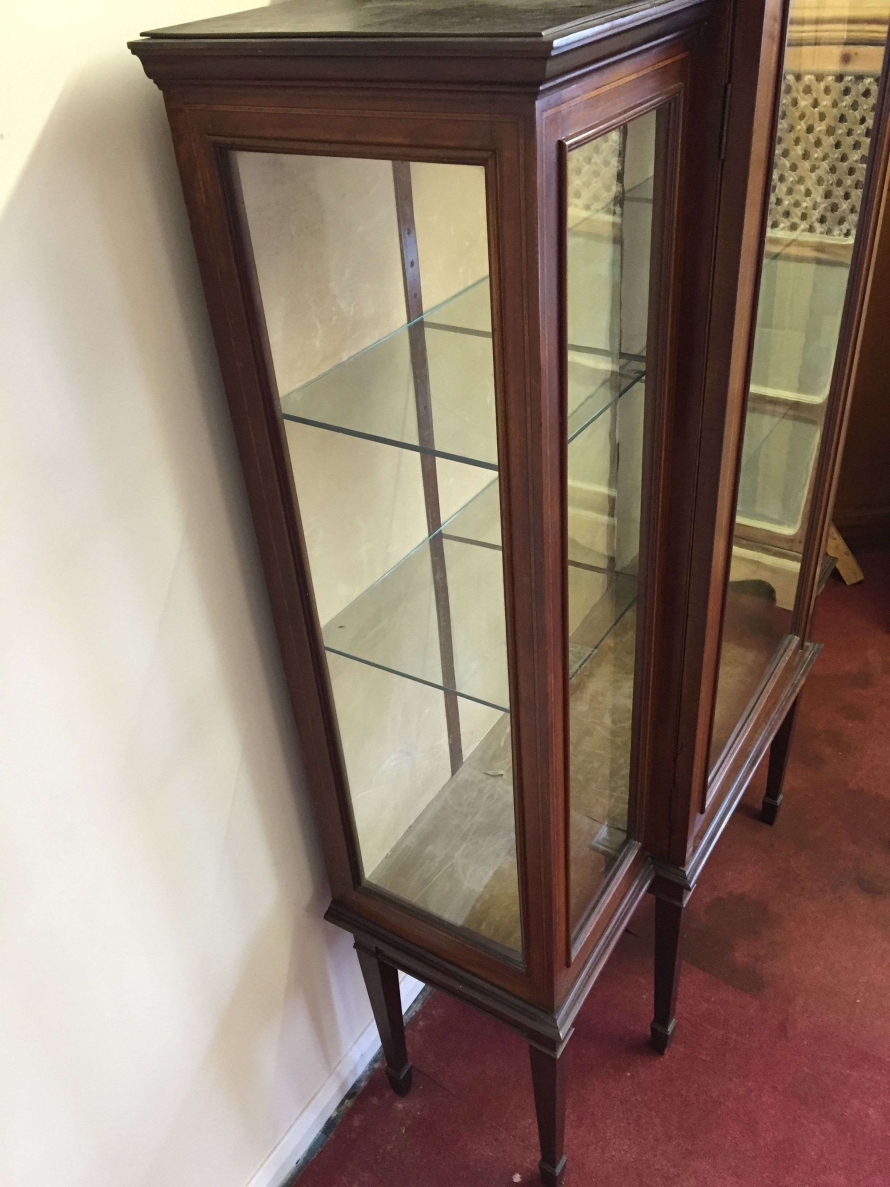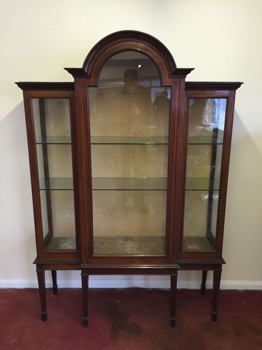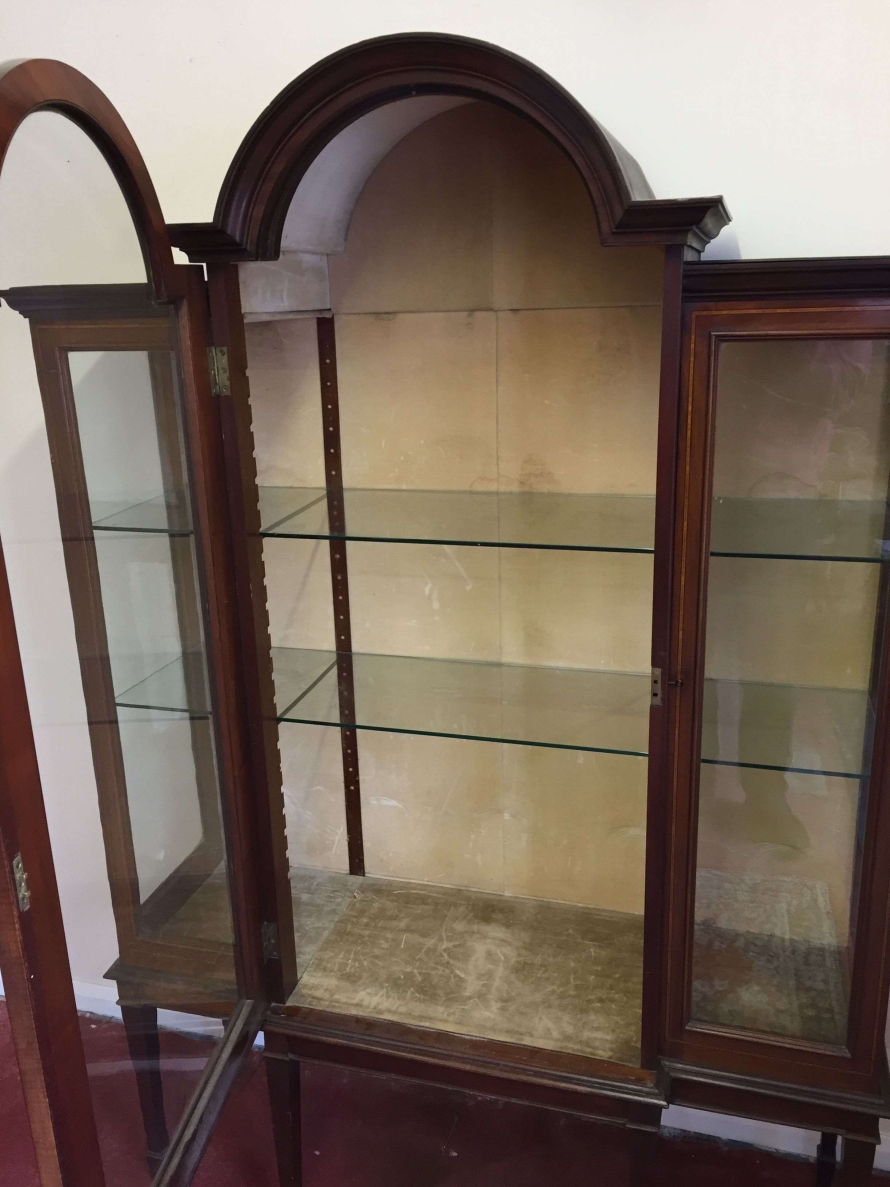 Top quality Mahogany Edwardian Cabinet. Two removable display shelves, dome top and is in two pieces.