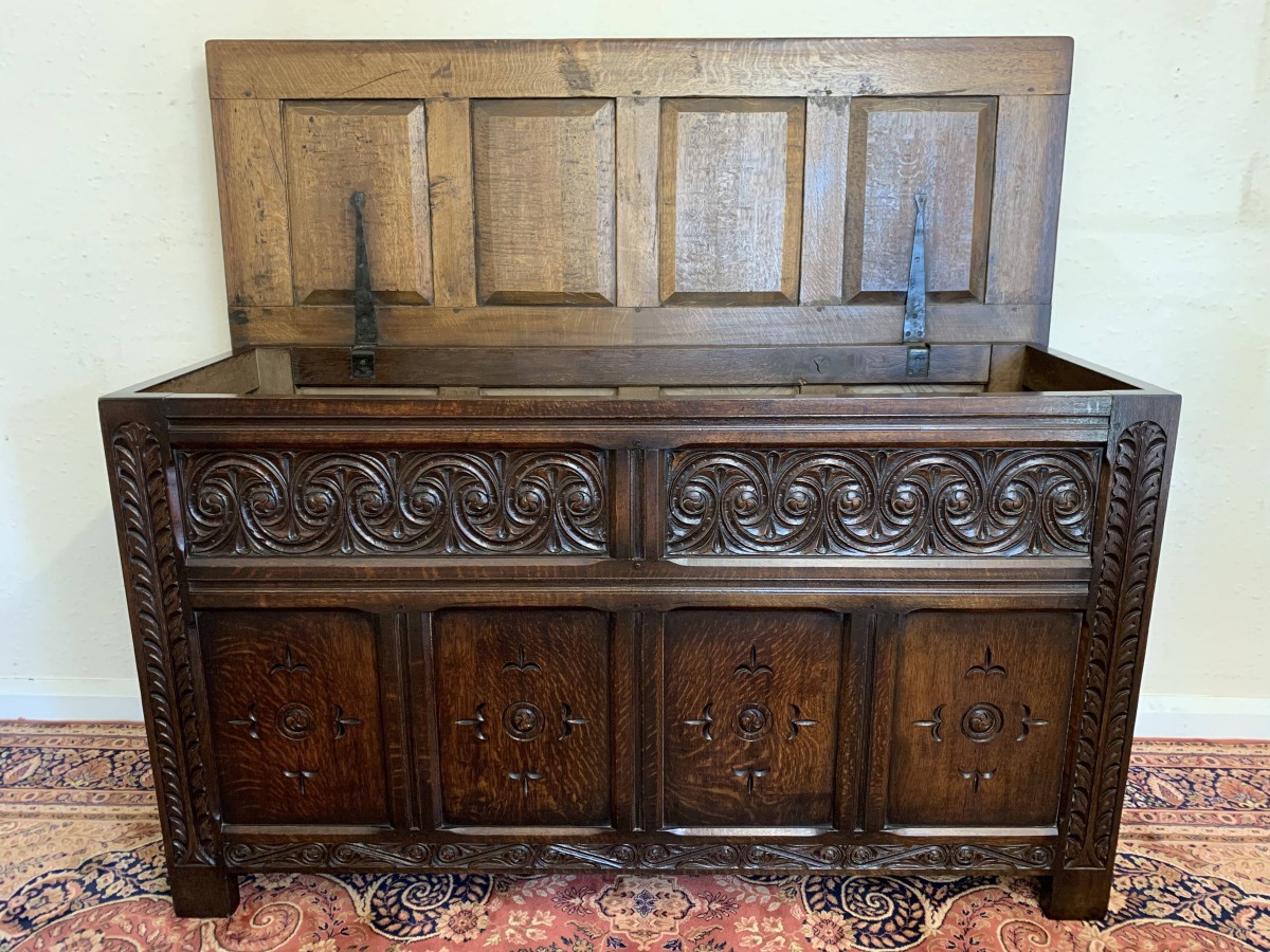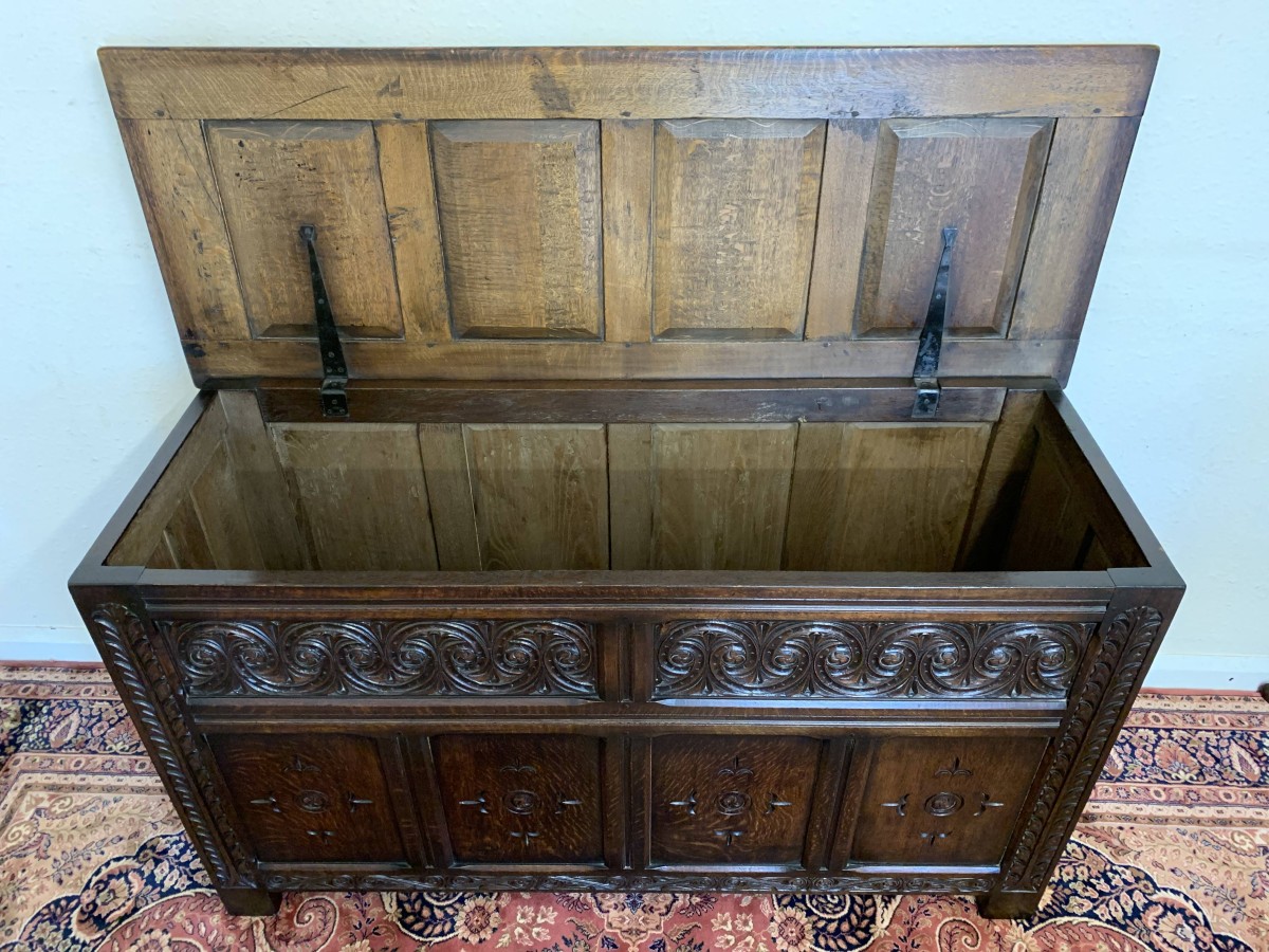 - Large Antique Four Panelled Carved Oak Lift Up Lid Chest/blanket Box/coffer – Now Sold