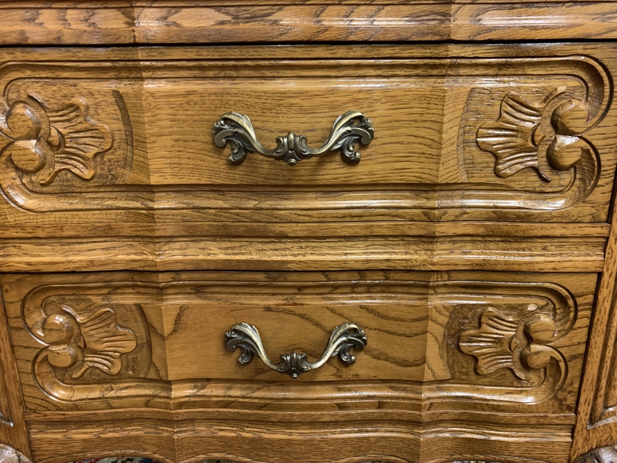 - Neat Sized French Shaped Carved Oak Chest Of Drawers – Now Sold