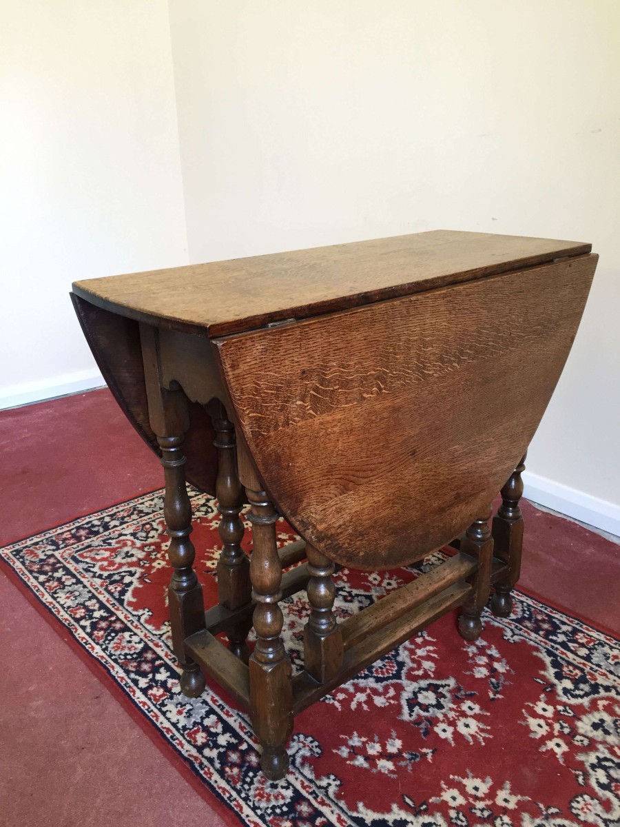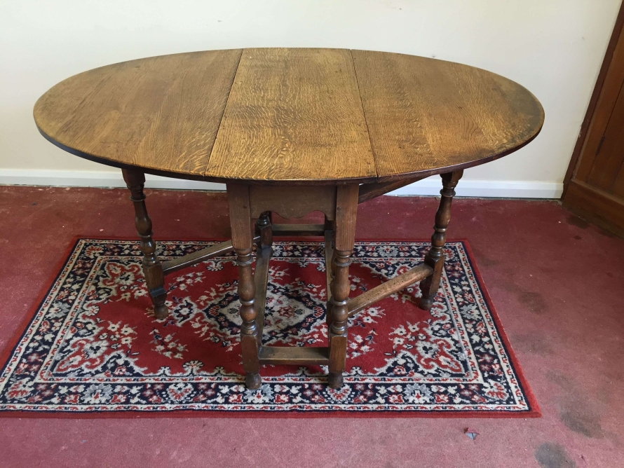 Solid oak antique style gate leg table. A useful sized table which drops down for space saving