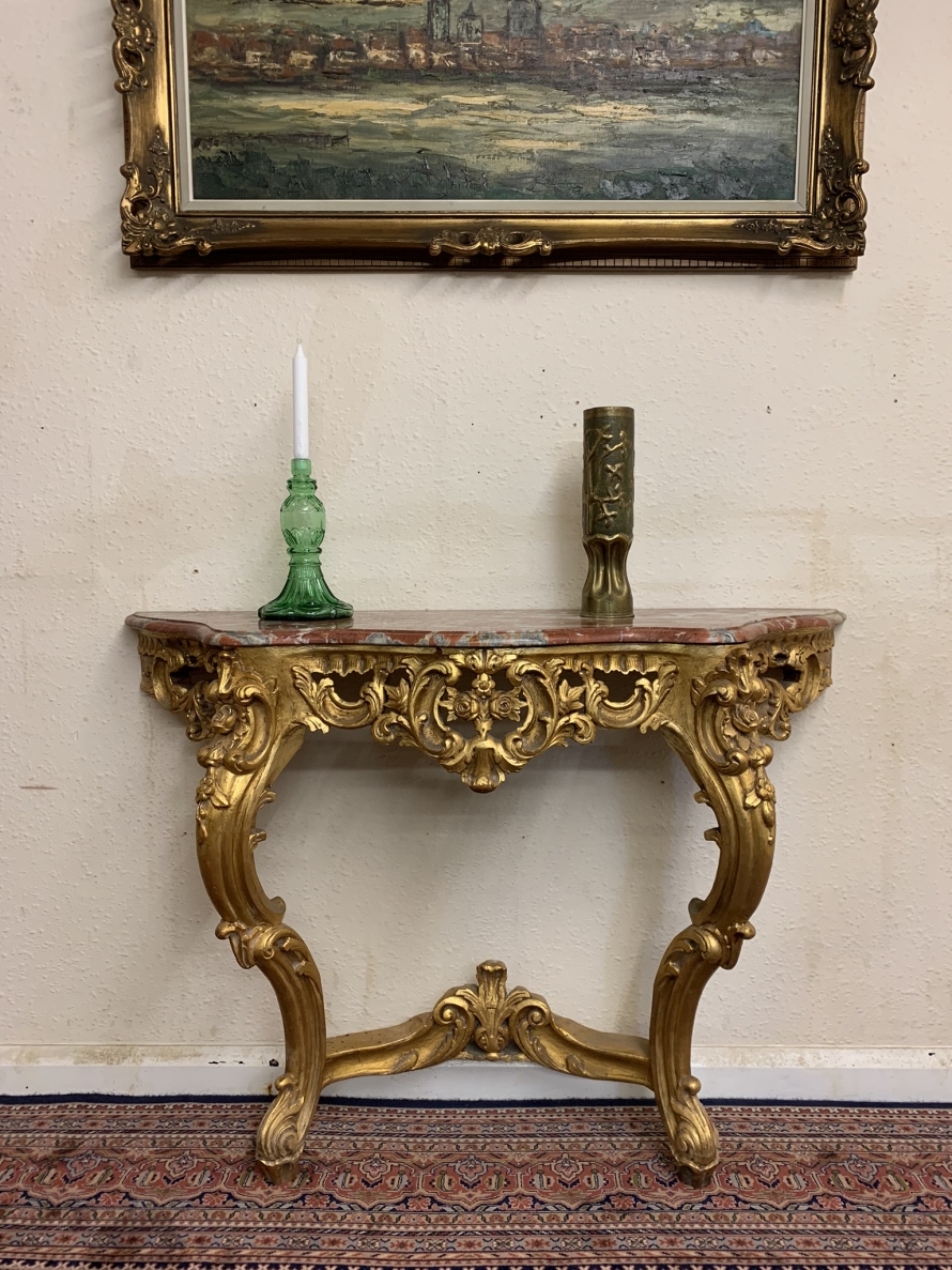 Opulent Shaped Carved Gilt Marble Top Console – Now Sold