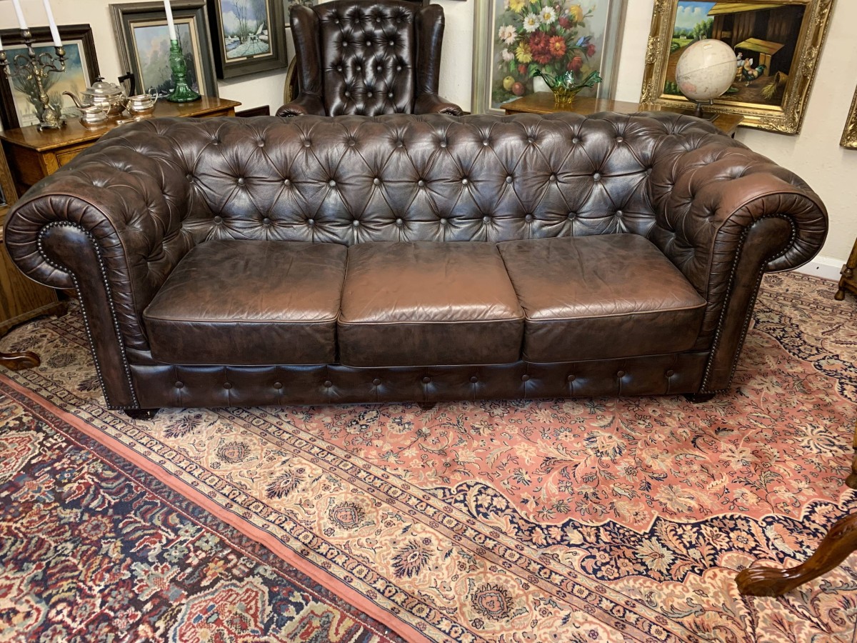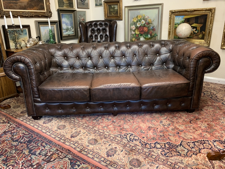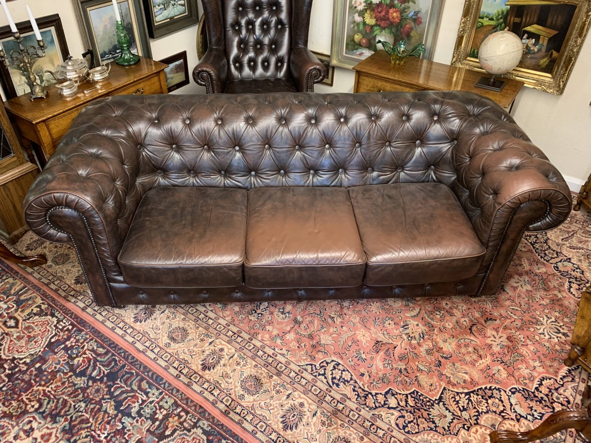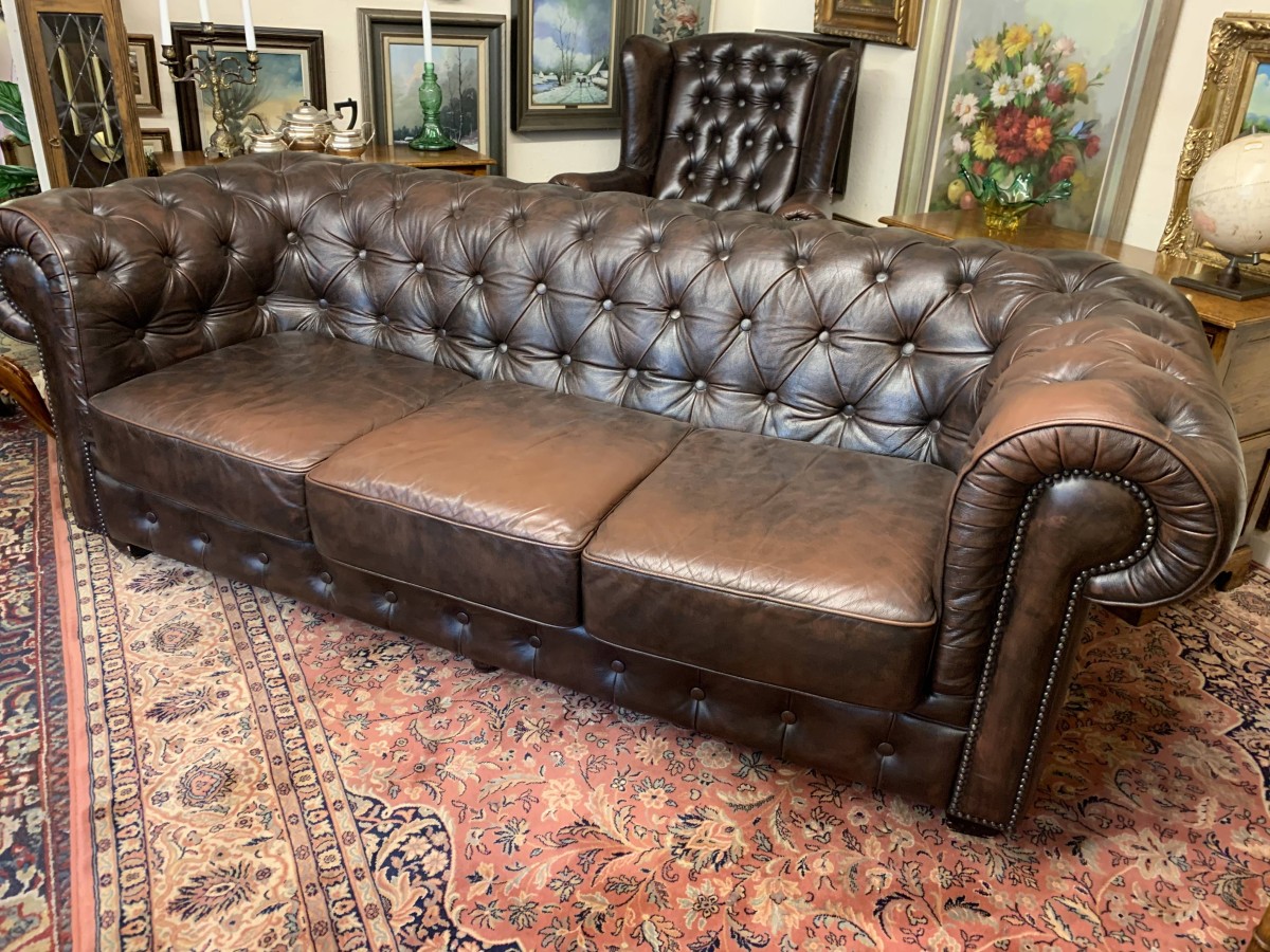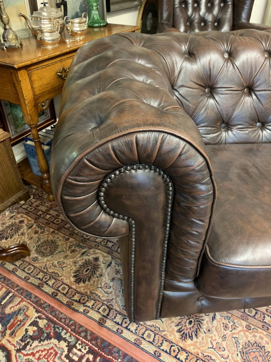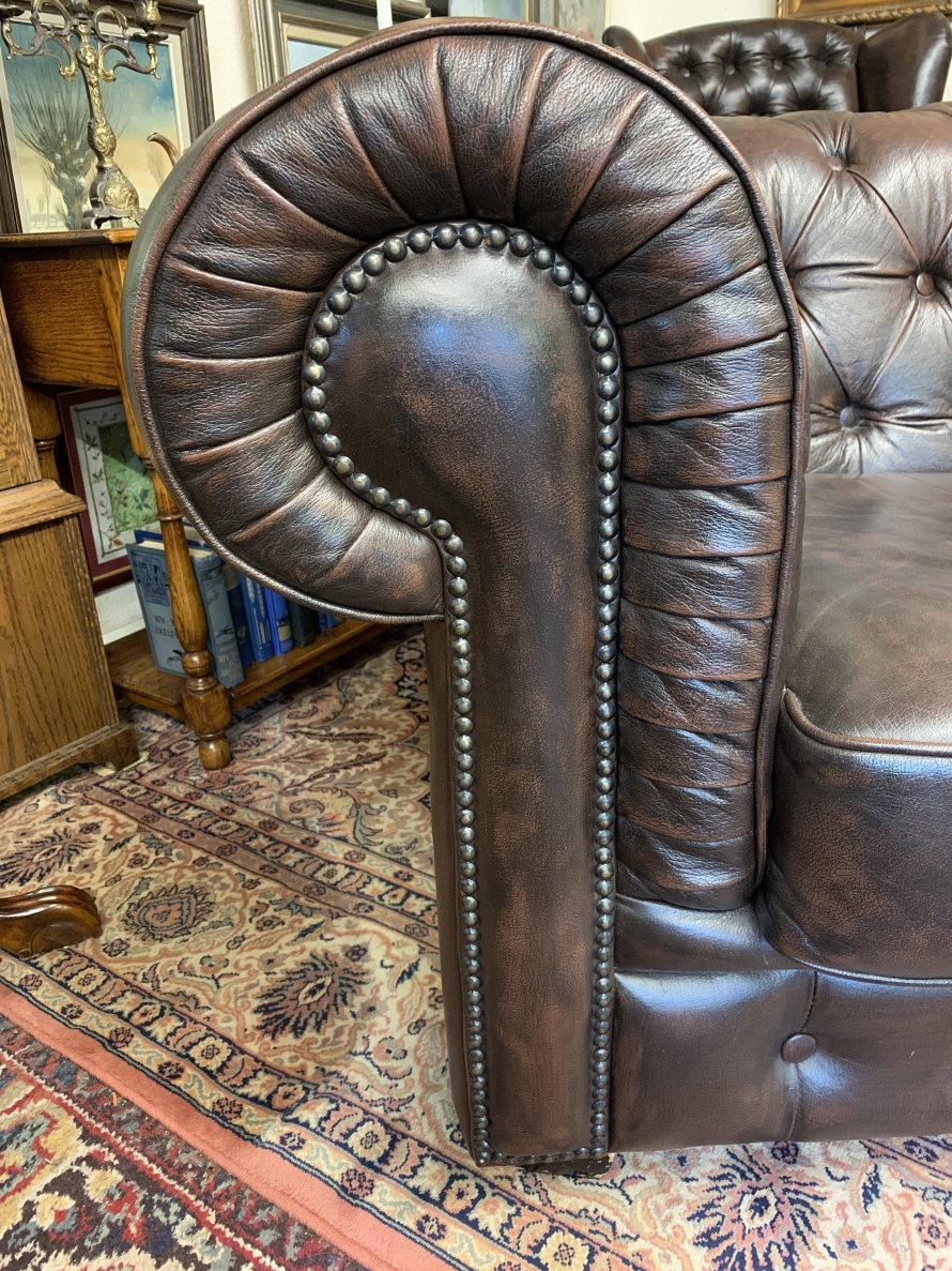 Outstanding Quality Antique Brown Leather Three Seater Chesterfield Sofa – Now Sold