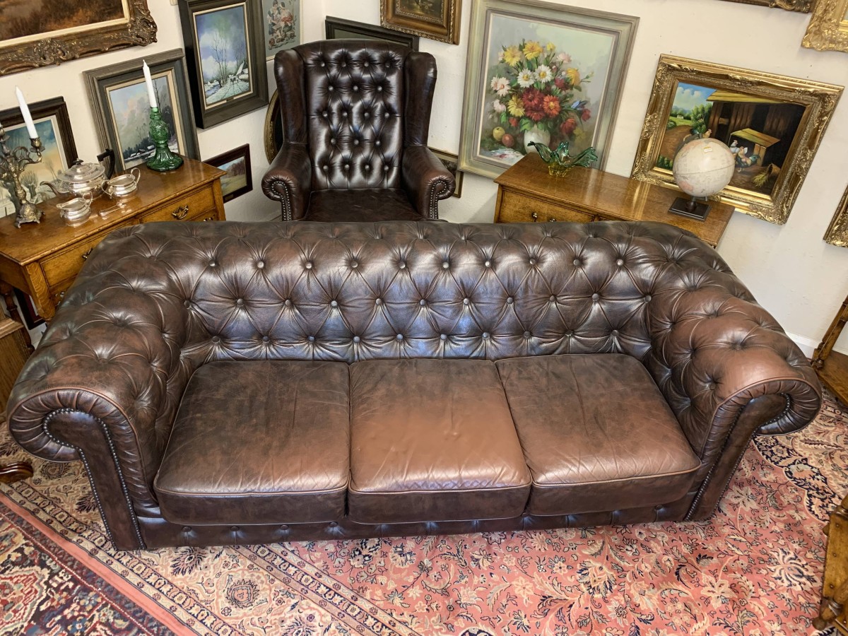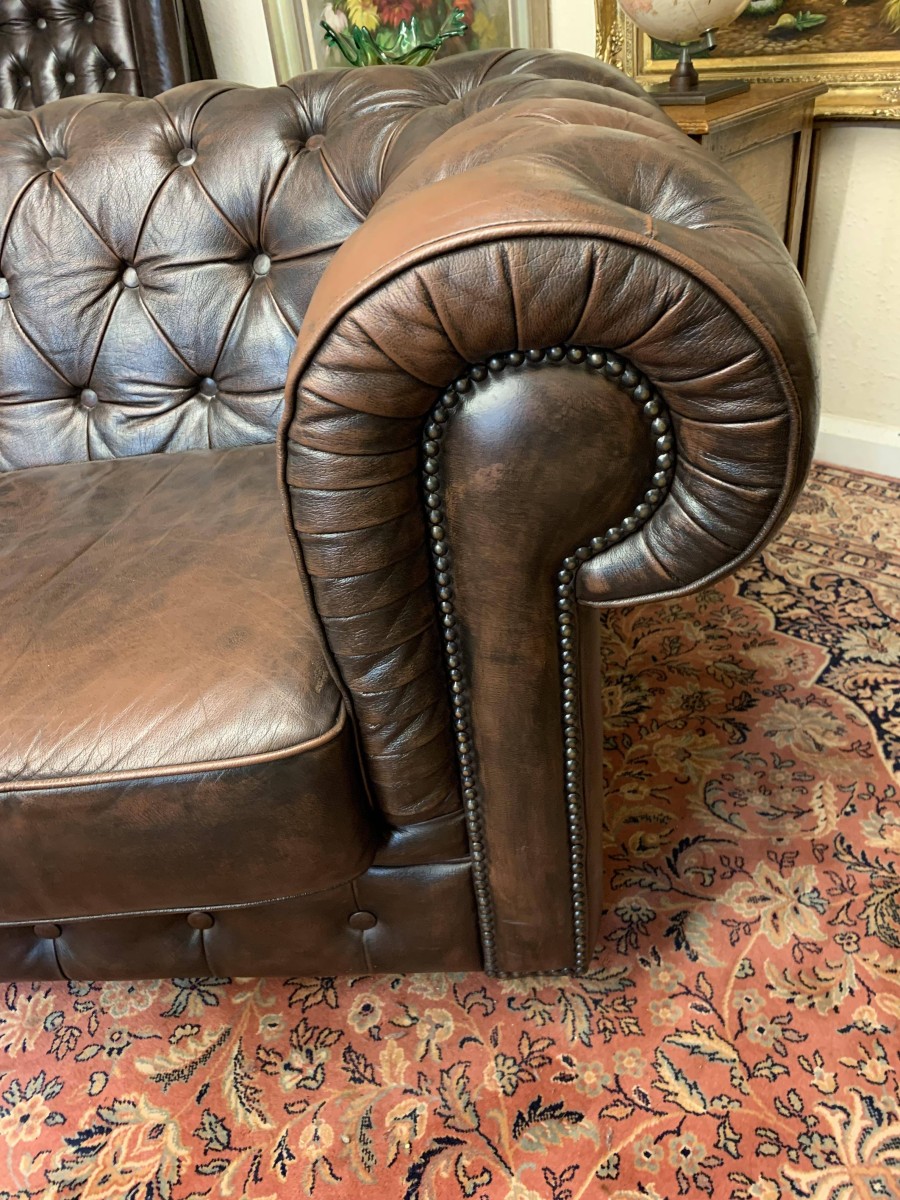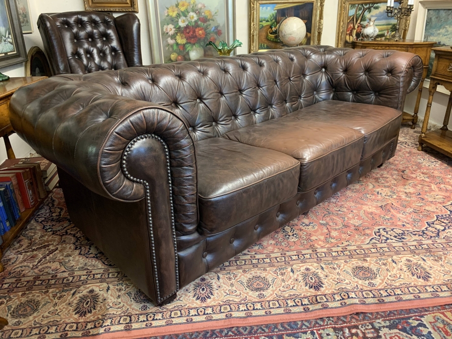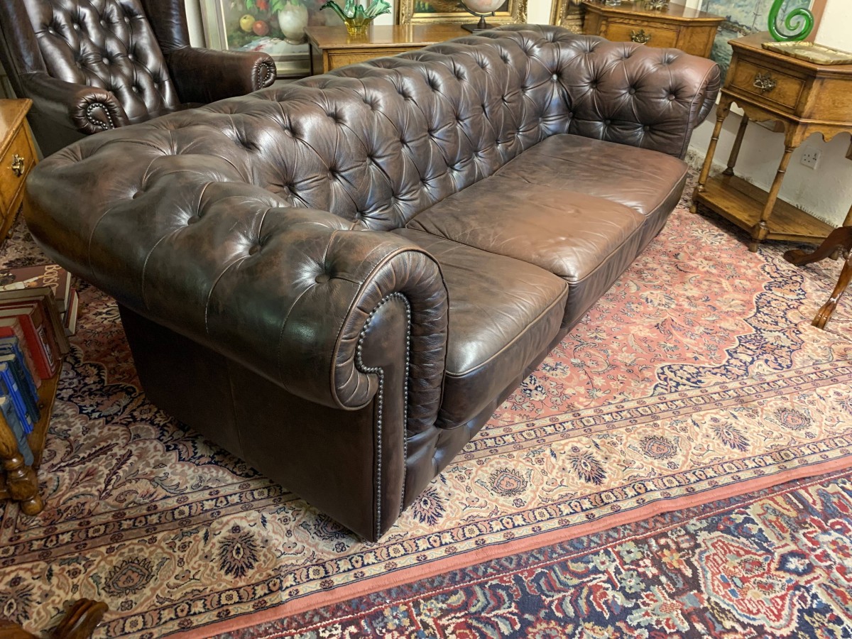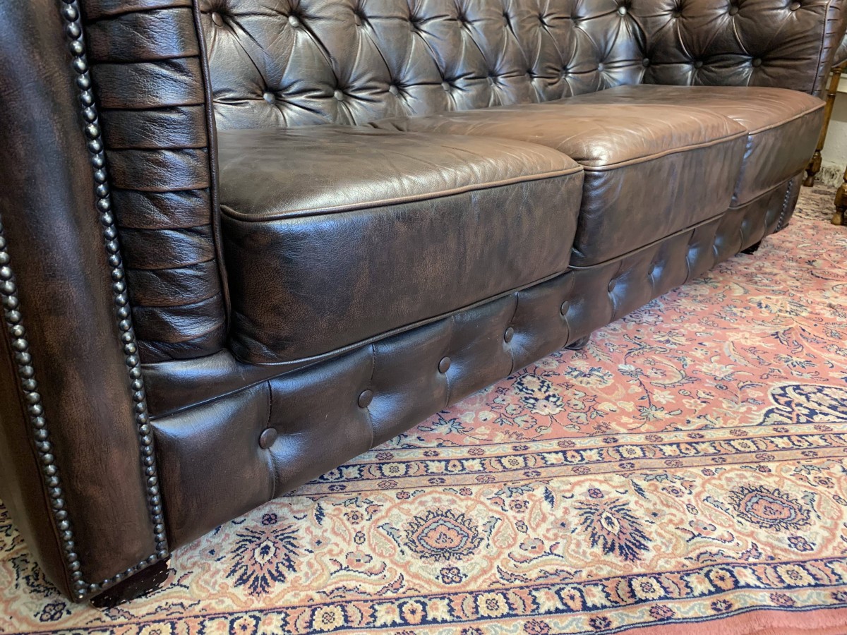 - Outstanding Quality Antique Brown Leather Three Seater Chesterfield Sofa – Now Sold