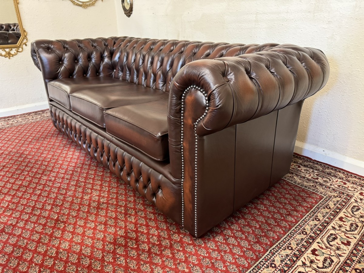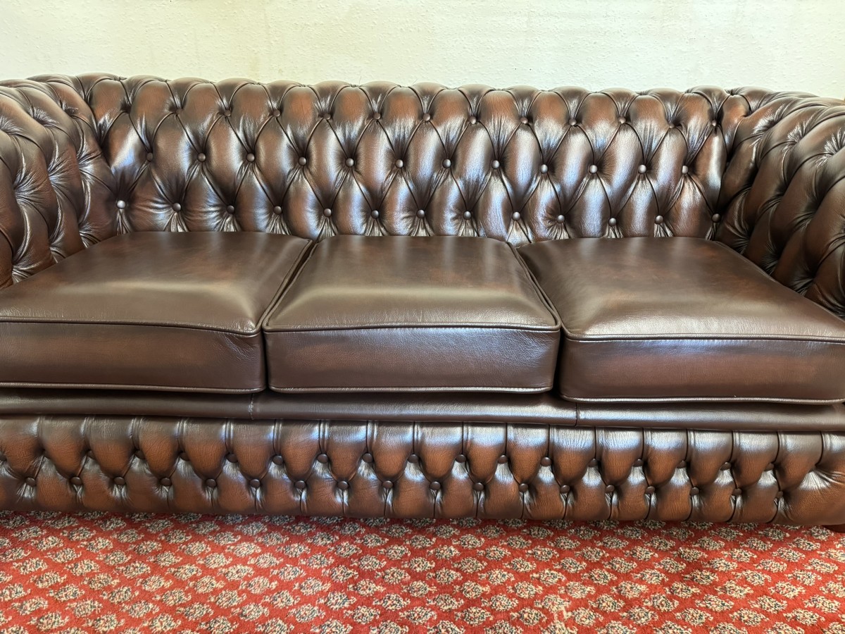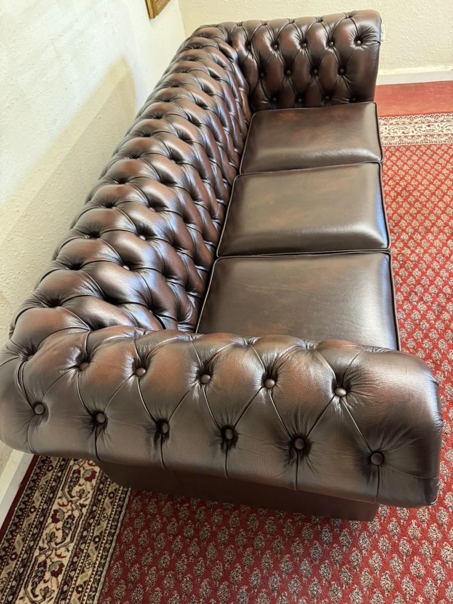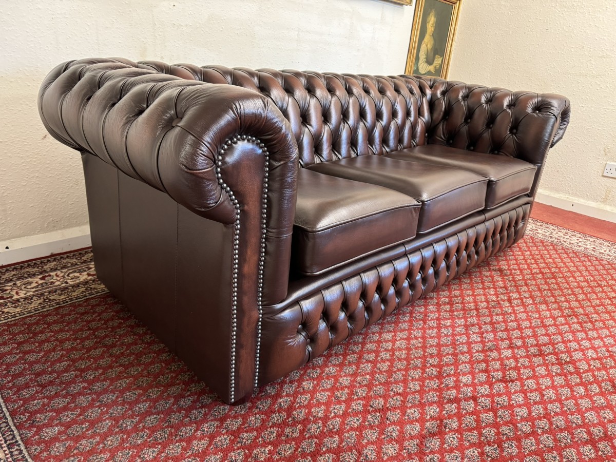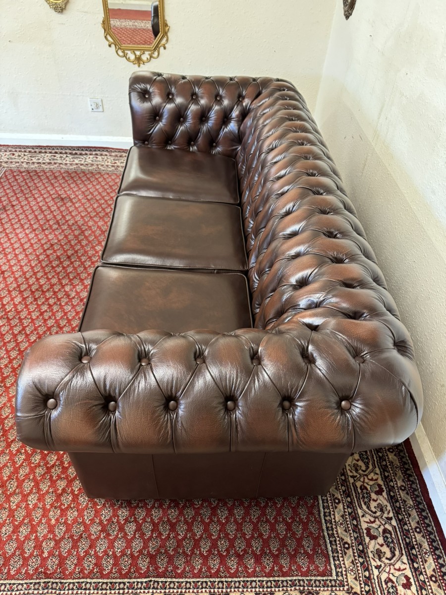 - Outstanding Quality Antique Brown Leather Three Seater Chesterfield Sofa/settee
