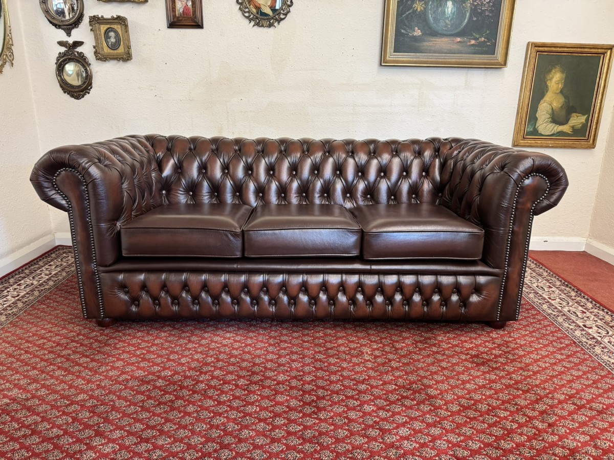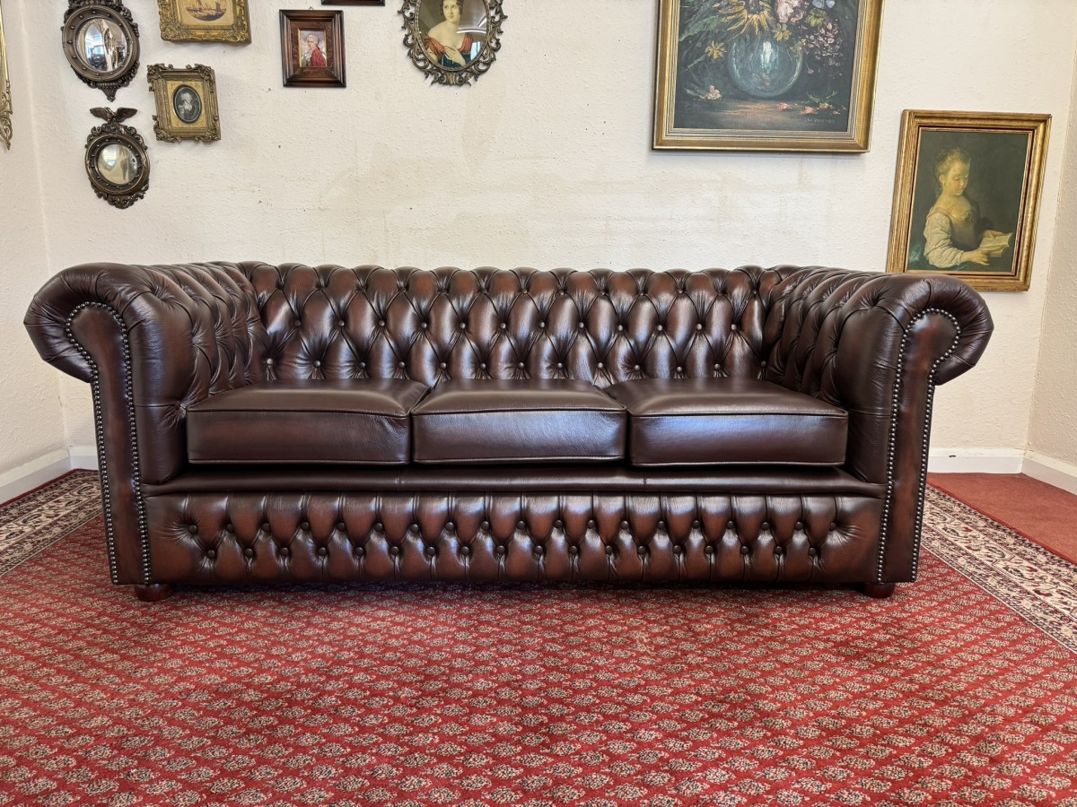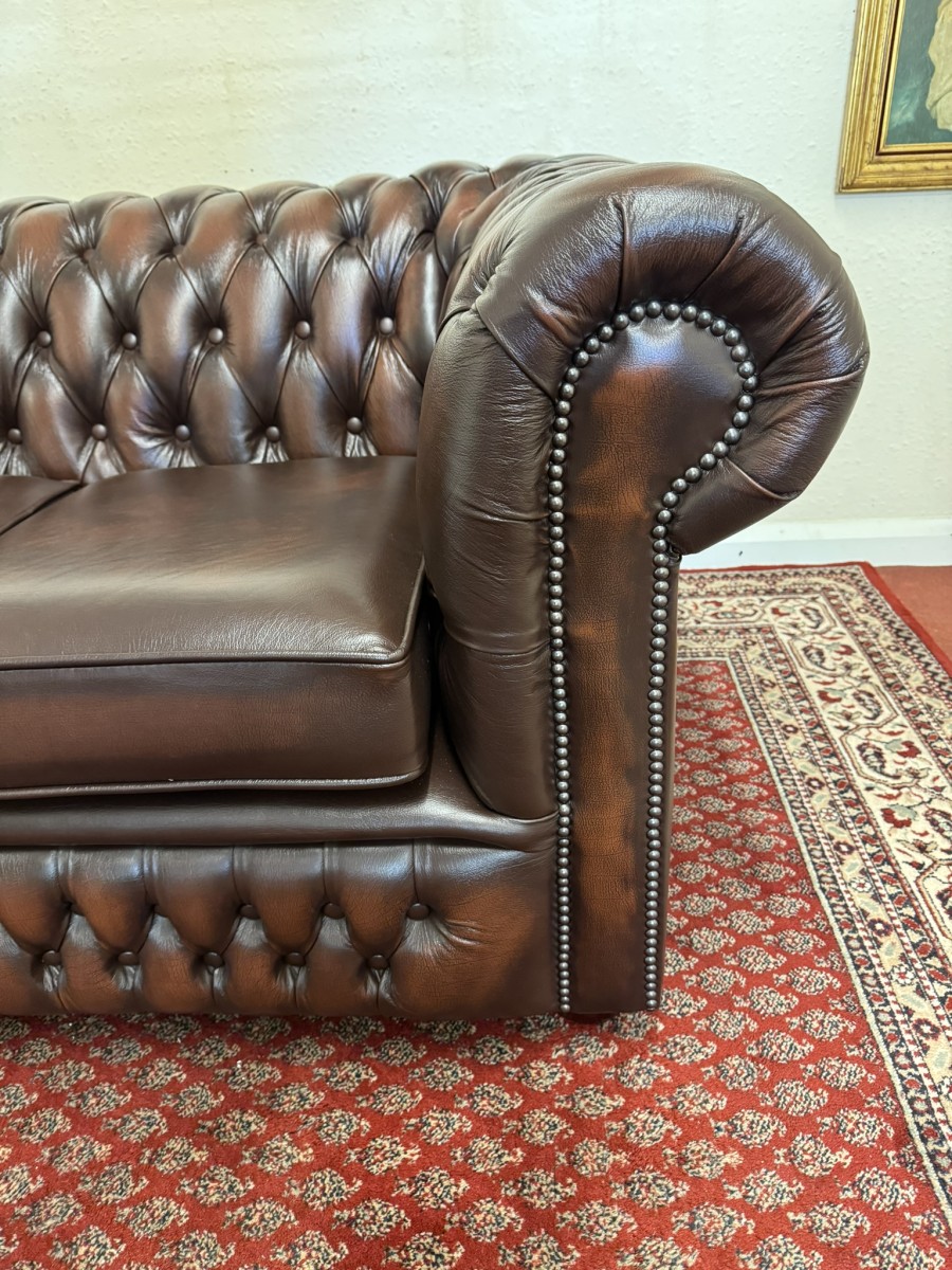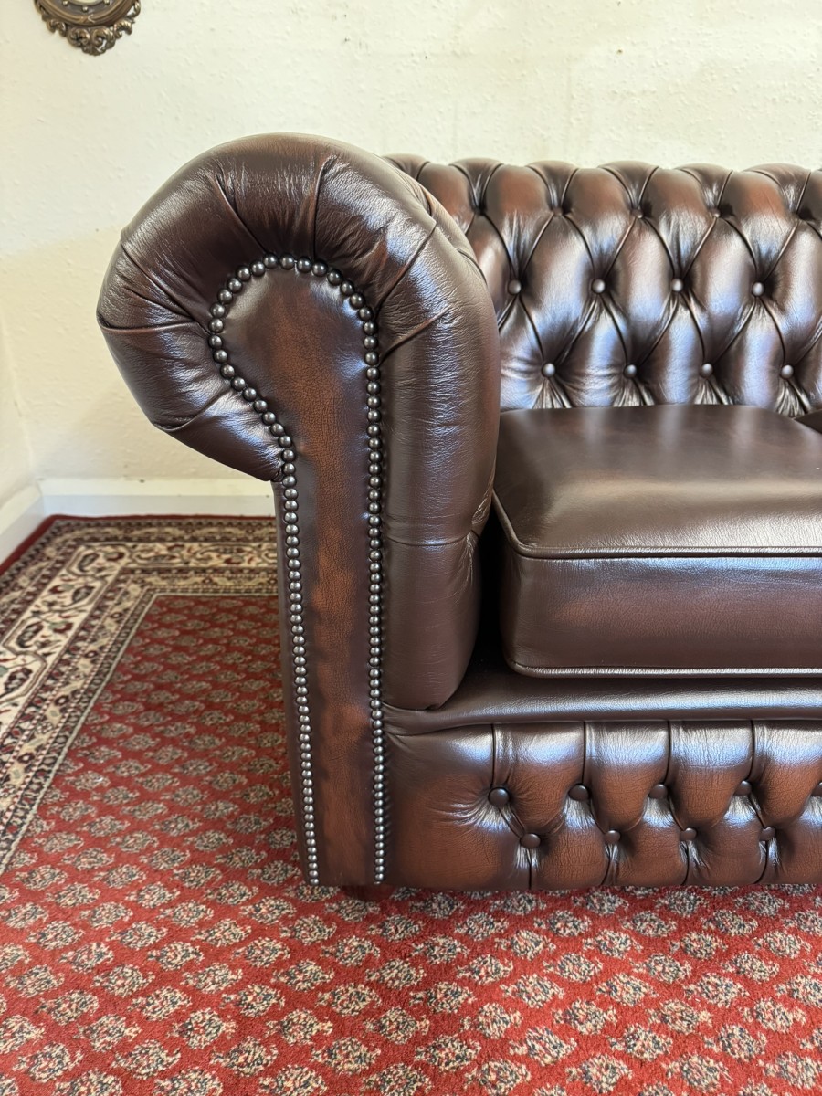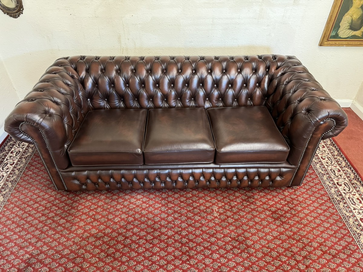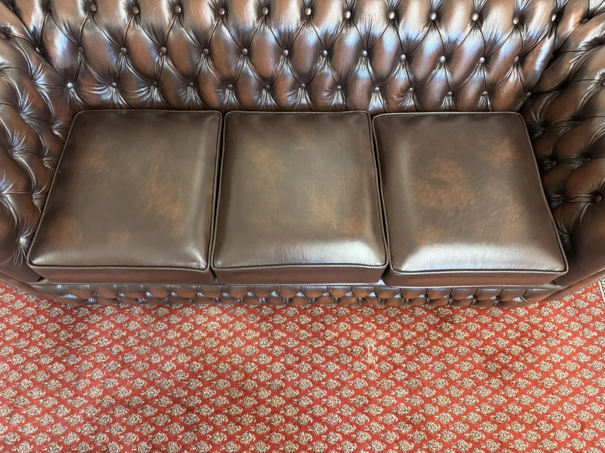 - Outstanding Quality Antique Brown Leather Three Seater Chesterfield Sofa/settee