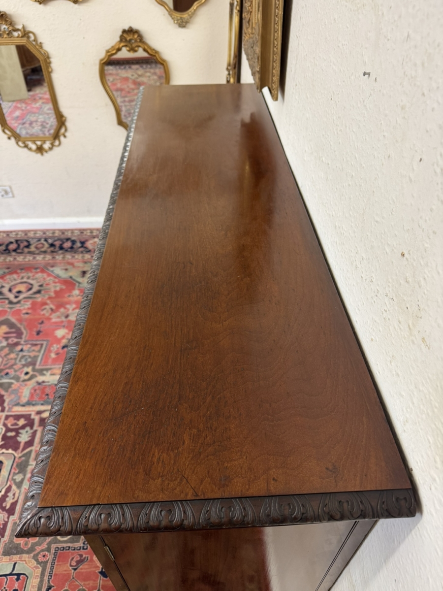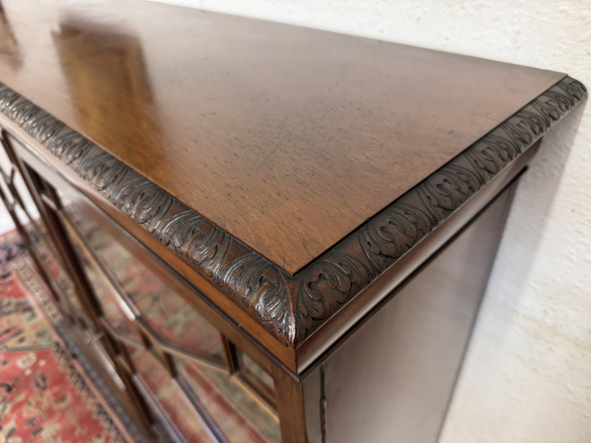 OUTSTANDING QUALITY ANTIQUE CARVED MAHOGANY GLAZED BOOKCASE CIRCA 1910