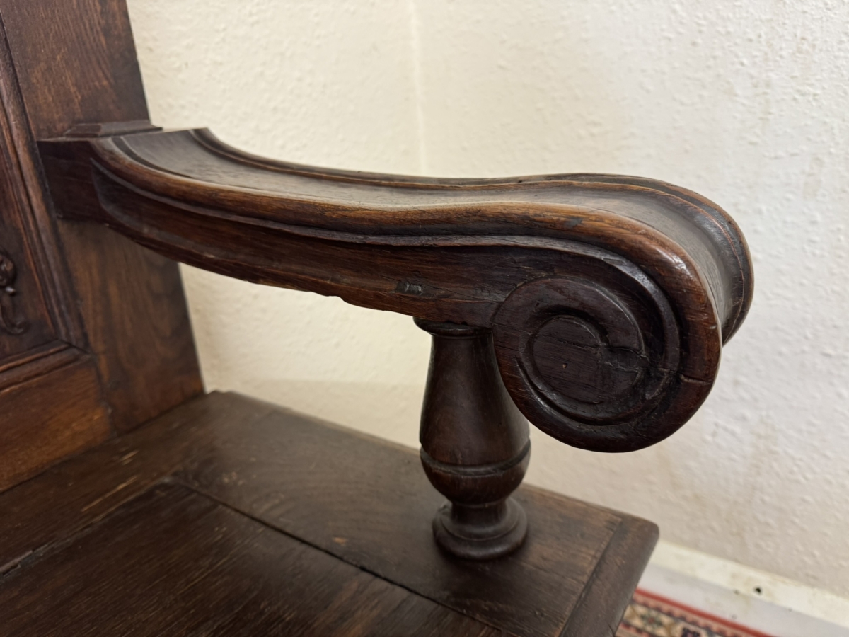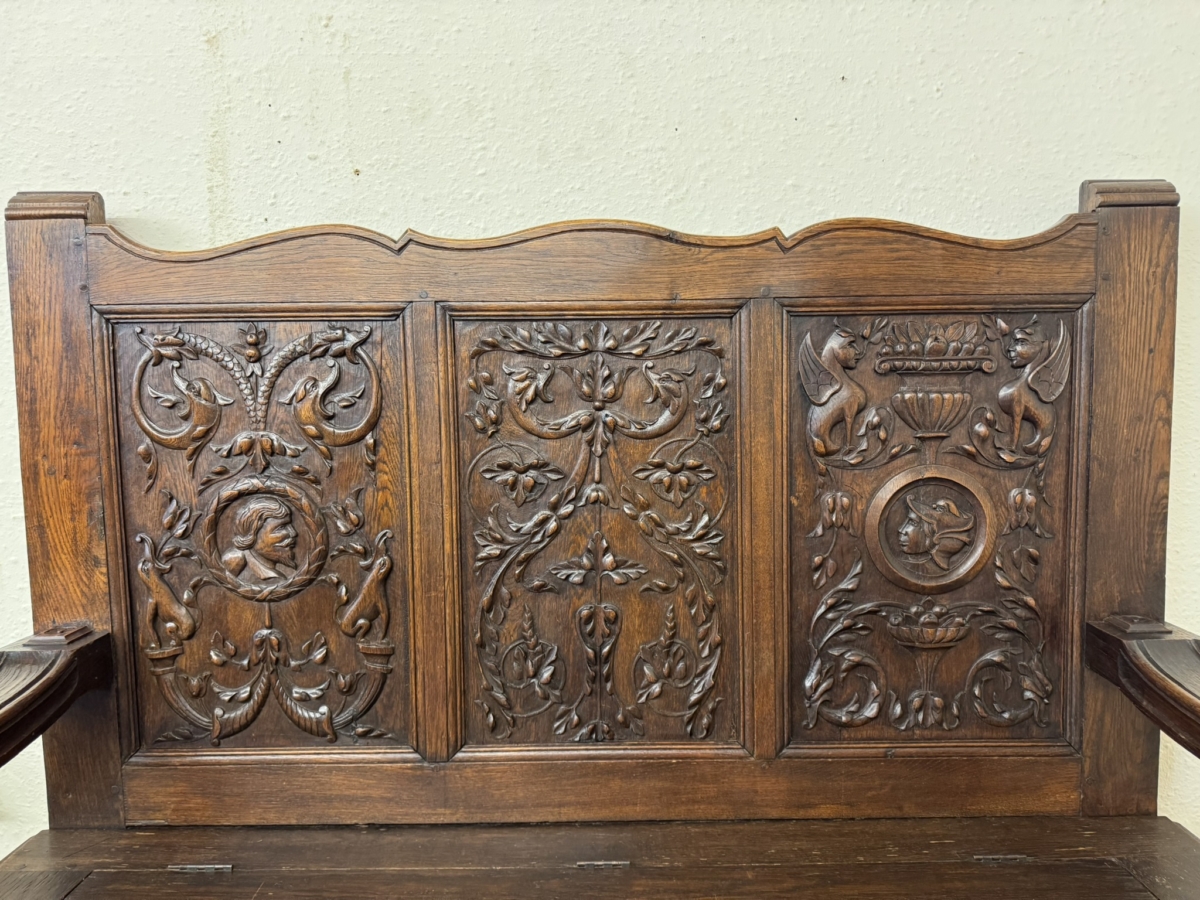 - OUTSTANDING QUALITY ANTIQUE CARVED OAK BENCH/SETTLE/HALL SEAT CIRCA 1870