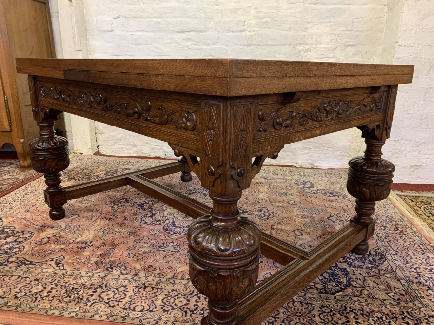 - Outstanding Quality Antique Carved Oak Extending Table – Now Sold