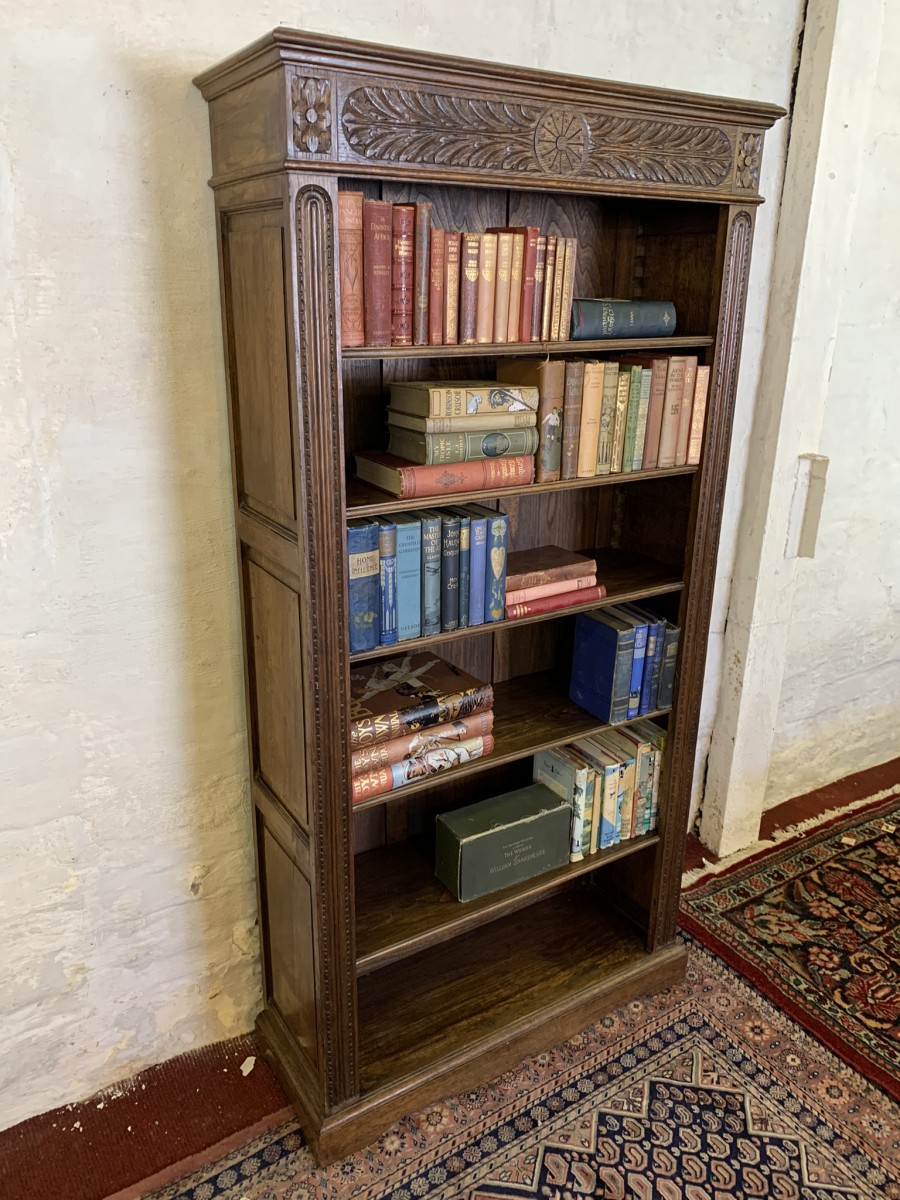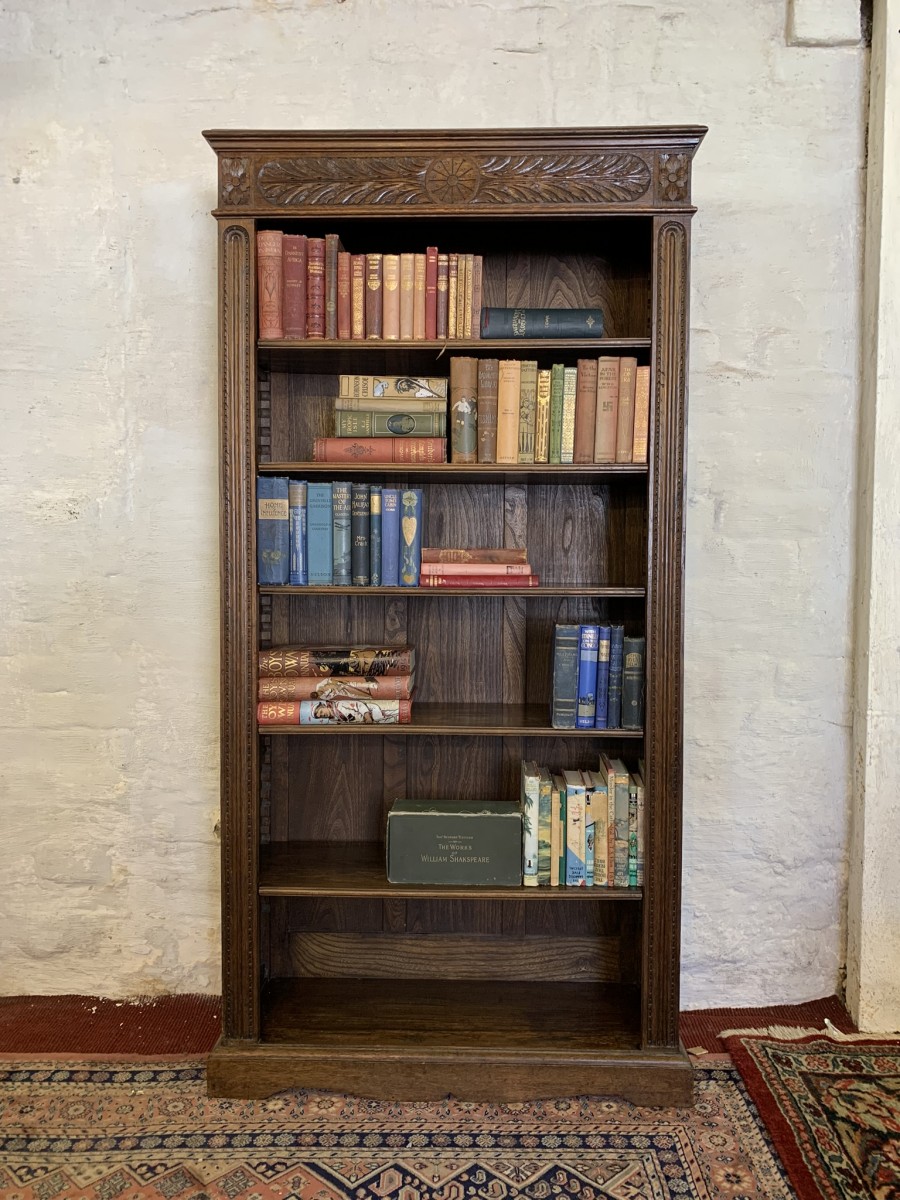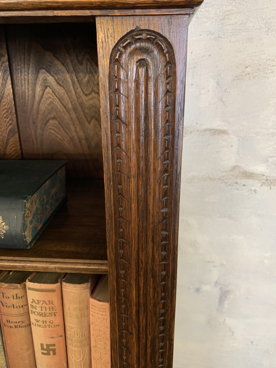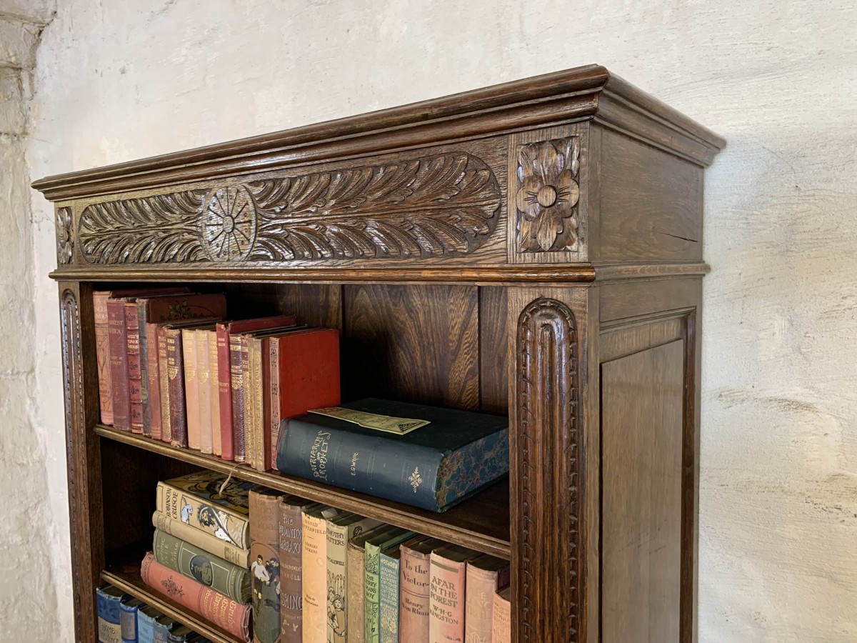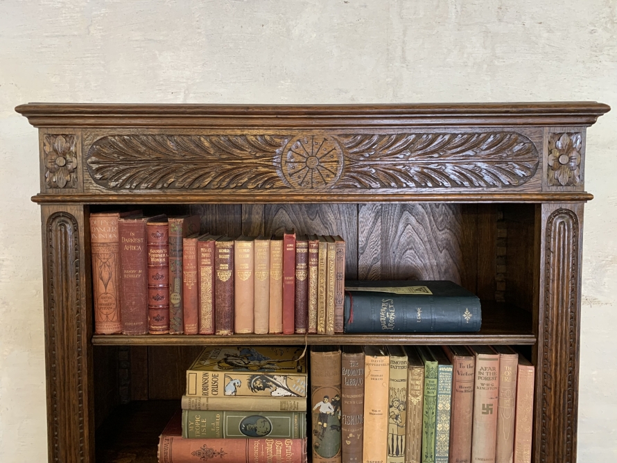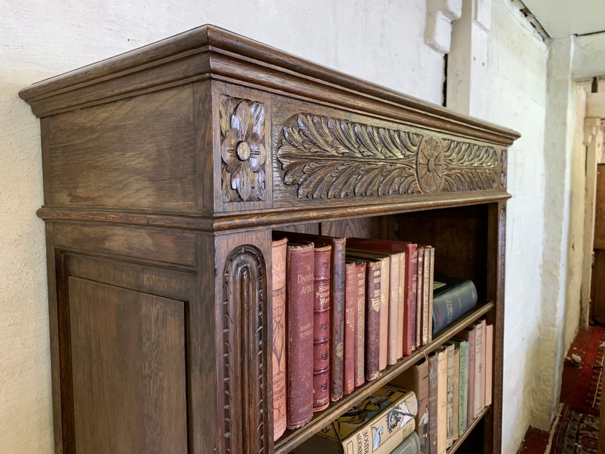 - Outstanding Quality Antique Carved Oak Open Bookcase Circa 1900