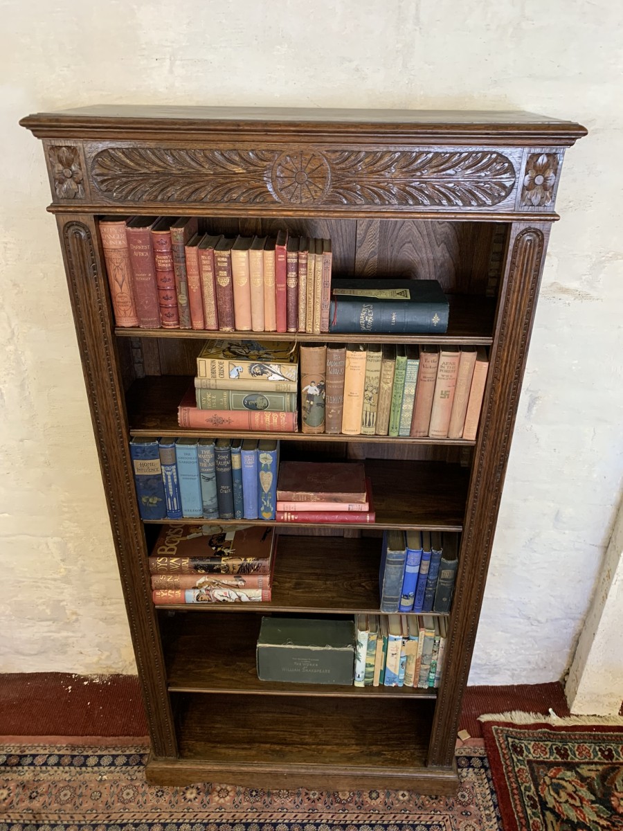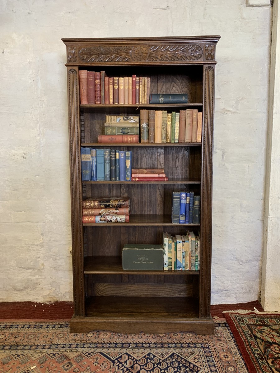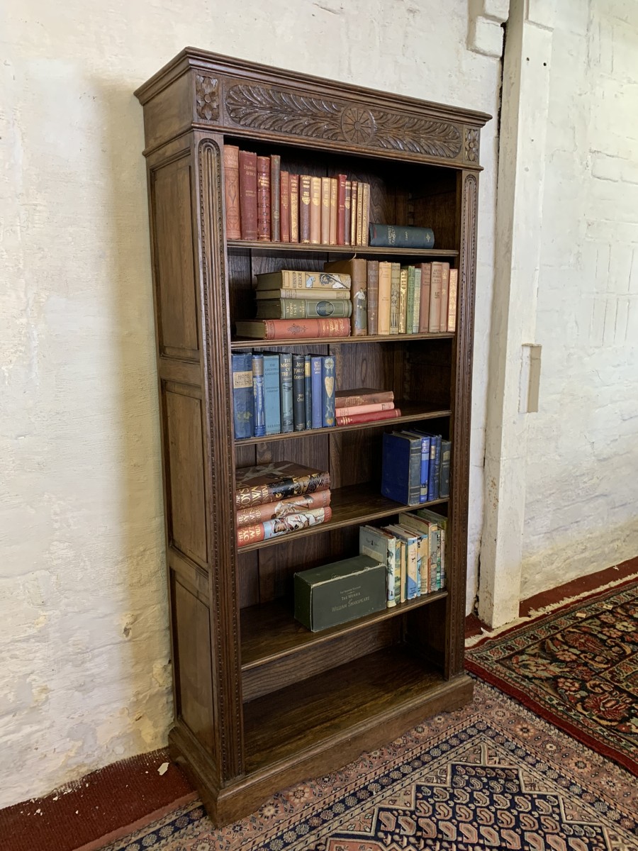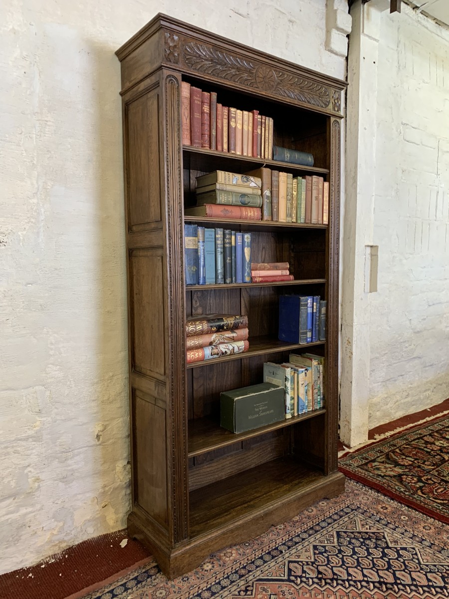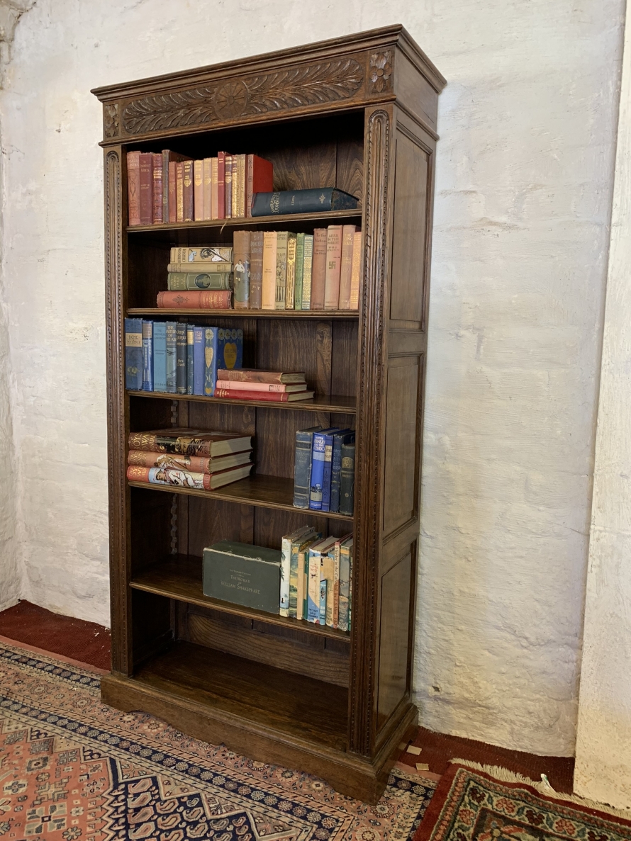 - Outstanding Quality Antique Carved Oak Open Bookcase Circa 1900