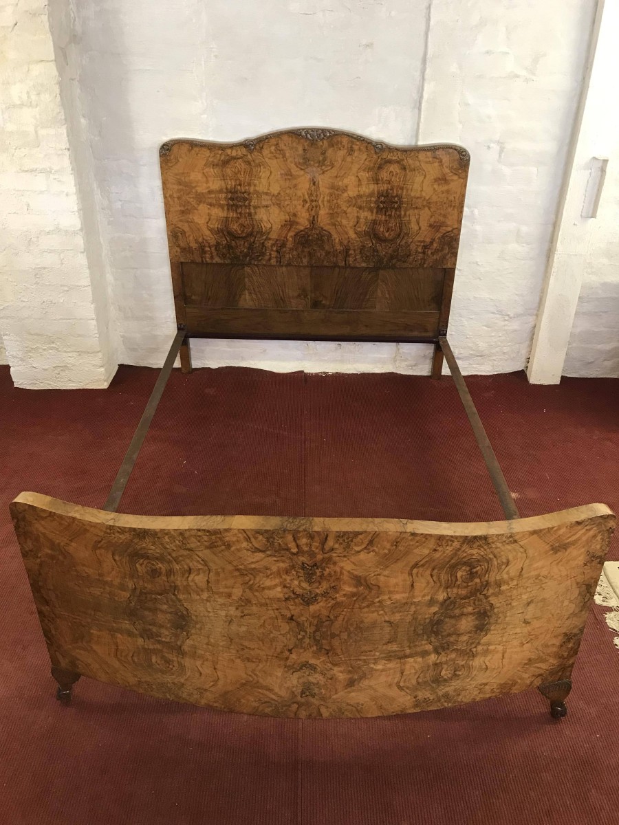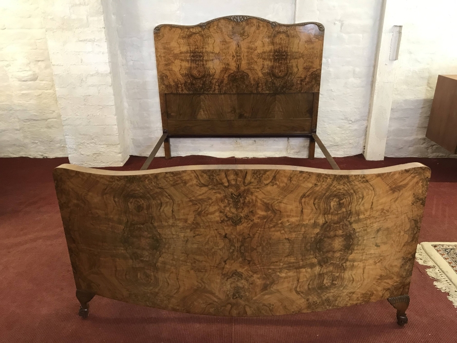Outstanding Quality Burr Walnut Art Deco Double Bed.