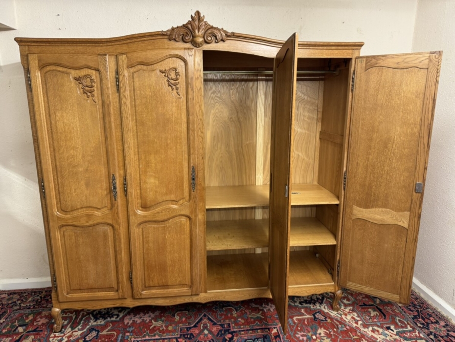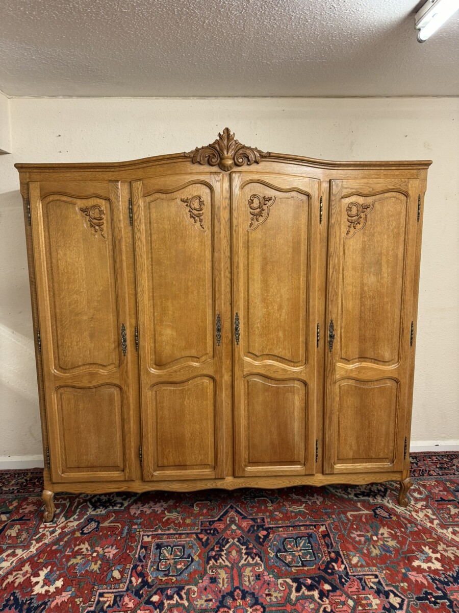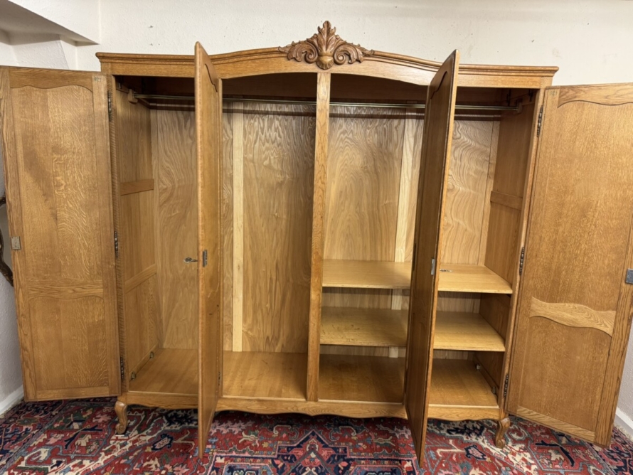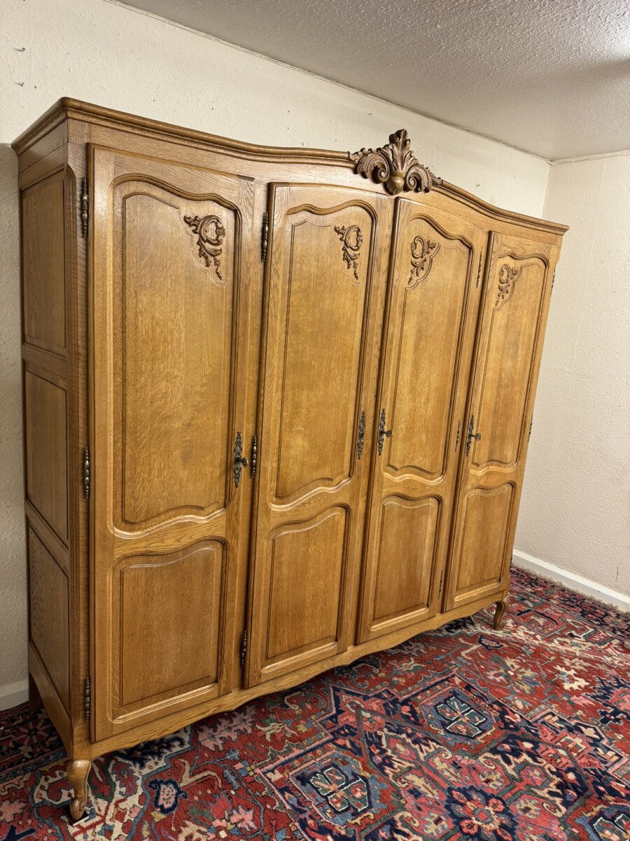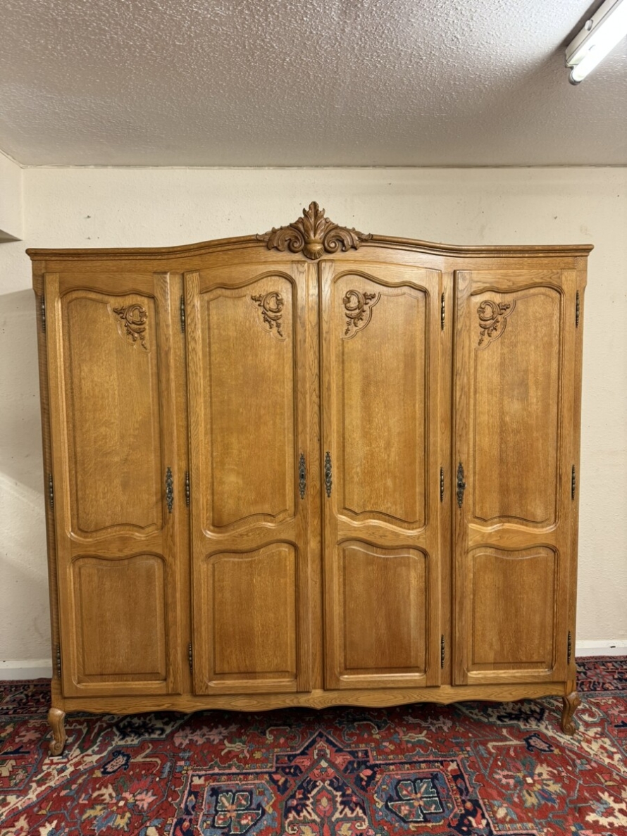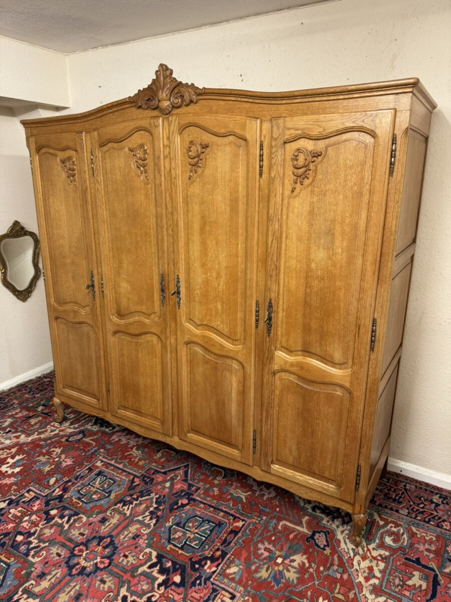 Outstanding Quality French Carved Oak Four-Door Armoire/Wardrobe