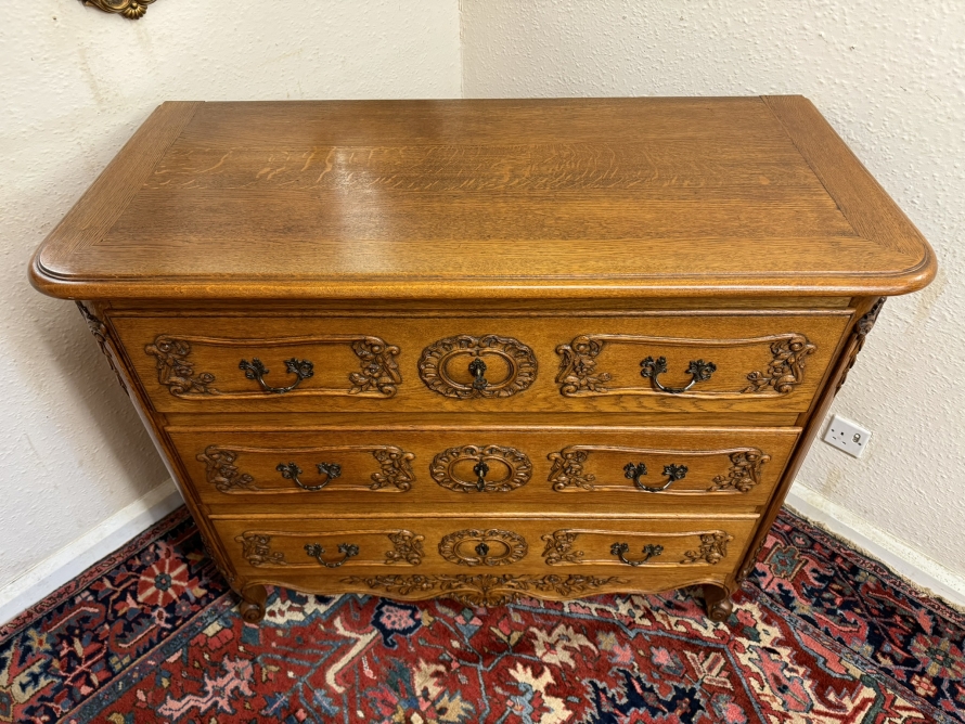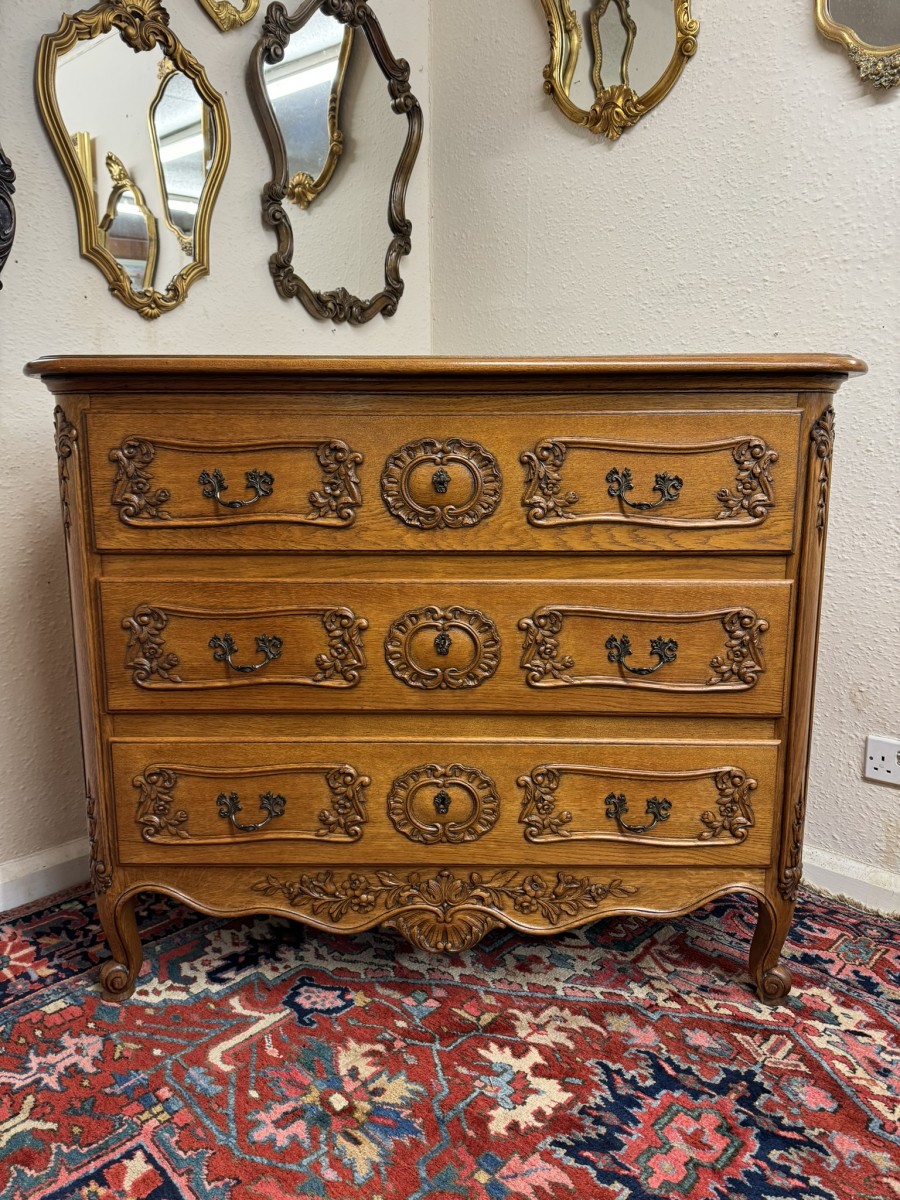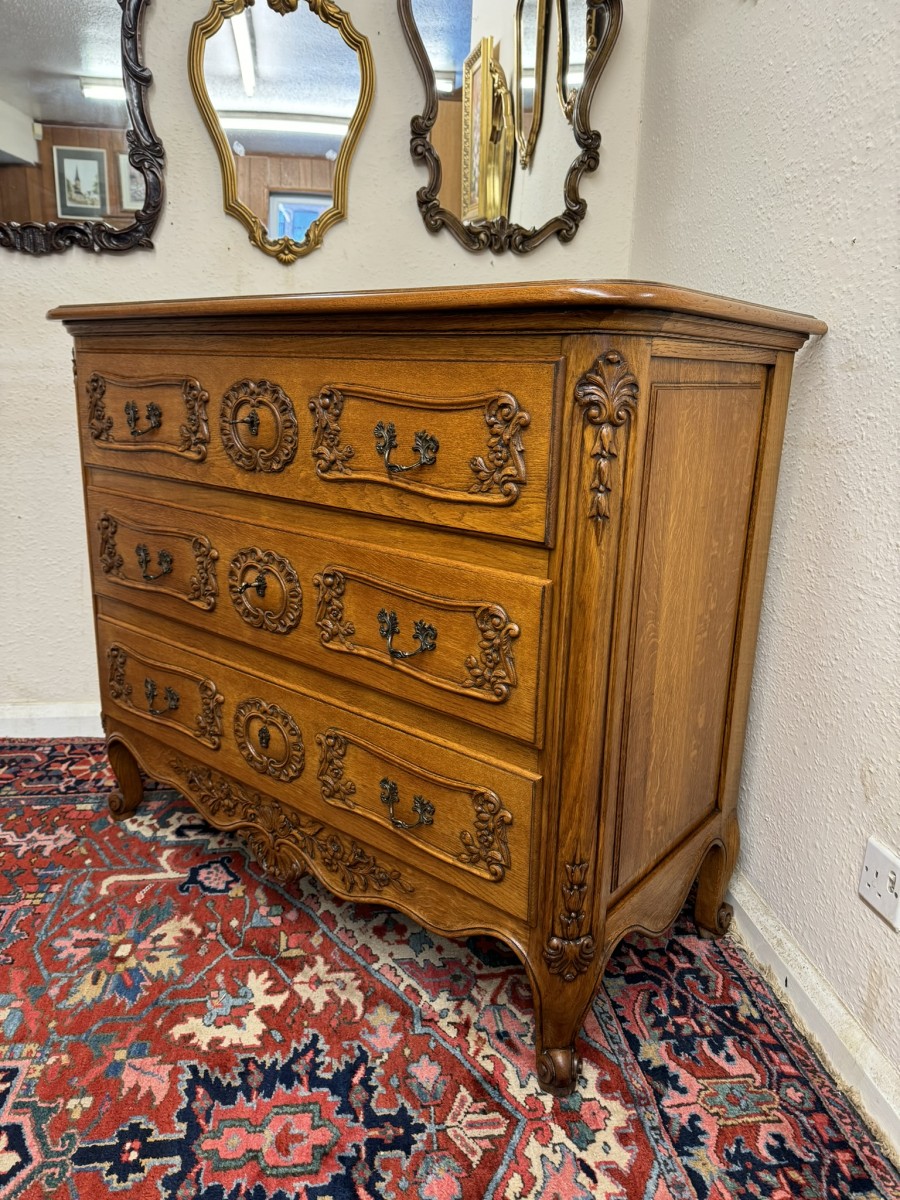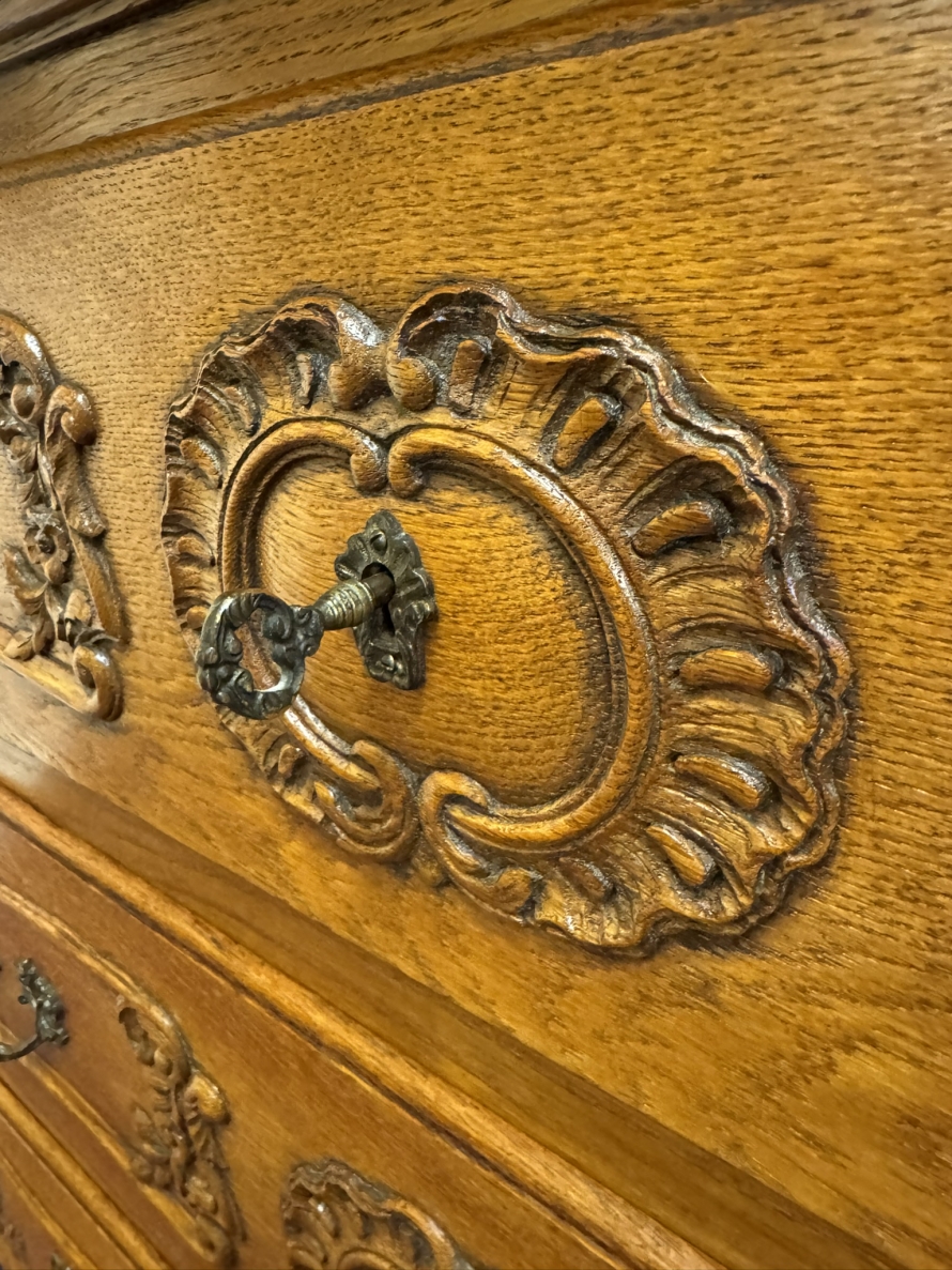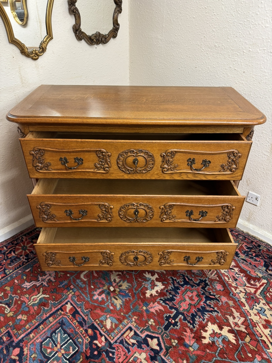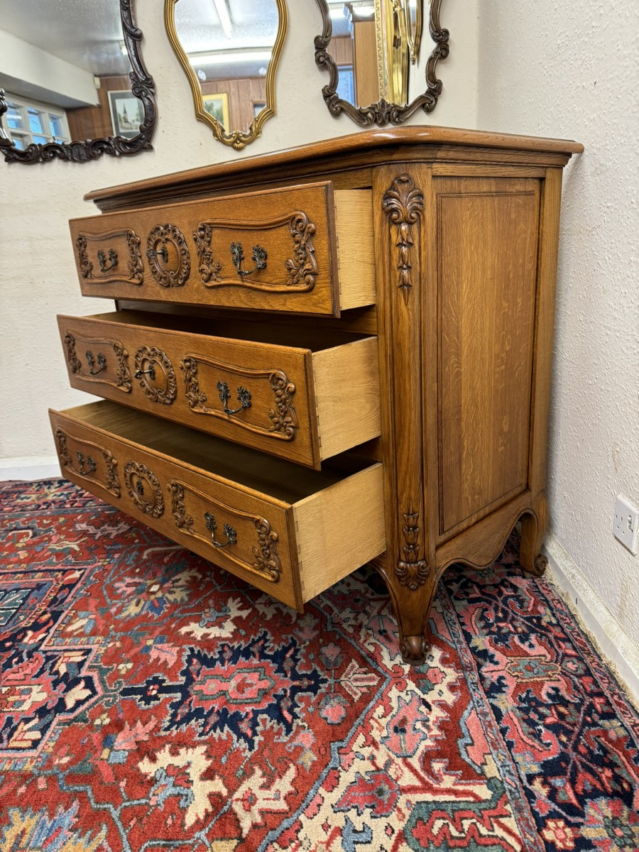 Outstanding Quality French Carved Oak Large Commode/chest Of Drawers