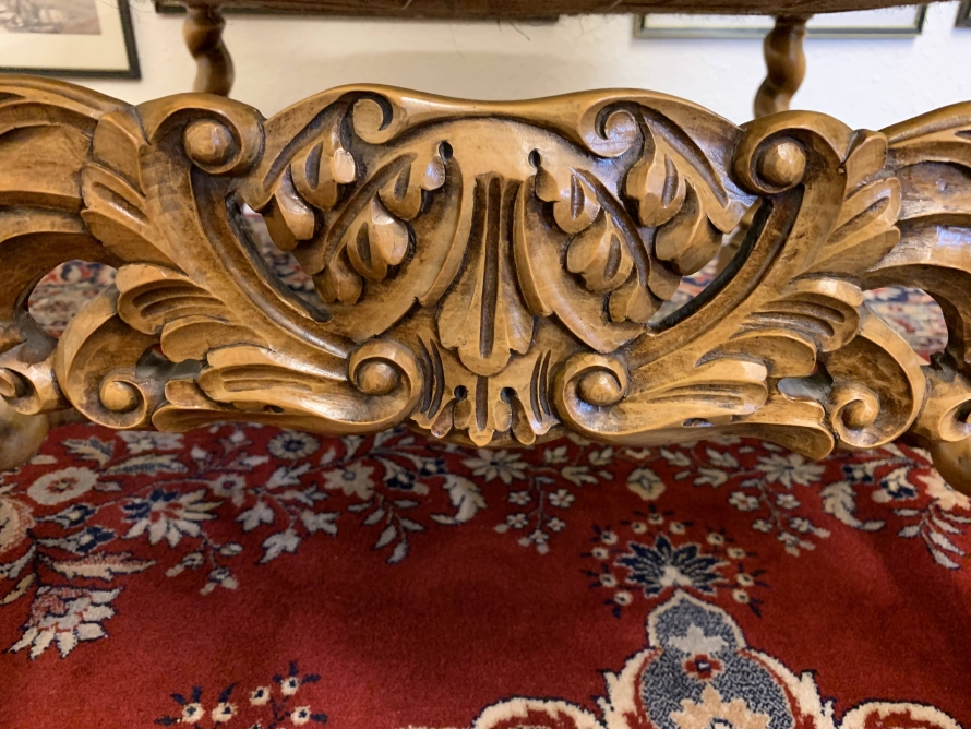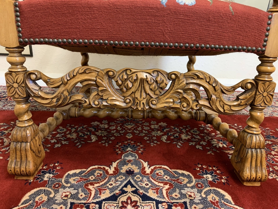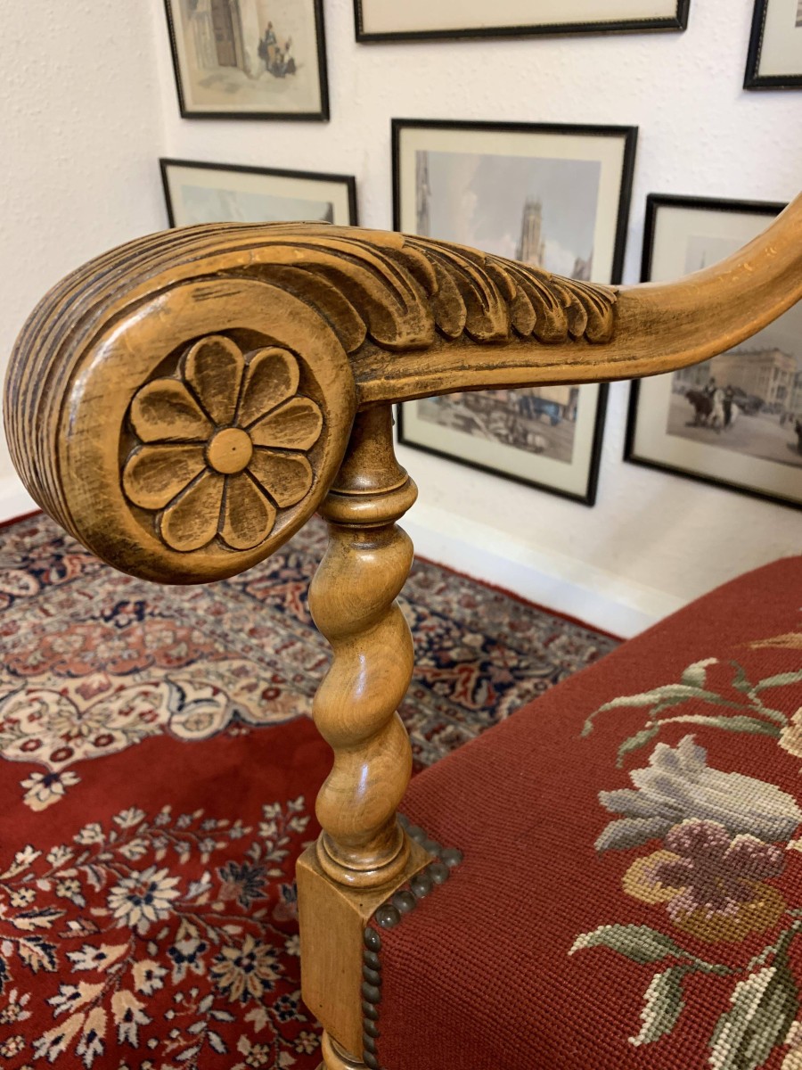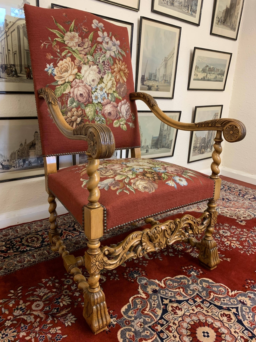 Outstanding Quality French Carved Walnut Barley Twist Needlepoint Throne/armchair – Now Sold