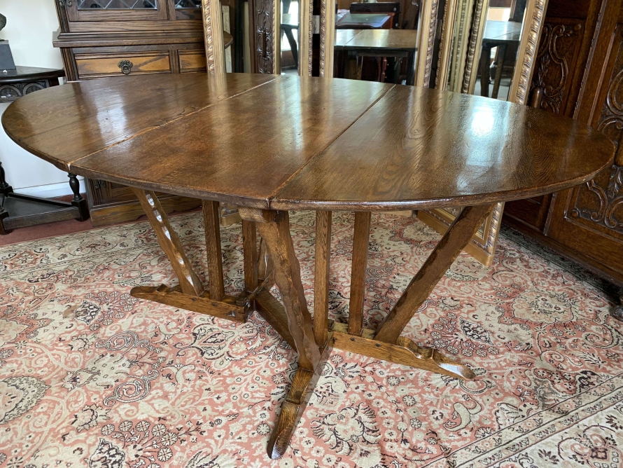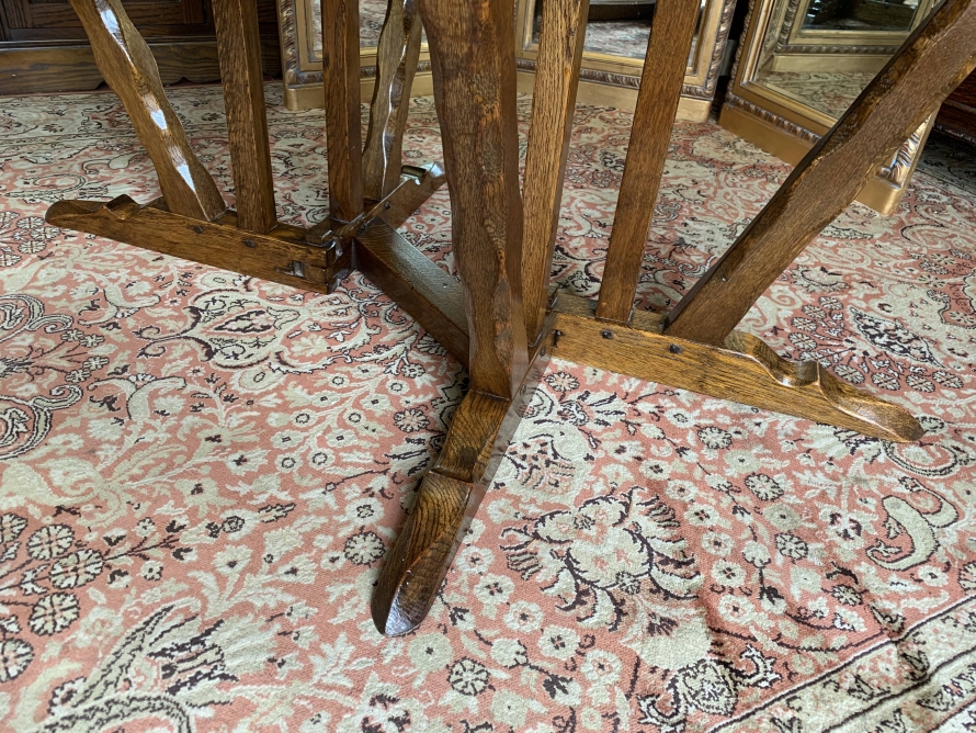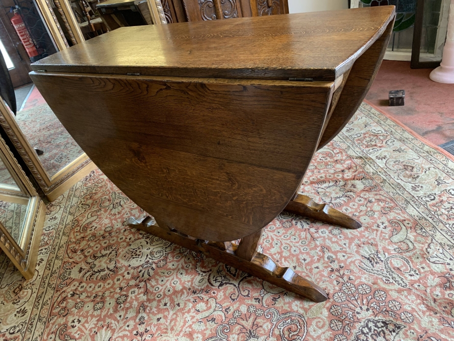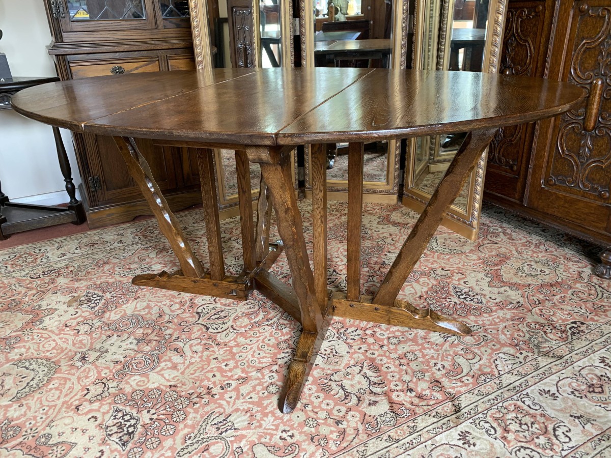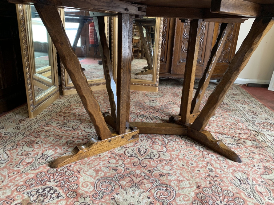We are delighted to offer this fantastic carved oak gate leg table produced by the renowned Nigel Griffiths furniture company. As with all Nigel Griffiths furniture this table is individually crafted with hand cut dovetails and is planed, sanded, stained and polished all by hand. The table has two drop down leaves and a carved gate leg base. Please note this item is made entirely of solid oak and is in fantastic condition.