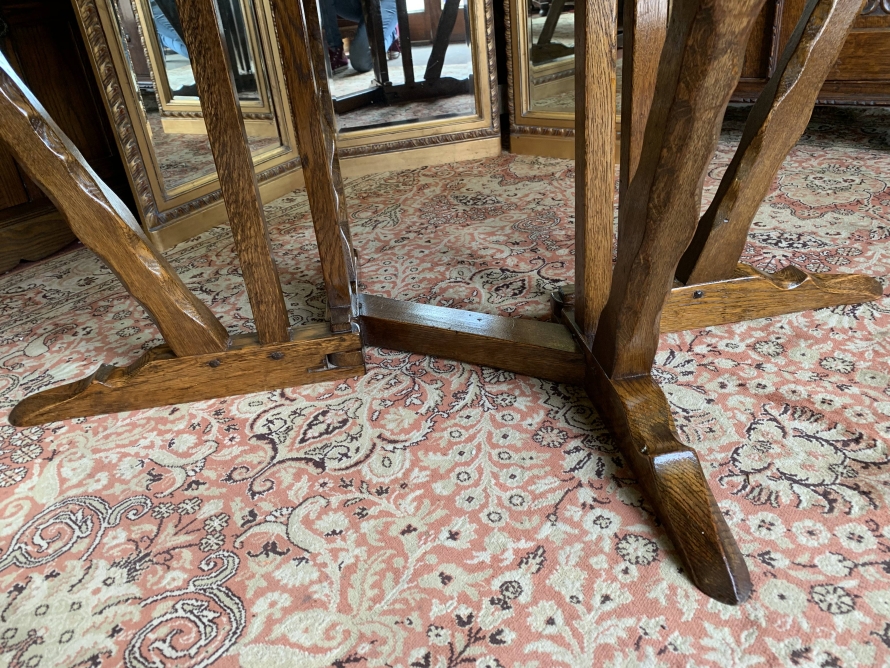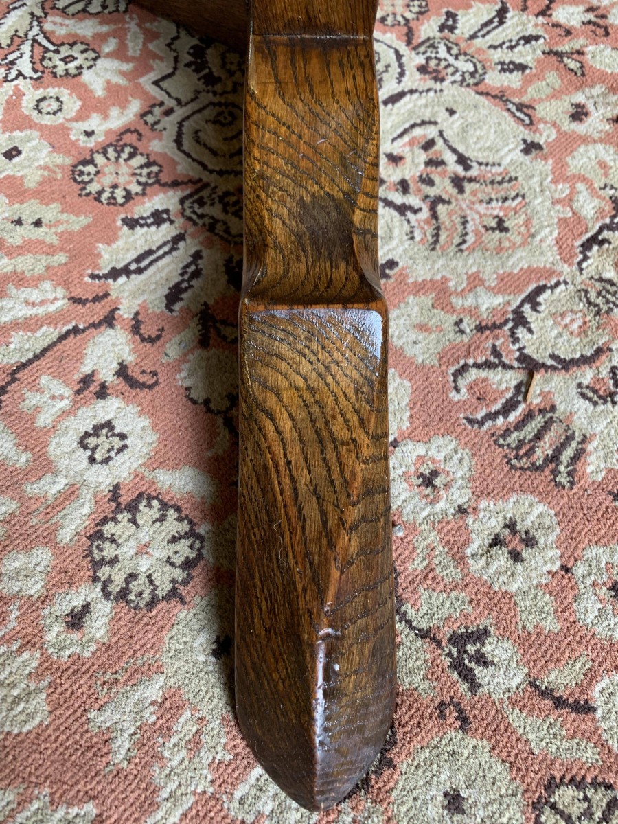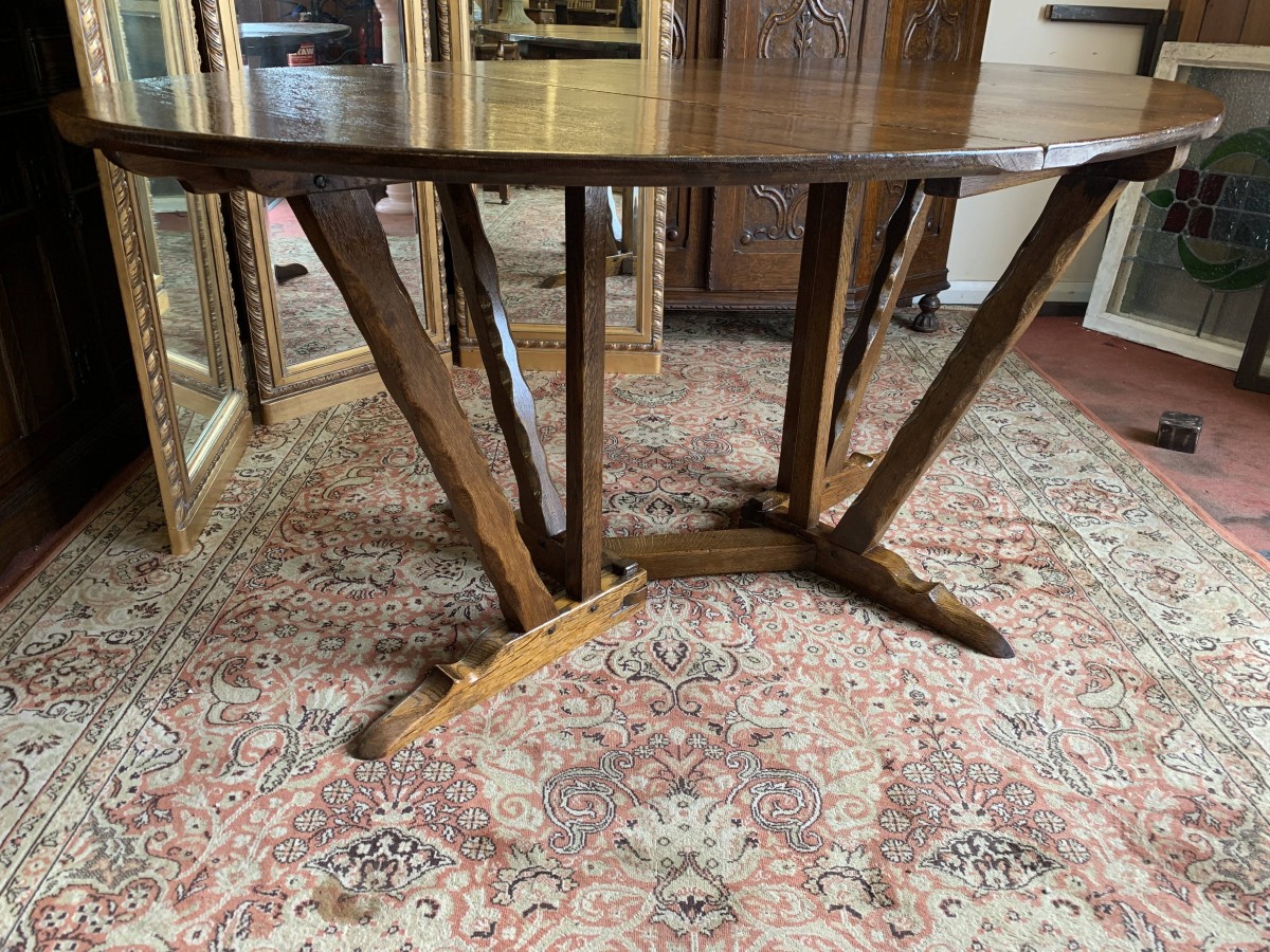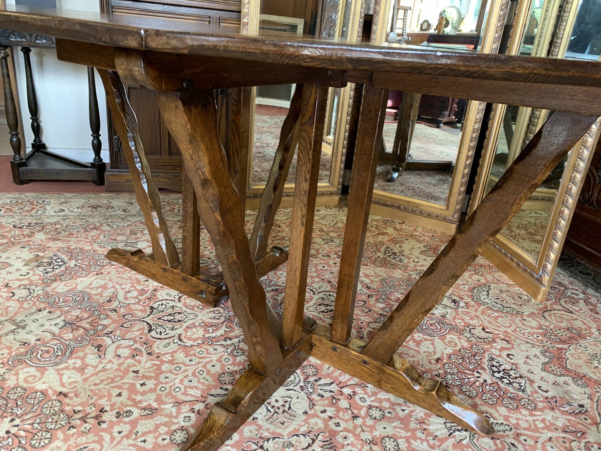 We are delighted to offer this fantastic carved oak gate leg table produced by the renowned Nigel Griffiths furniture company. As with all Nigel Griffiths furniture this table is individually crafted with hand cut dovetails and is planed, sanded, stained and polished all by hand. The table has two drop down leaves and a carved gate leg base. Please note this item is made entirely of solid oak and is in fantastic condition.