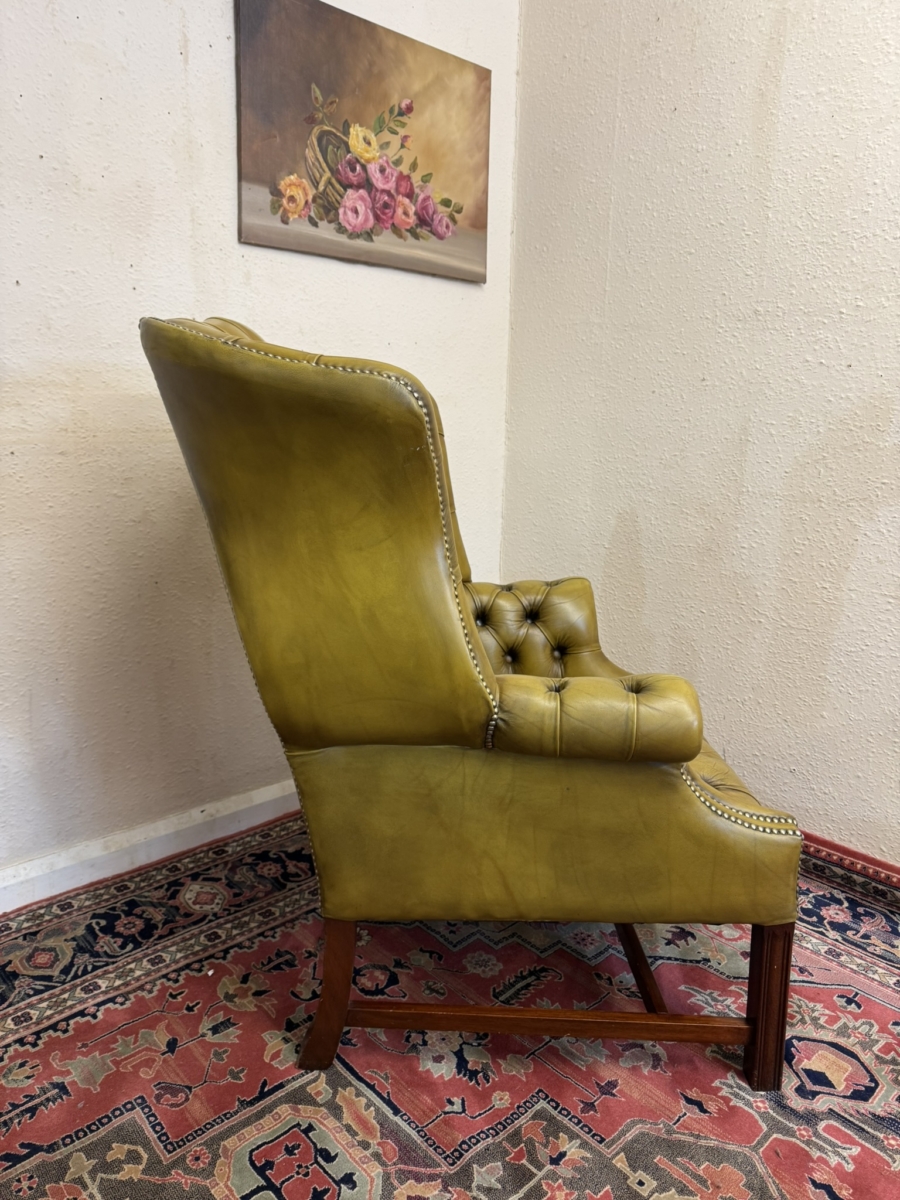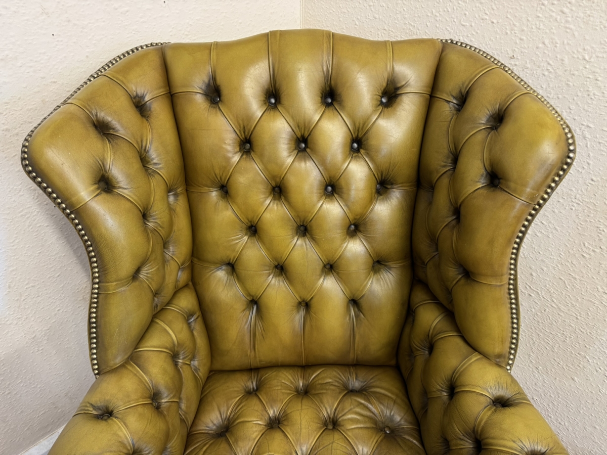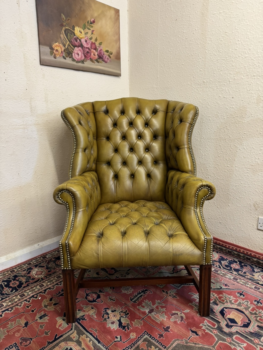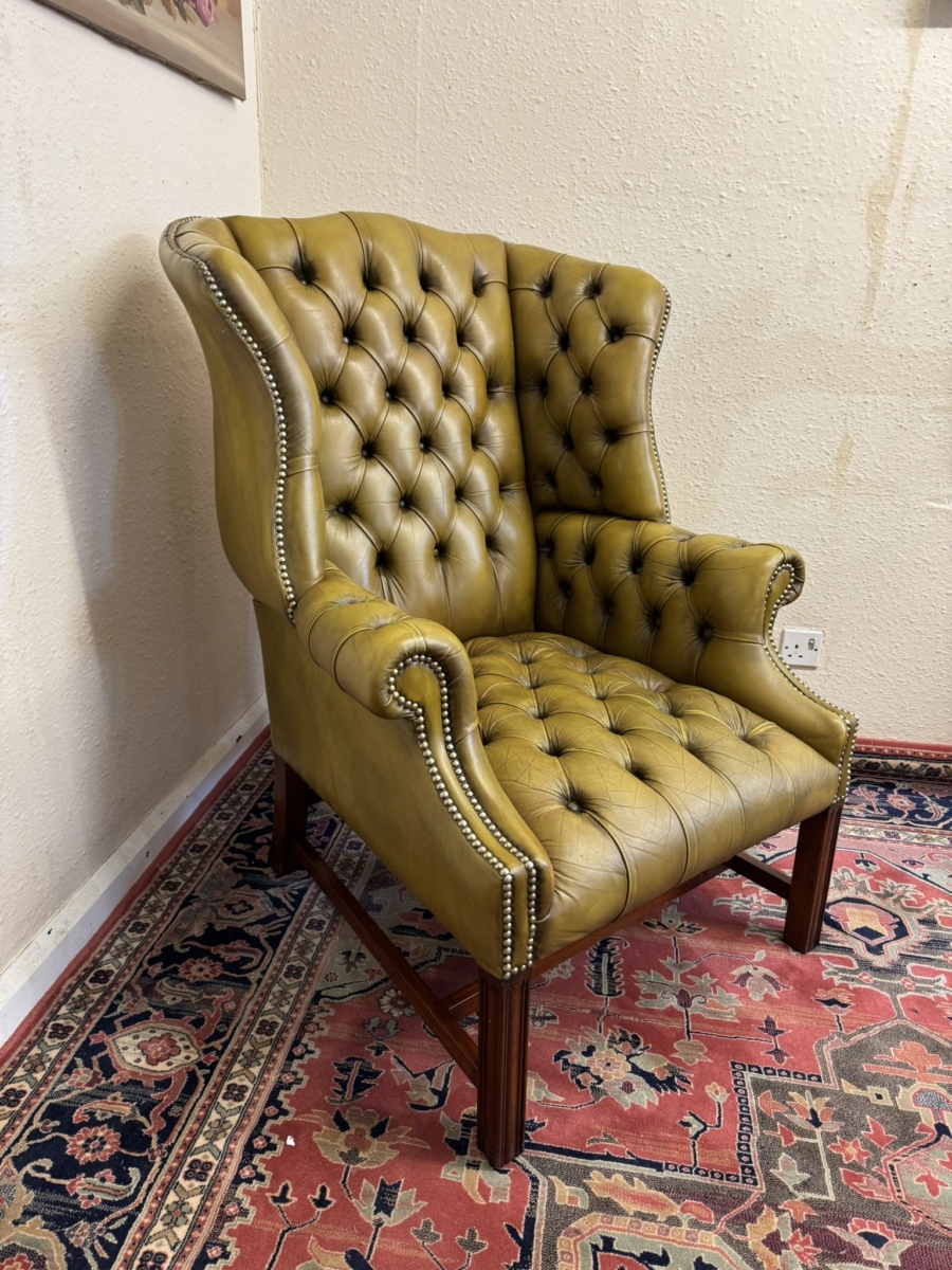- OUTSTANDING QUALITY HIGH BACK OLIVE GREEN LEATHER CHESTERFIELD LIBRARY CHAIR