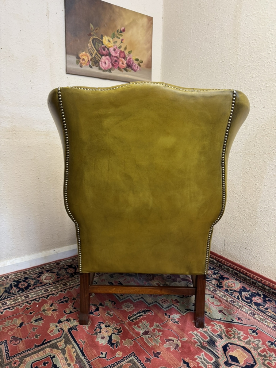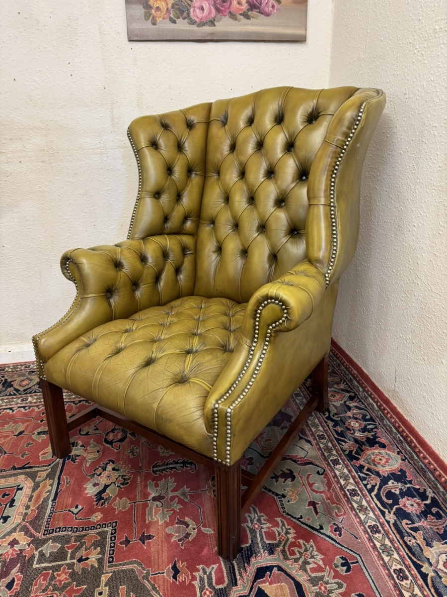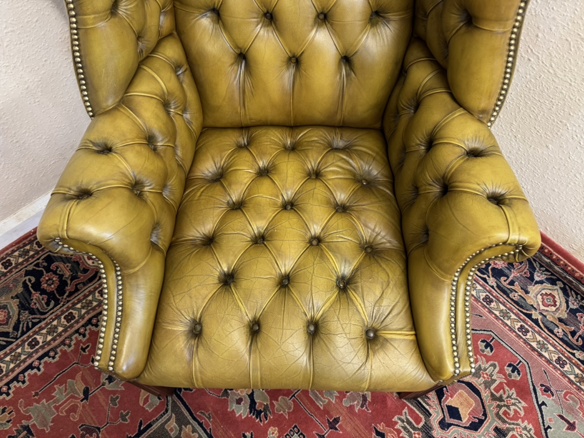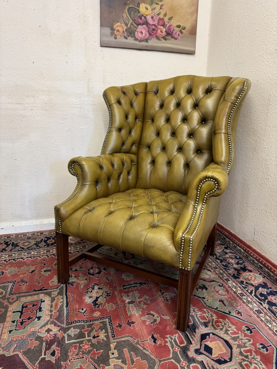 - OUTSTANDING QUALITY HIGH BACK OLIVE GREEN LEATHER CHESTERFIELD LIBRARY CHAIR