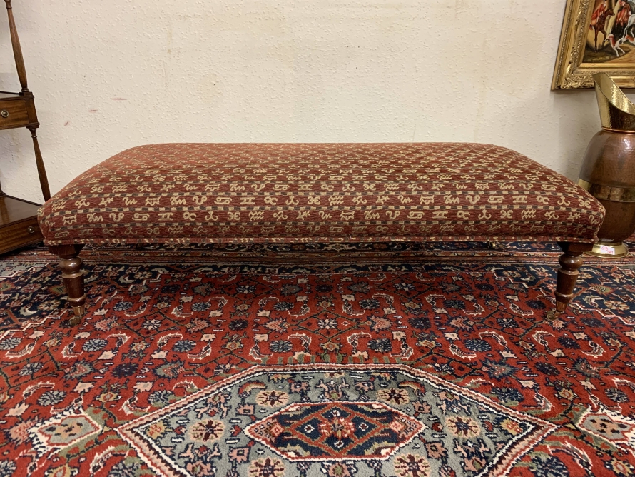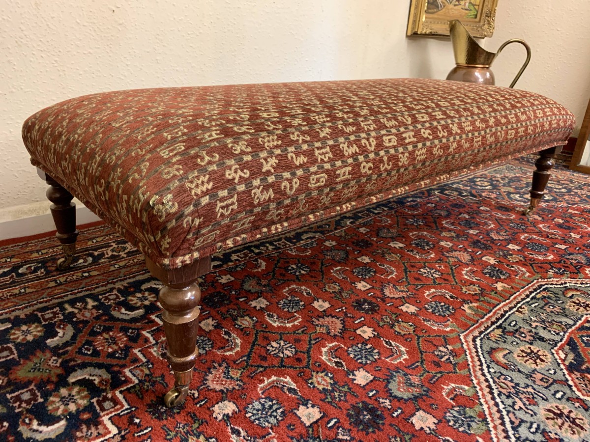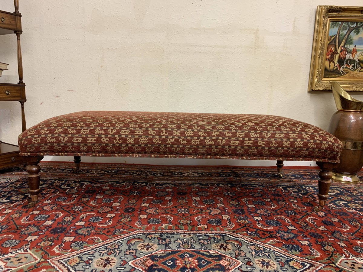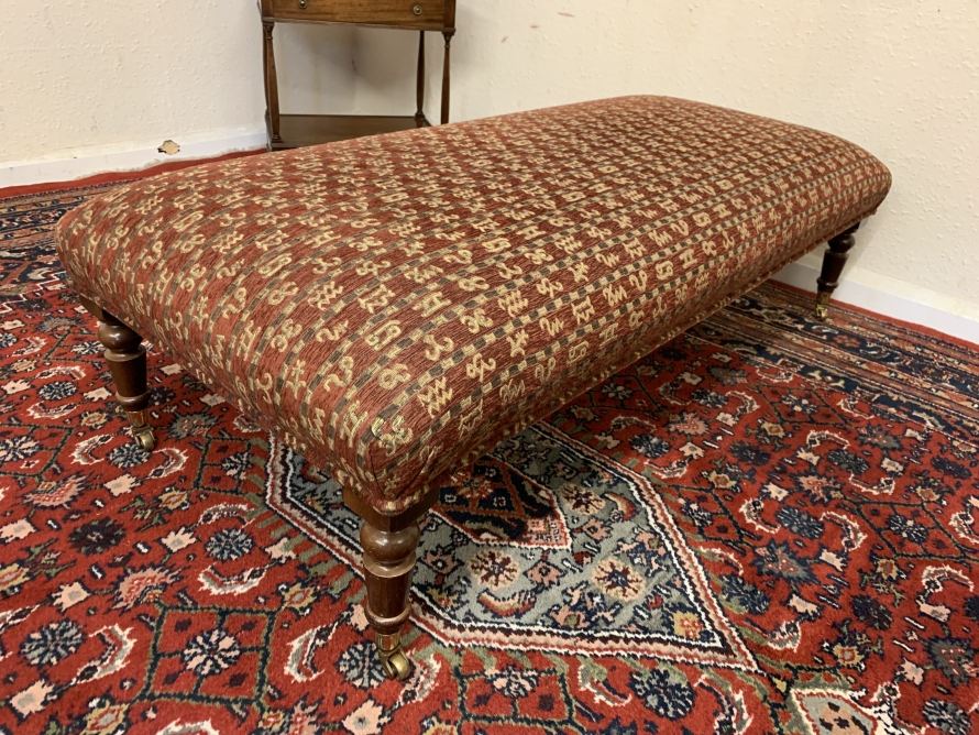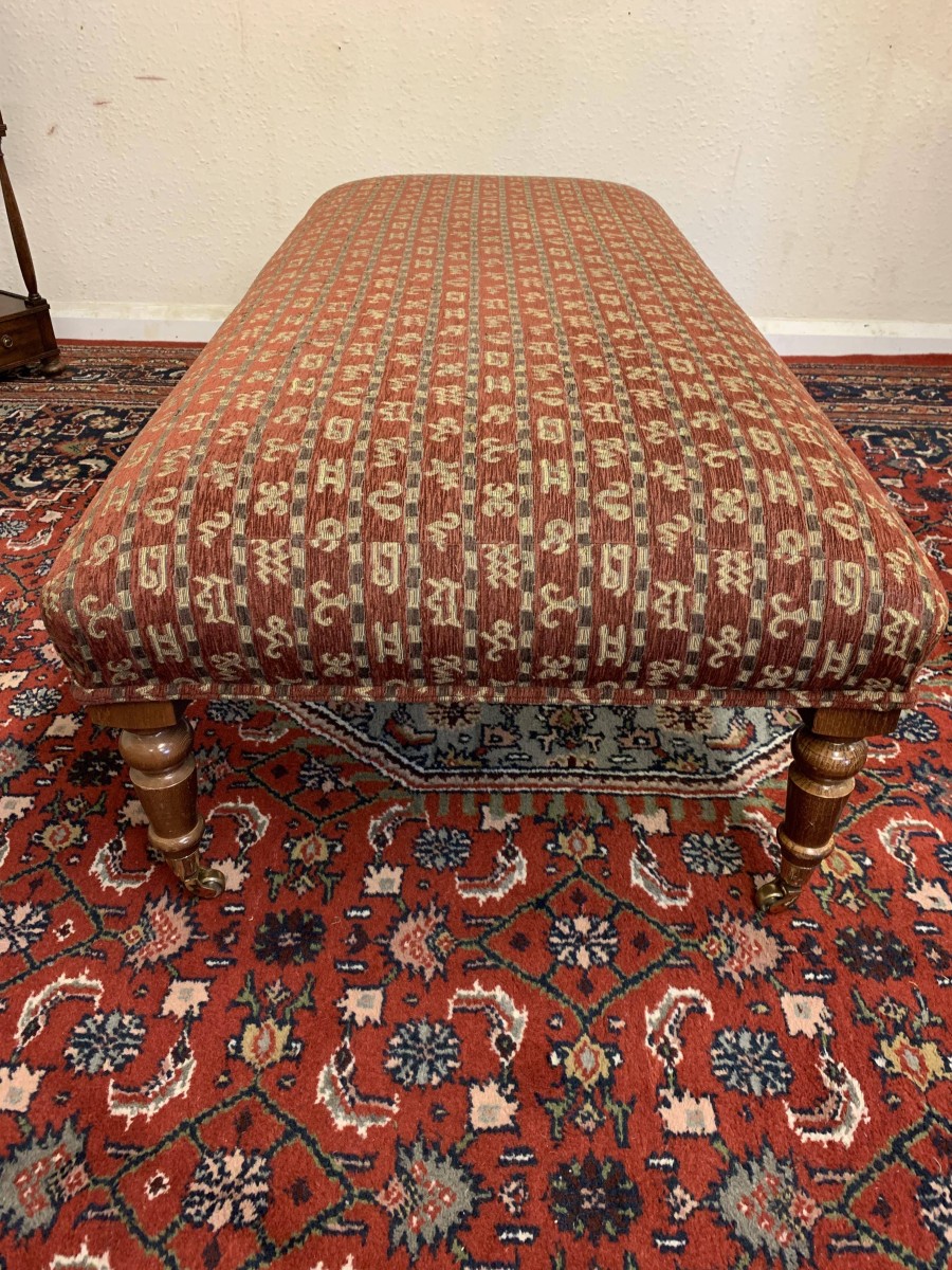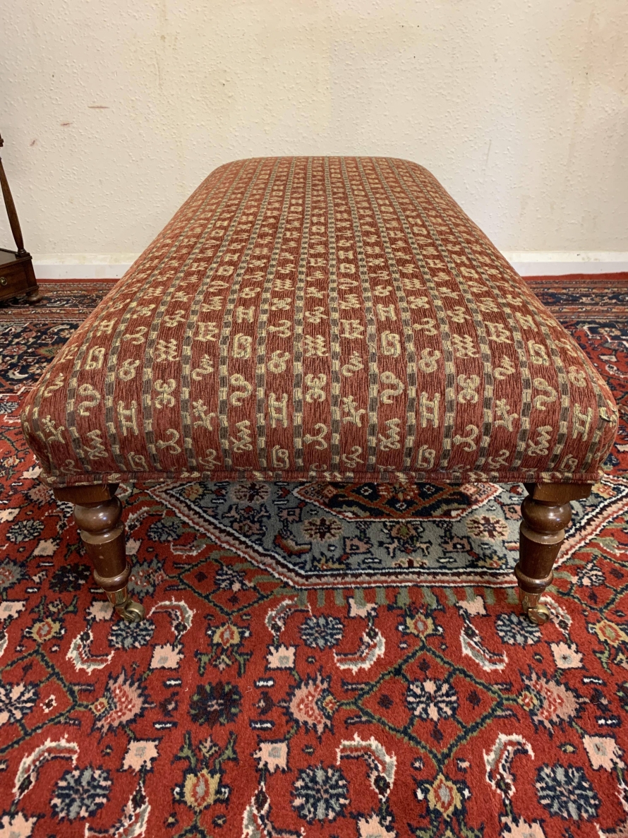 This fabulous stool made by Duresta is in excellent condition. Having a cushioned upholstered seat and standing on four elegant turned legs on brass casters.