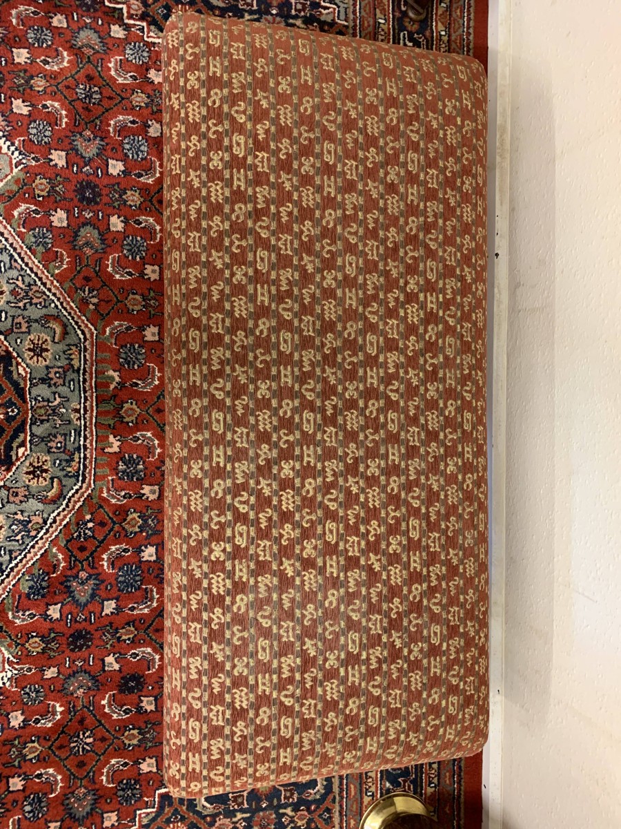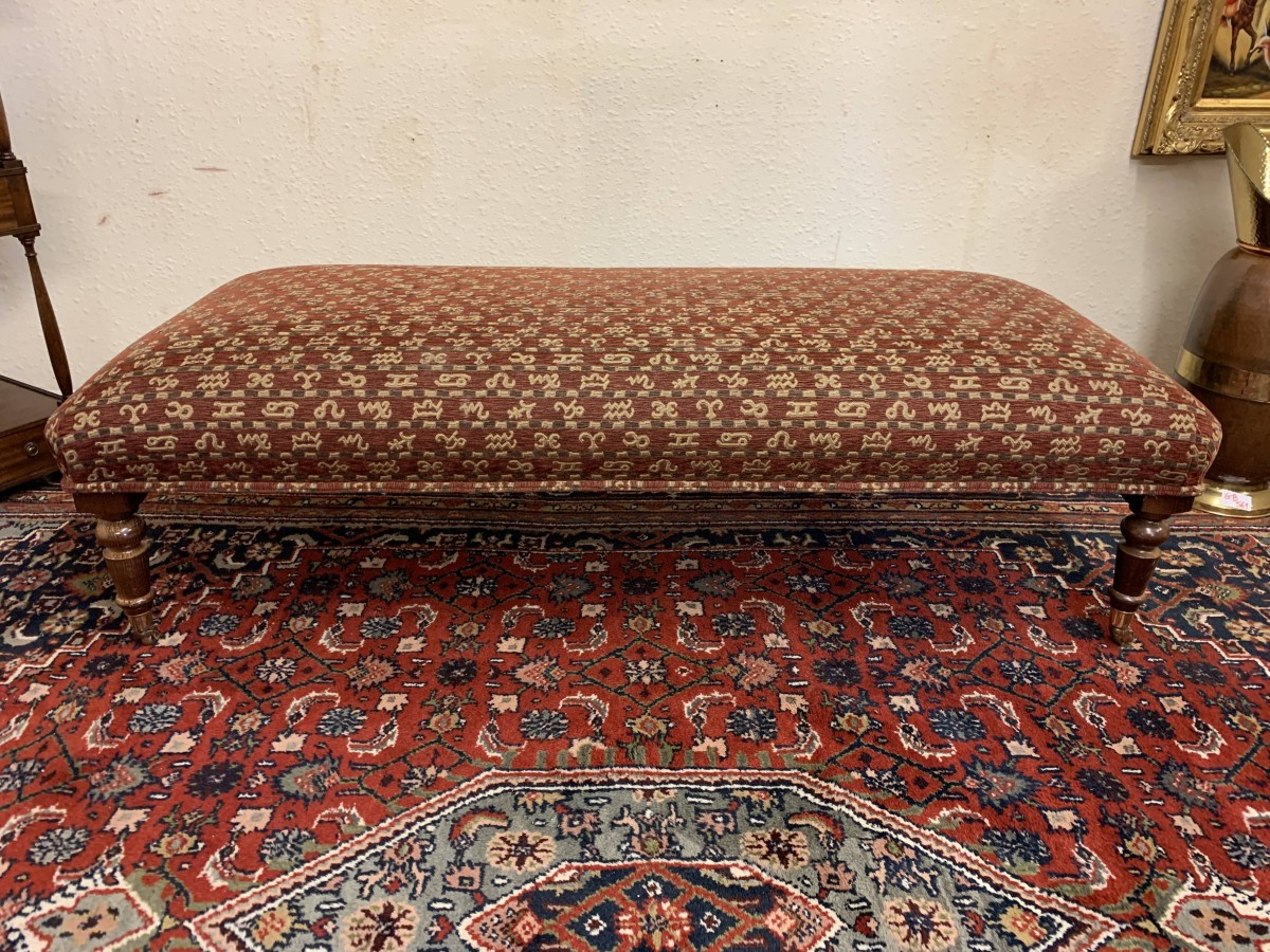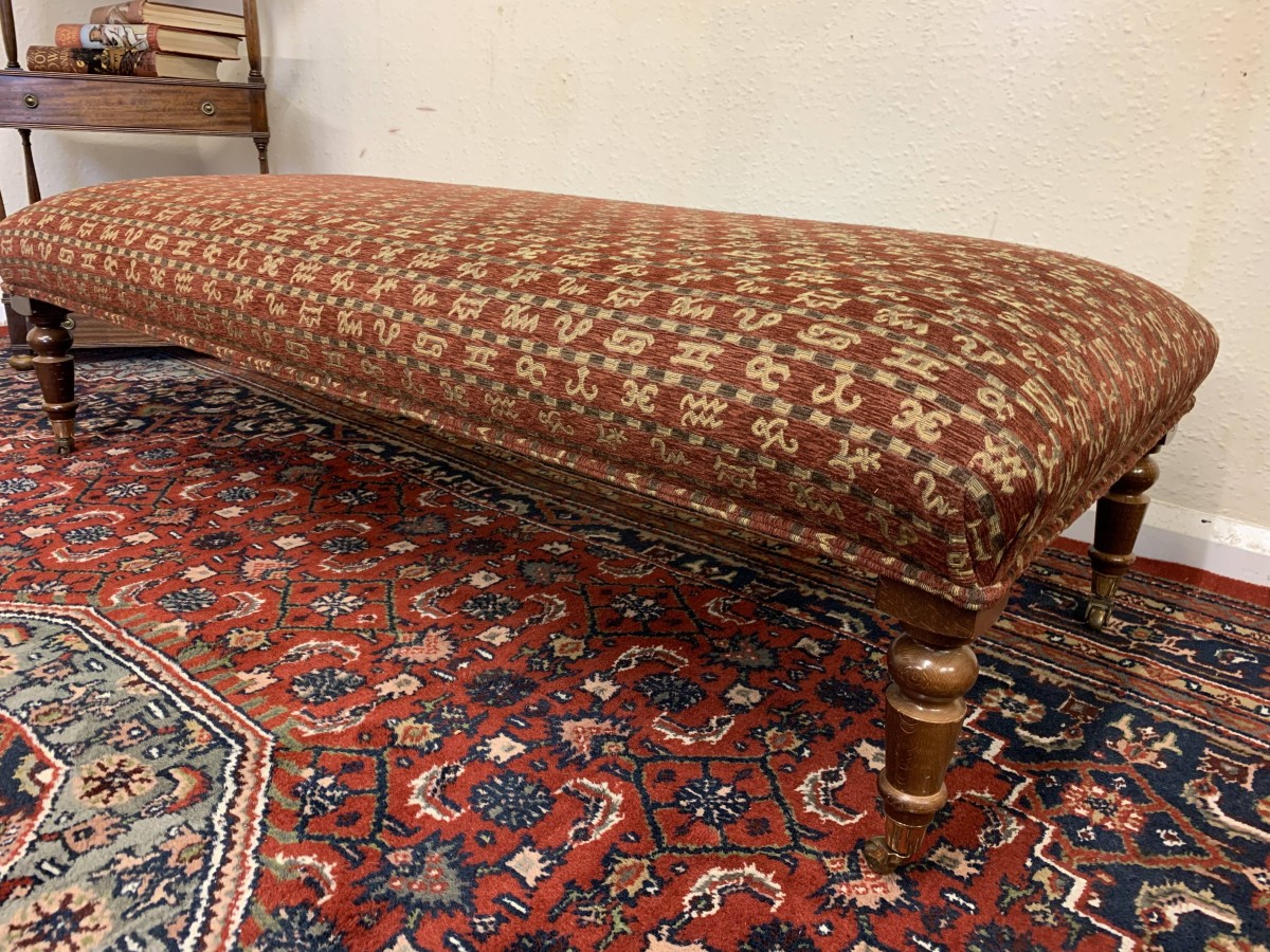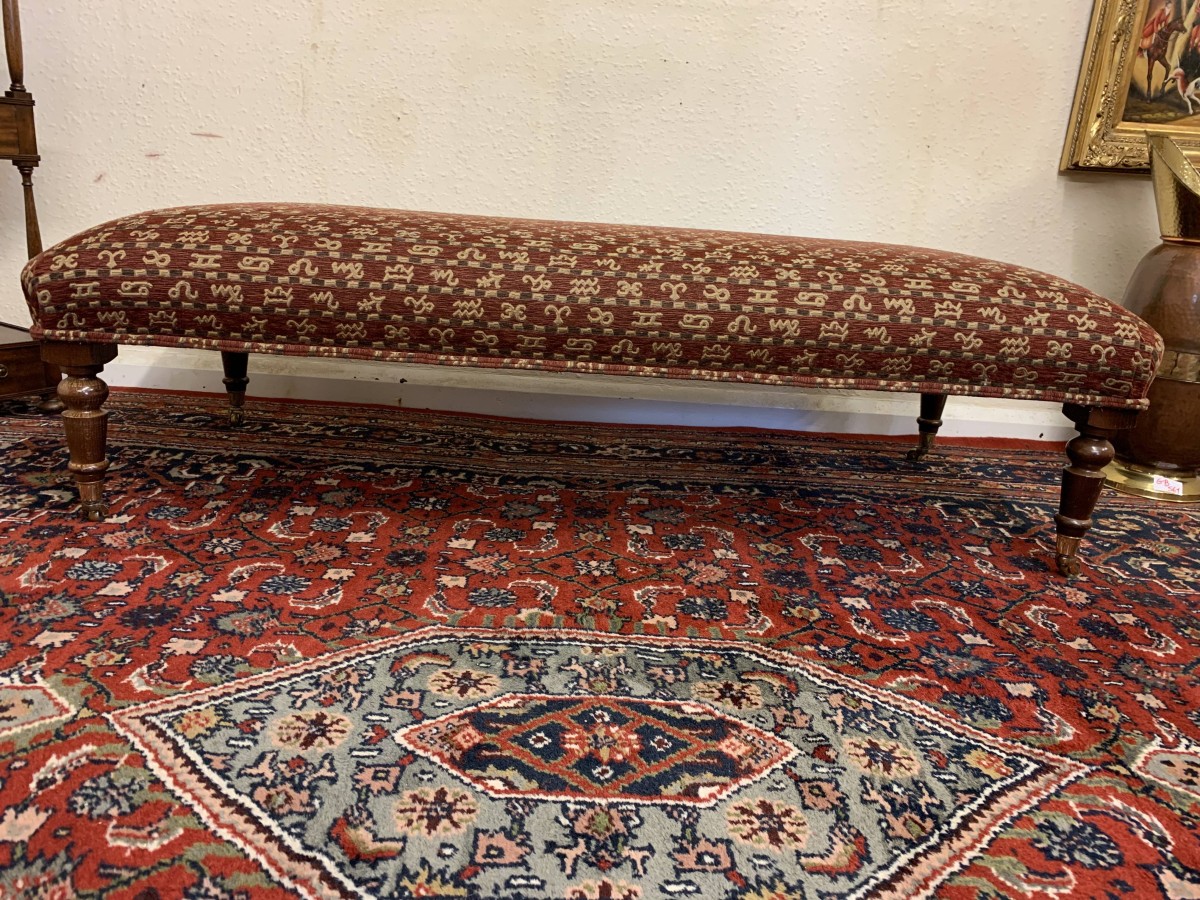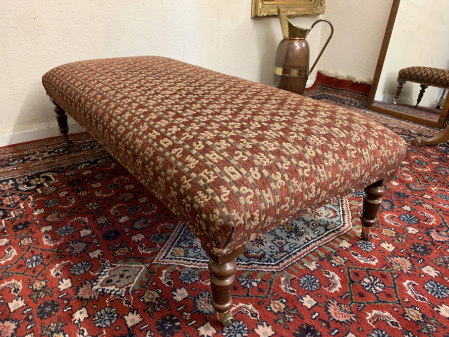 This fabulous stool made by Duresta is in excellent condition. Having a cushioned upholstered seat and standing on four elegant turned legs on brass casters.