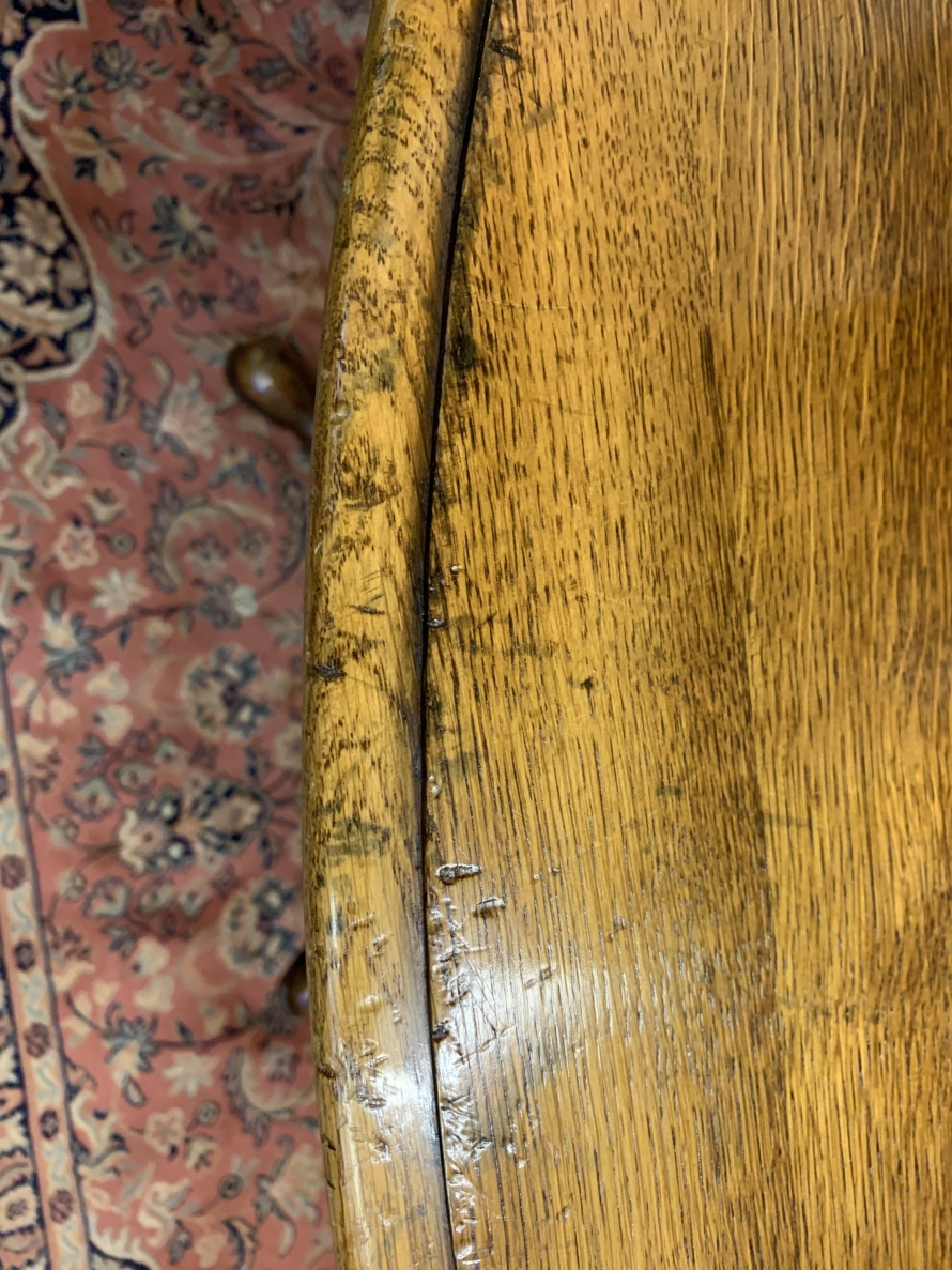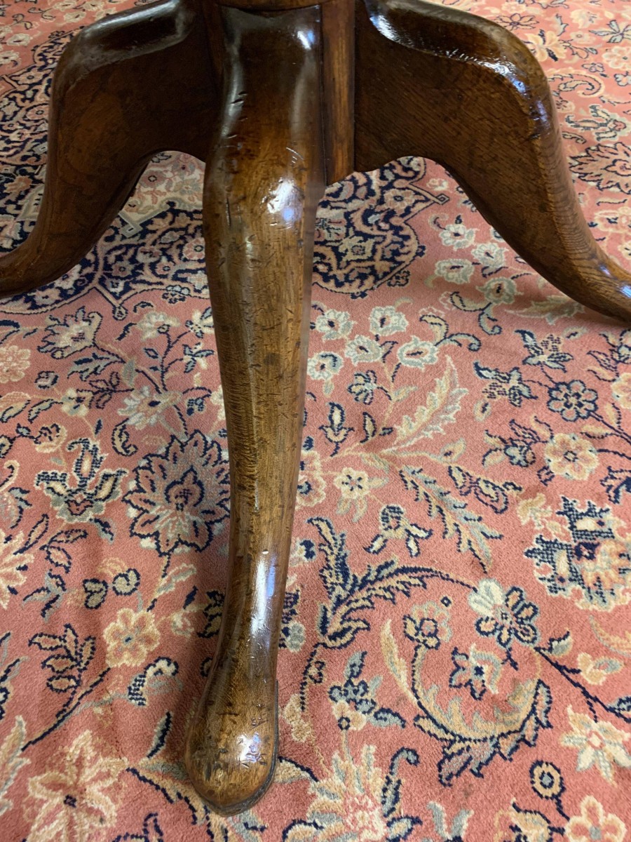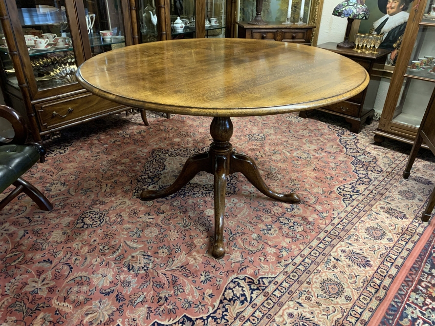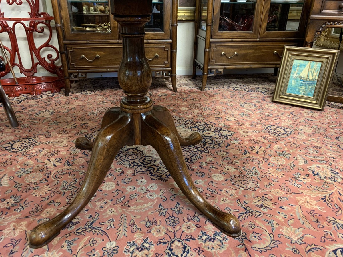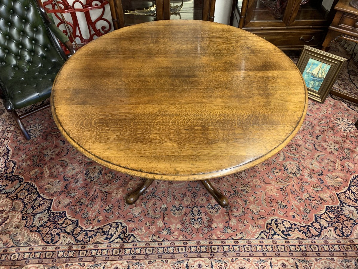 This fantastic quality table is made in glorious oak by the renowned Titchmarsh & Goodwin furniture makers. Having a round edged top on a turned pedestal base with four sweeping legs on pad feet.