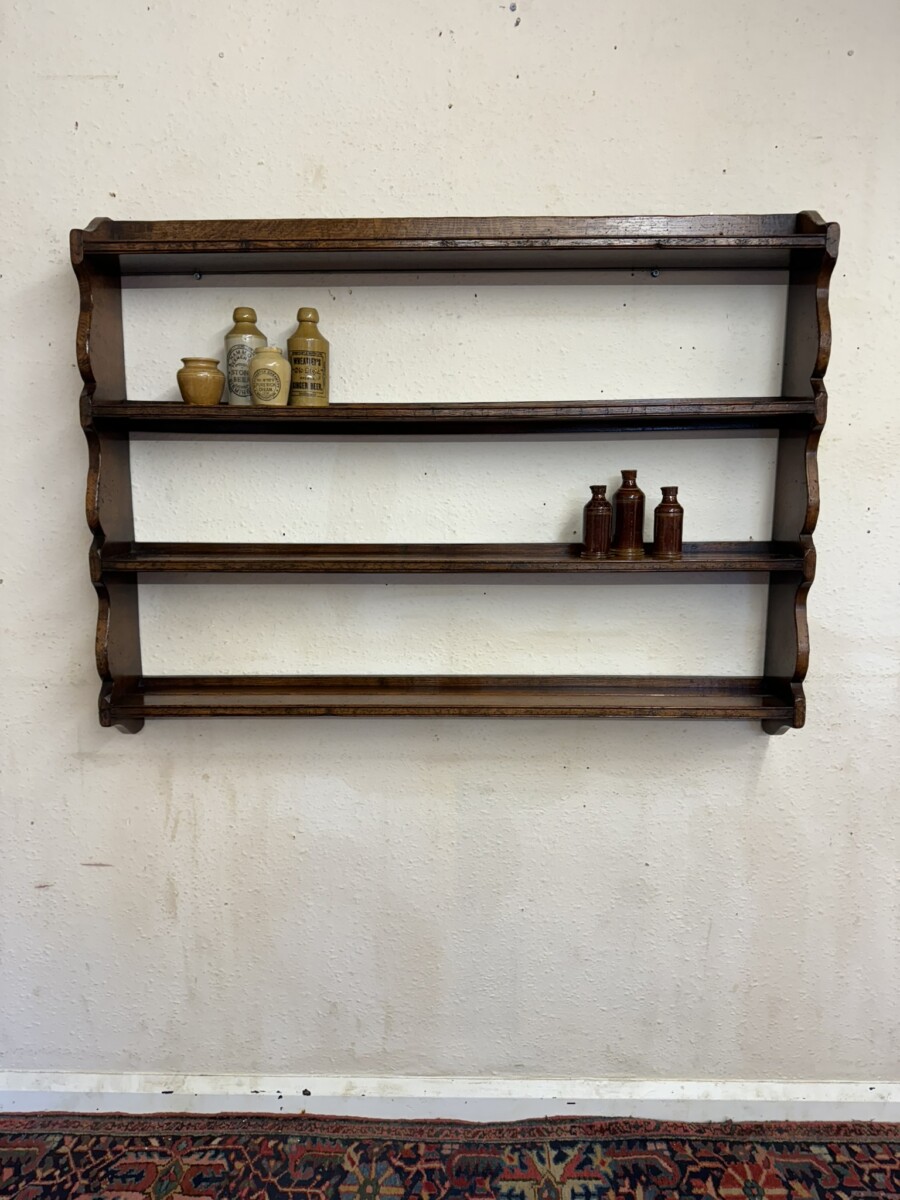 Made in glorious solid oak by the renowned Titchmarsh and Goodwin furniture makers. Raised back, shaped sides and having four shelves.
