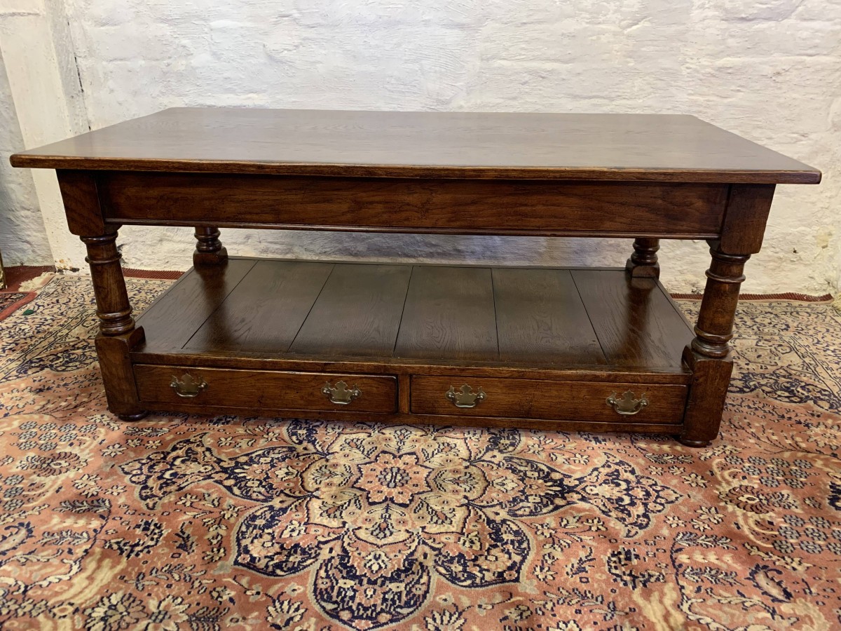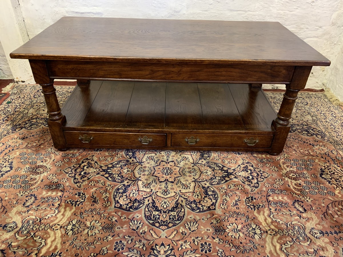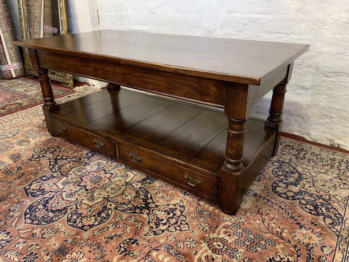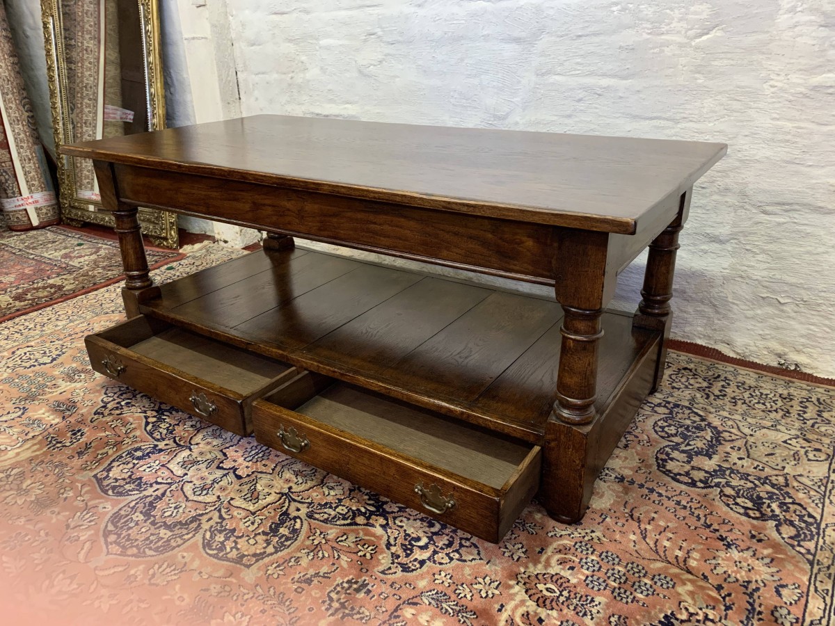 - Outstanding Quality Solid Oak Coffee Table With Storage Drawers – Now Sold