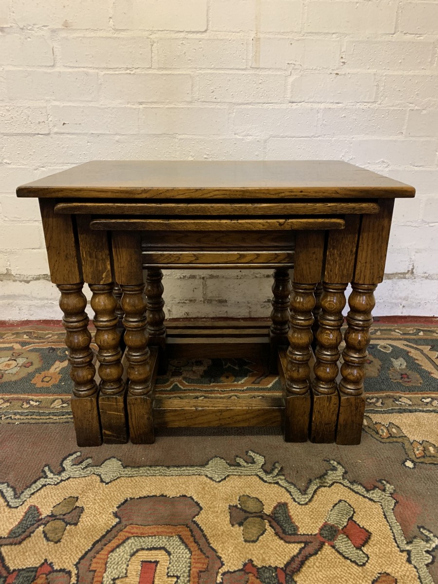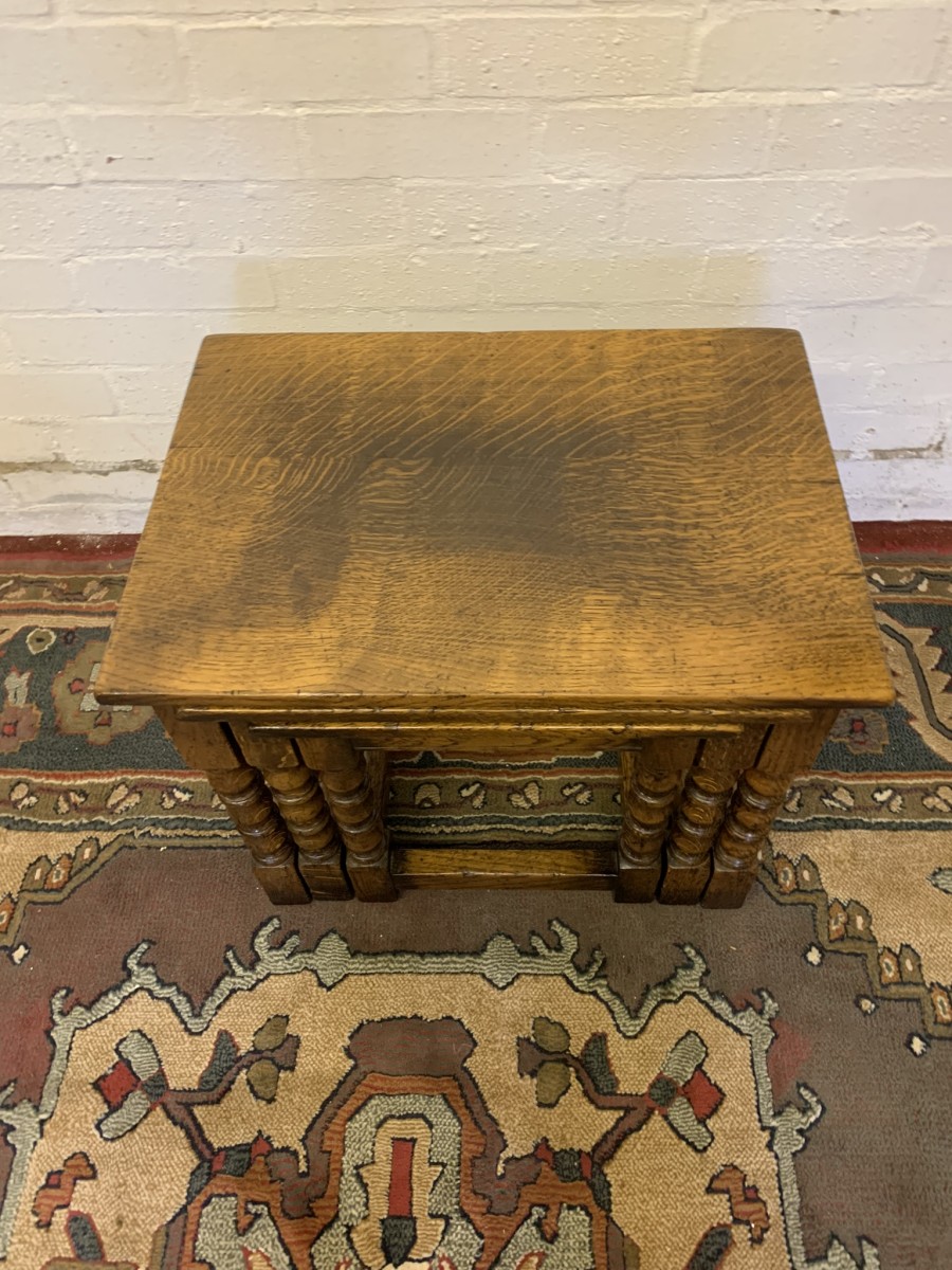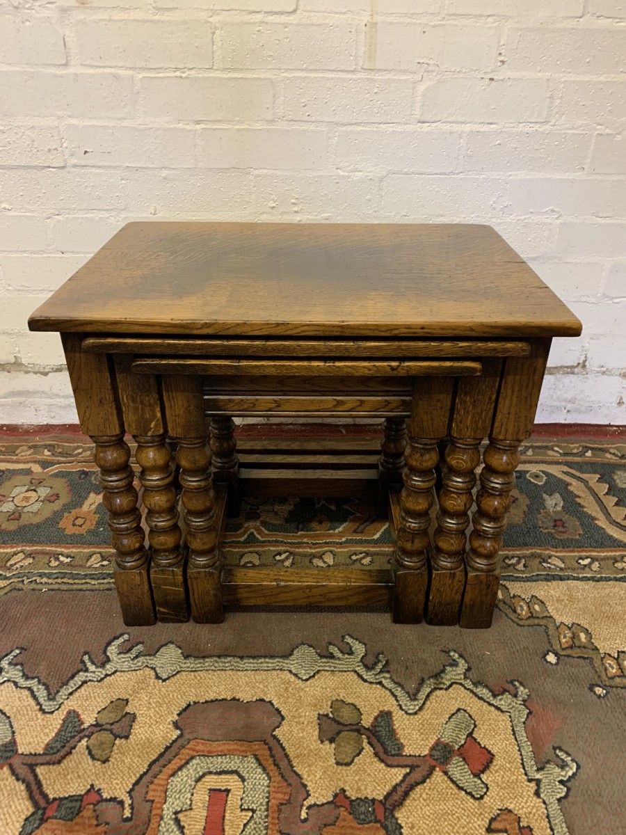 - Outstanding Quality Turned Oak Nest Of Three Tables