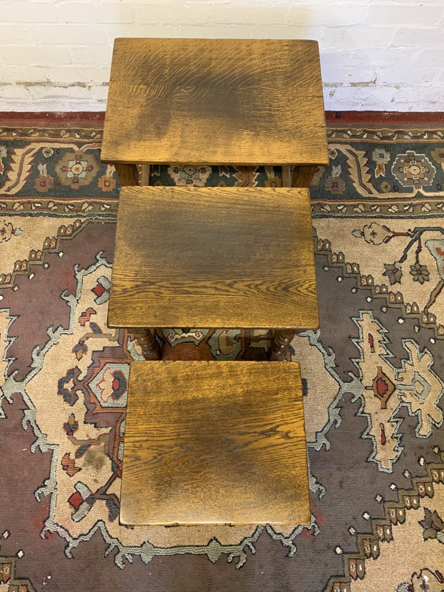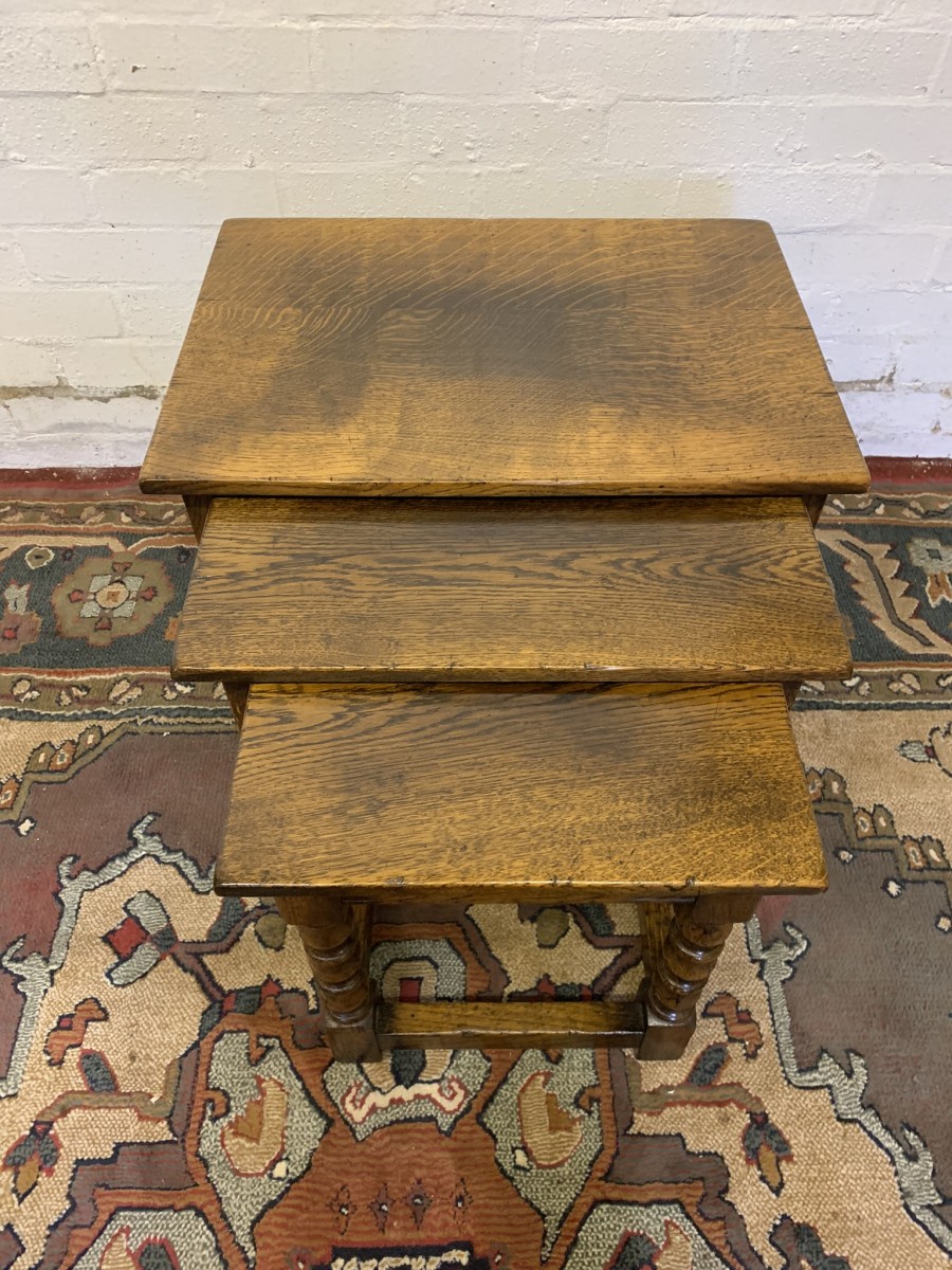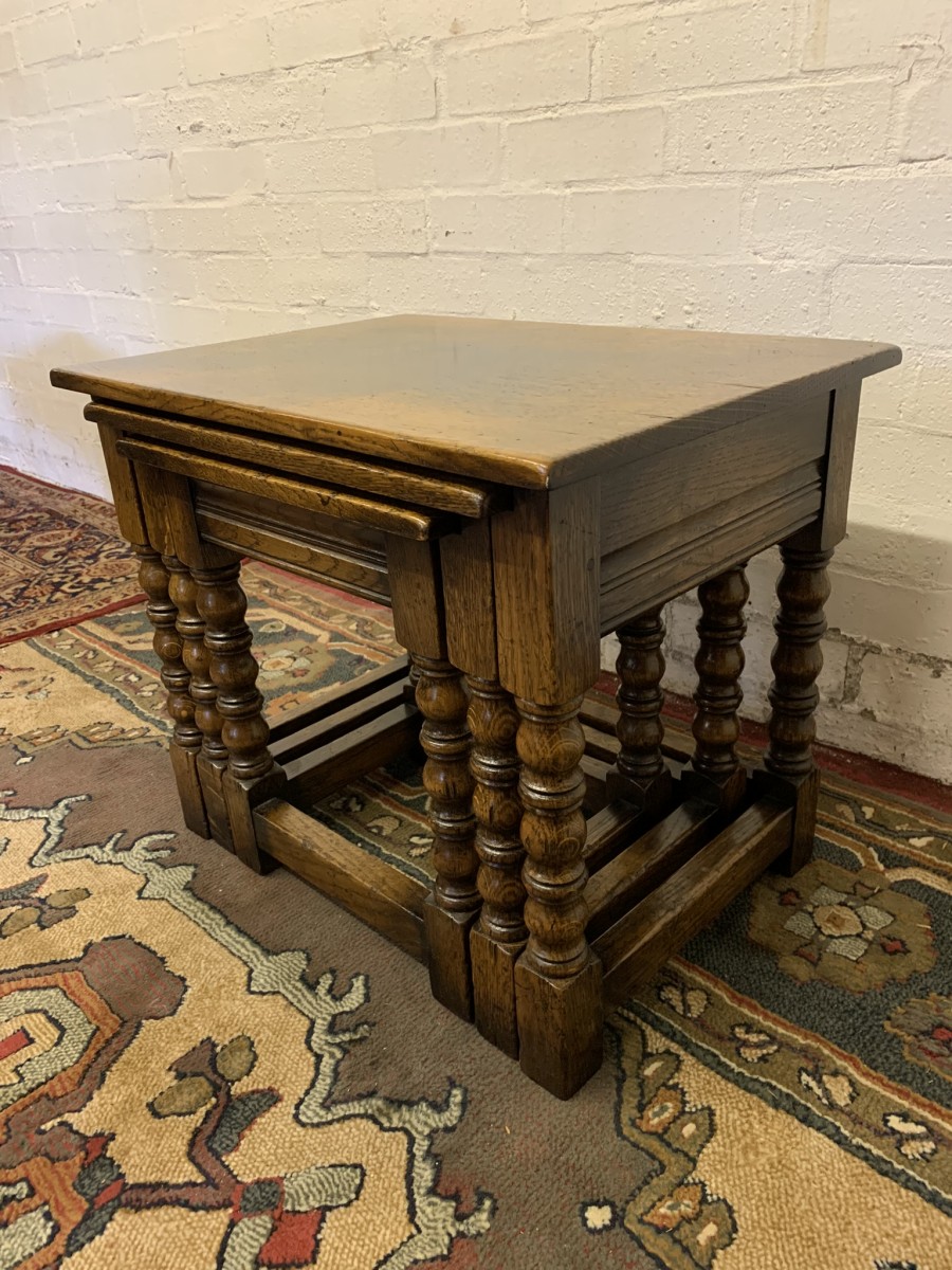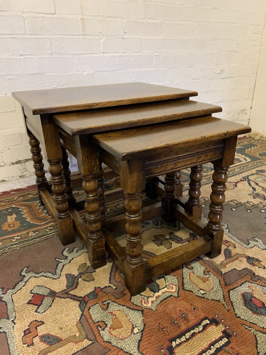 - Outstanding Quality Turned Oak Nest Of Three Tables