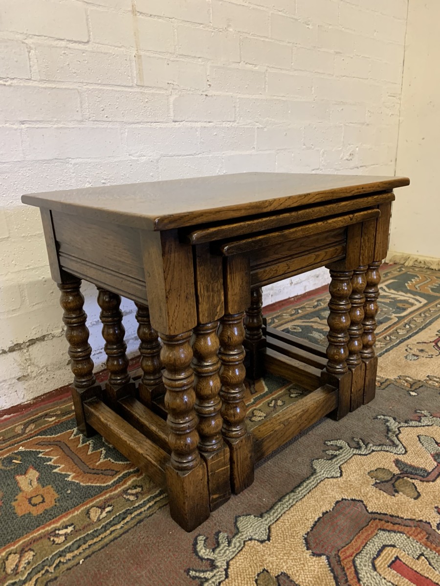 Outstanding Quality Turned Oak Nest Of Three Tables