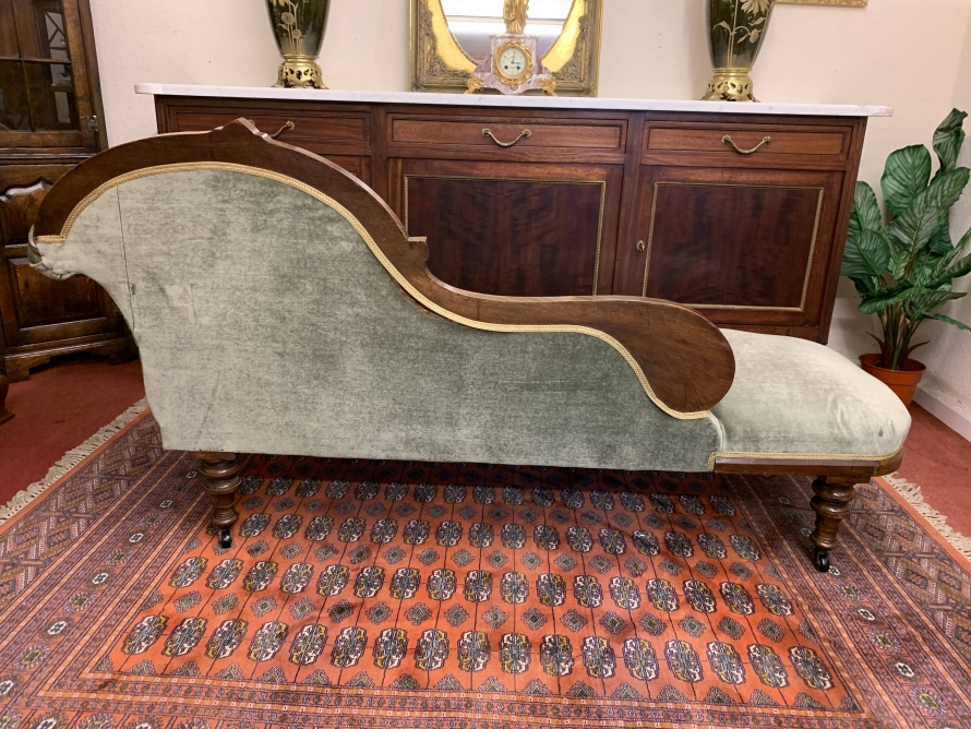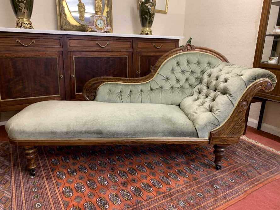Outstanding Quality Victorian Carved Walnut Upholstered Chaise Longue – Now Sold
